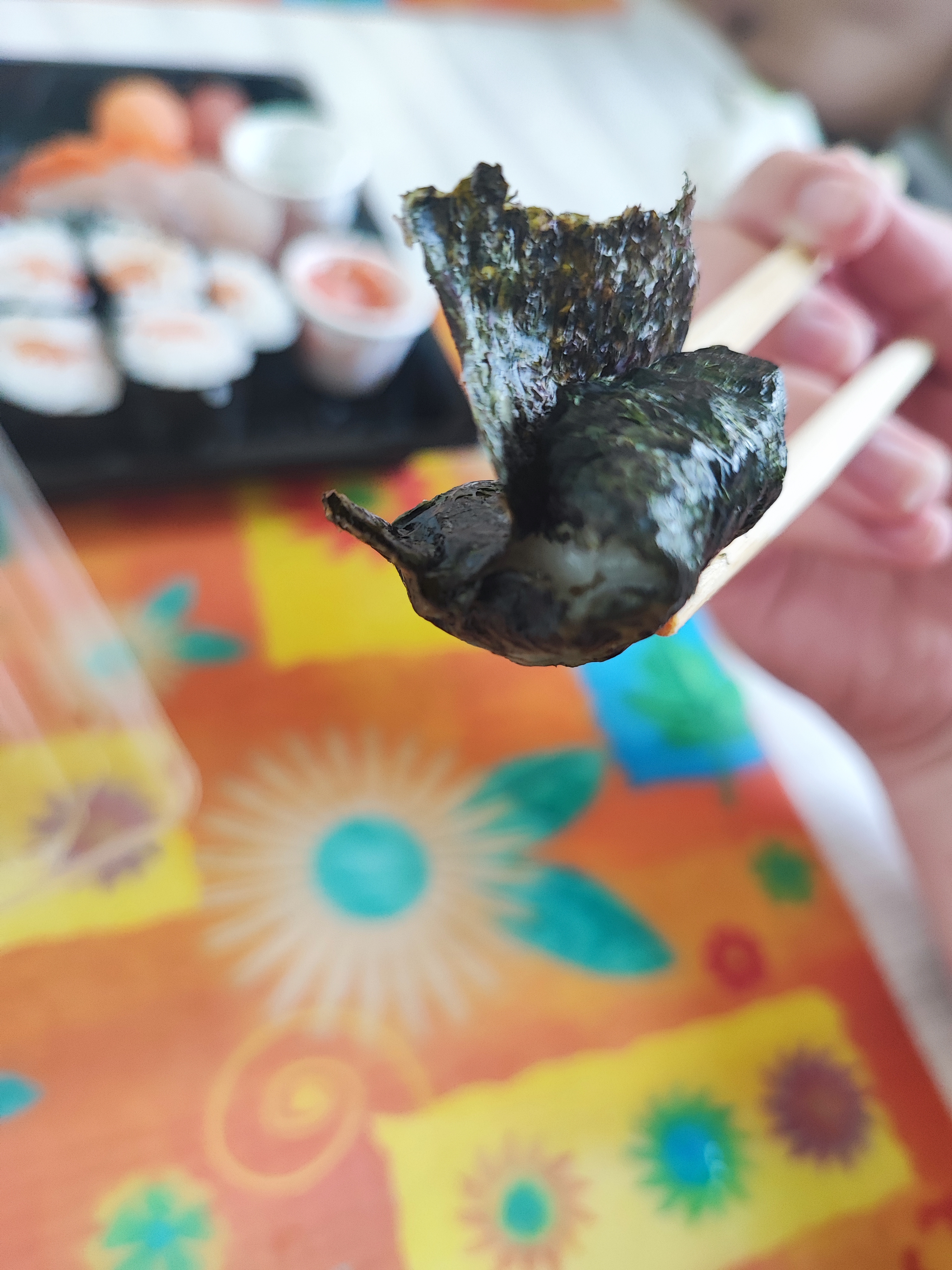 Livraison rapide, avocats et poisson crus frais, brochettes un peu sèche, riz des sushis sûrement de la veille... et sauce a moitié remplie. C’est convenable ..