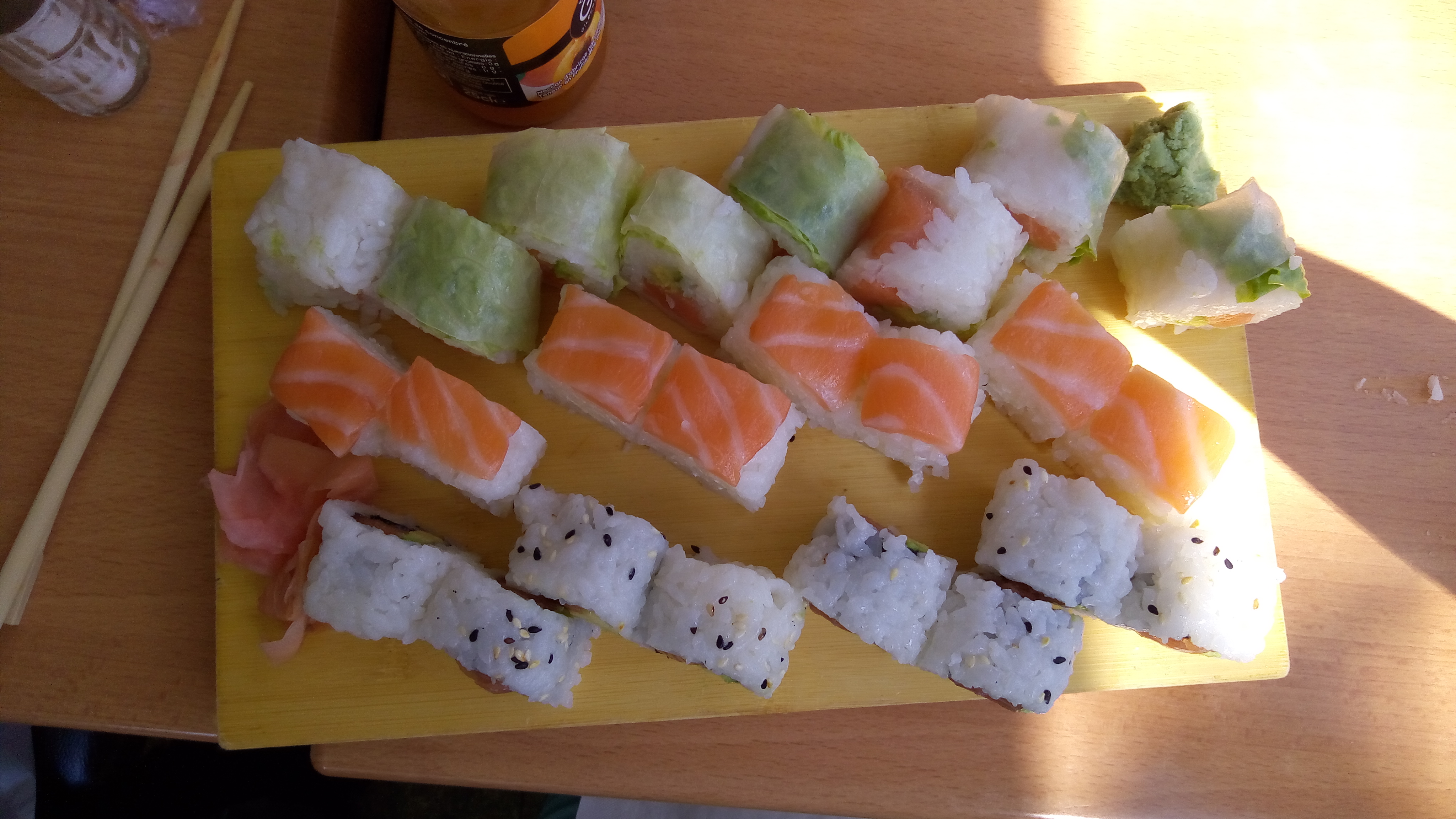 Déçu part les saumon roll cheese ( Dès qu'on les prend avec les baguettes il se dépiotte ( 4 mois après, toujours la même chose )