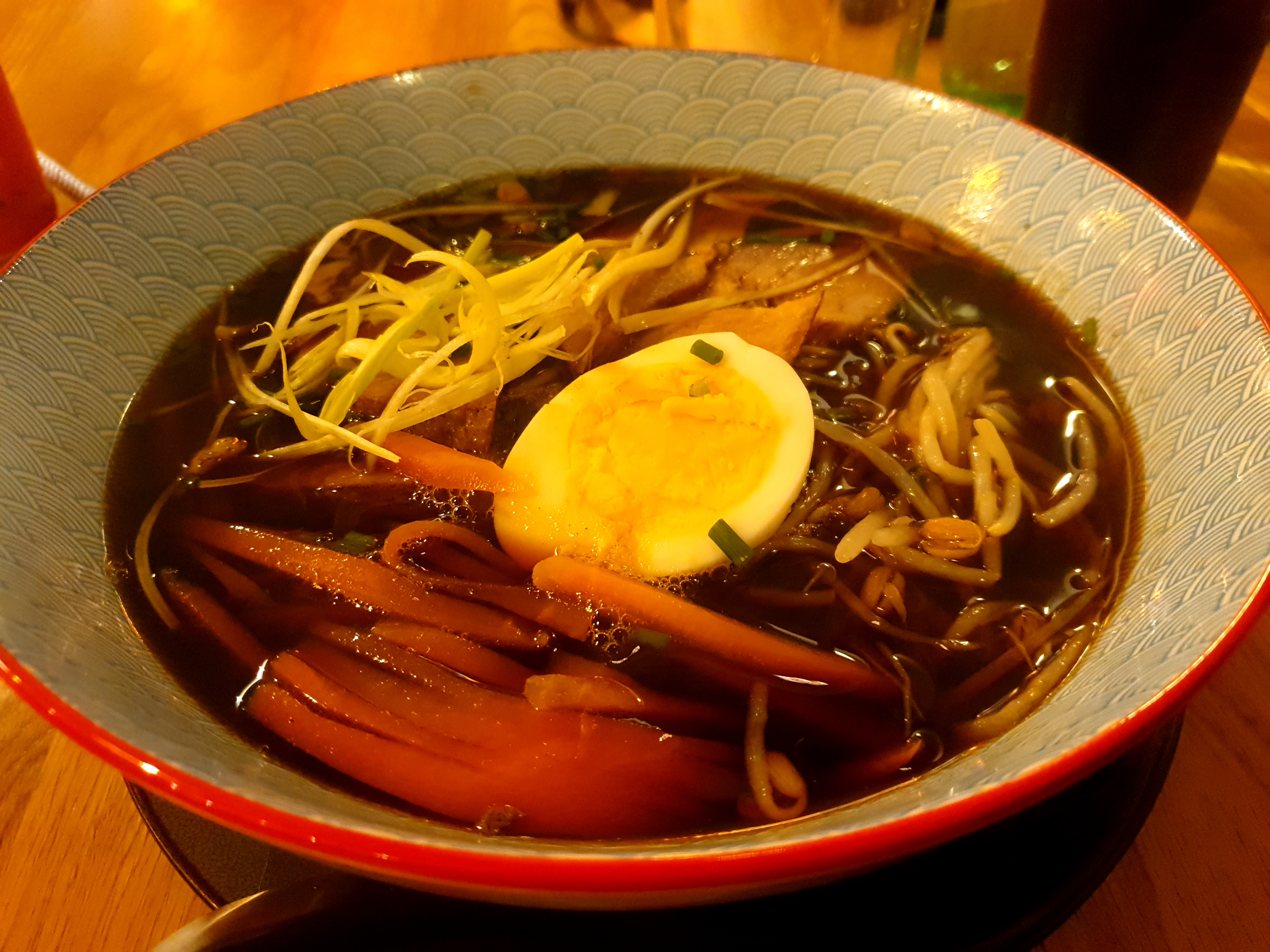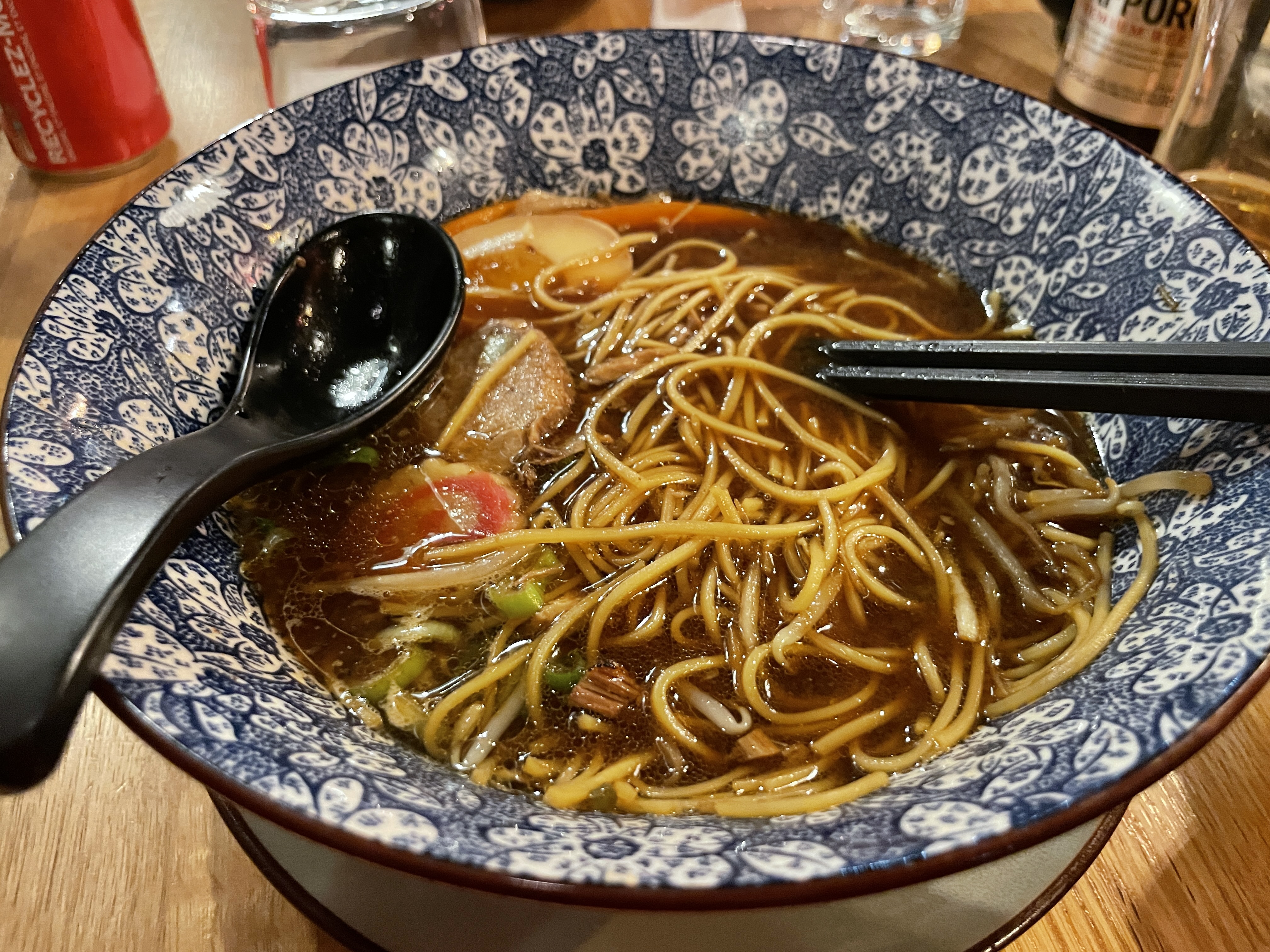 Nous avons découvert ce restaurant ce jour. La déco est top, ça nous rappelle le Japon. Le ramen était bon, le porc très tendre et pas gras. Par contre, il est dommage que l'oeuf qu on nous indique mariné 48h ne le soit pas. Il est blanc et trop cuit ( nous en faisons régulièrement à la maison) . Et surtout, on avait commandé de l'eau pétillante , San Pellegrino. L'eau n'était pas du tout gazeuse , nous le signalons et en recevons une autre qui a le même problème. Le serveur nous dit qu il ne peut rien faire, soit, nous boirons une carafe d'eau. Par contre,il nous a facturé la bouteille imbuvable en nous disant qu'il ne pouvait rien faire et qu'il n'était pas responsable. Pour 2 euros, prendre le risque de ne pas voir revenir 3 clients, c'est dommage...