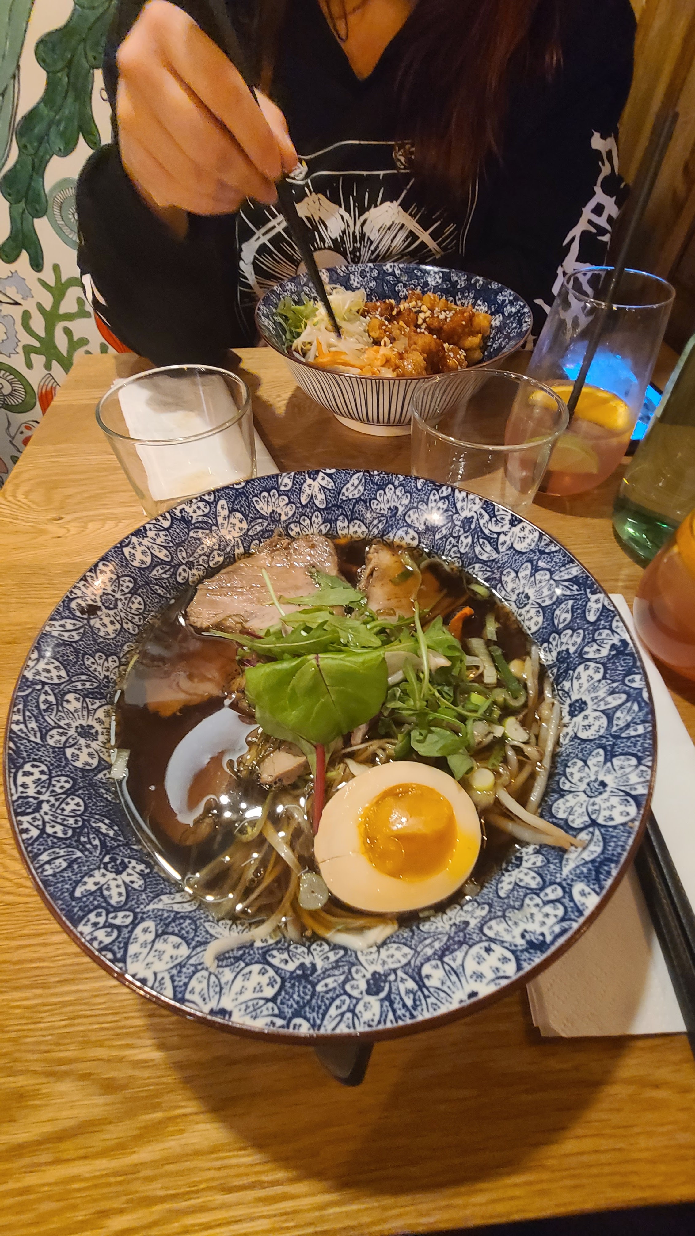 Une belle déco vous transporte au Japon, Equipe efficace, des mandu en entrée bien croustillant et ramen porc miso en plat Le tous excellent le ramen légèrement trop salé,mais rien de rebutant Bonne adresse 😁