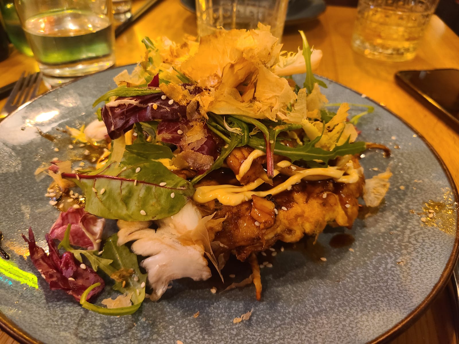J'attendais beaucoup de ce restaurant avec sa jolie décoration dépaysante japonaise. J'ai malheureusement été très déçue: les plats ont été + qu'adaptés pour les français. Je ne retrouve aucun marqueur des saveurs japonaises à la dégustation d'une carte pourtant authentique. Je pense que c'est bon quand on ne connaît pas la vrai saveur, mais le goût du Japon manque clairement. Un ramen sans goût de bonite mais plutôt pot au feu, de la salade verte sur un okonomyaki bien trop sec. Un petit plus pour les makis et nigiris toutefois qui étaient bien exécutés malgré leur petite taille.
