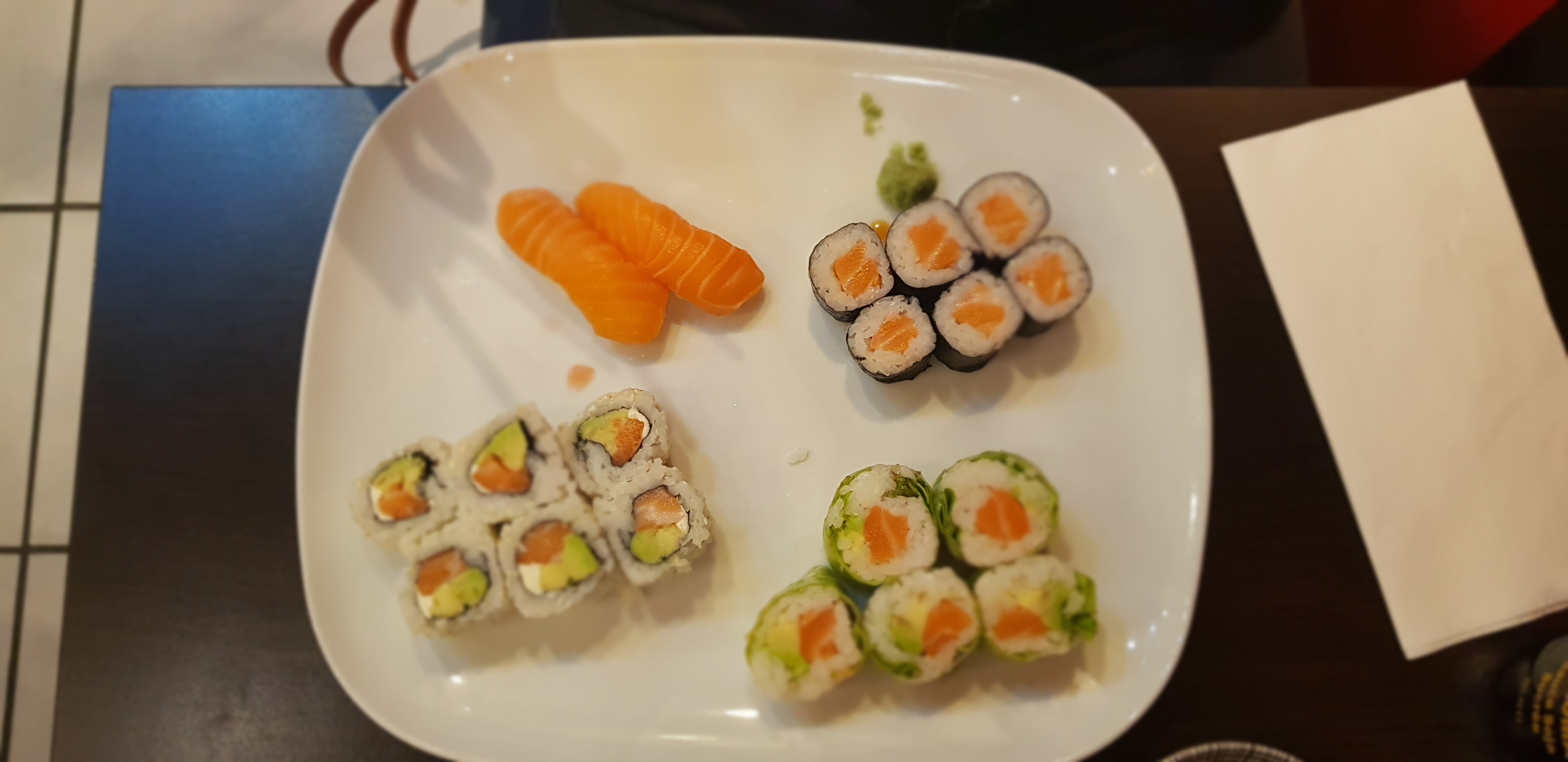 Excellent, rapide, personnel très gentil et professionnel, en prime un cadre dépaysant, on se croit au Japon. Le rolls Tora une merveille, les sushis fondants. Merci