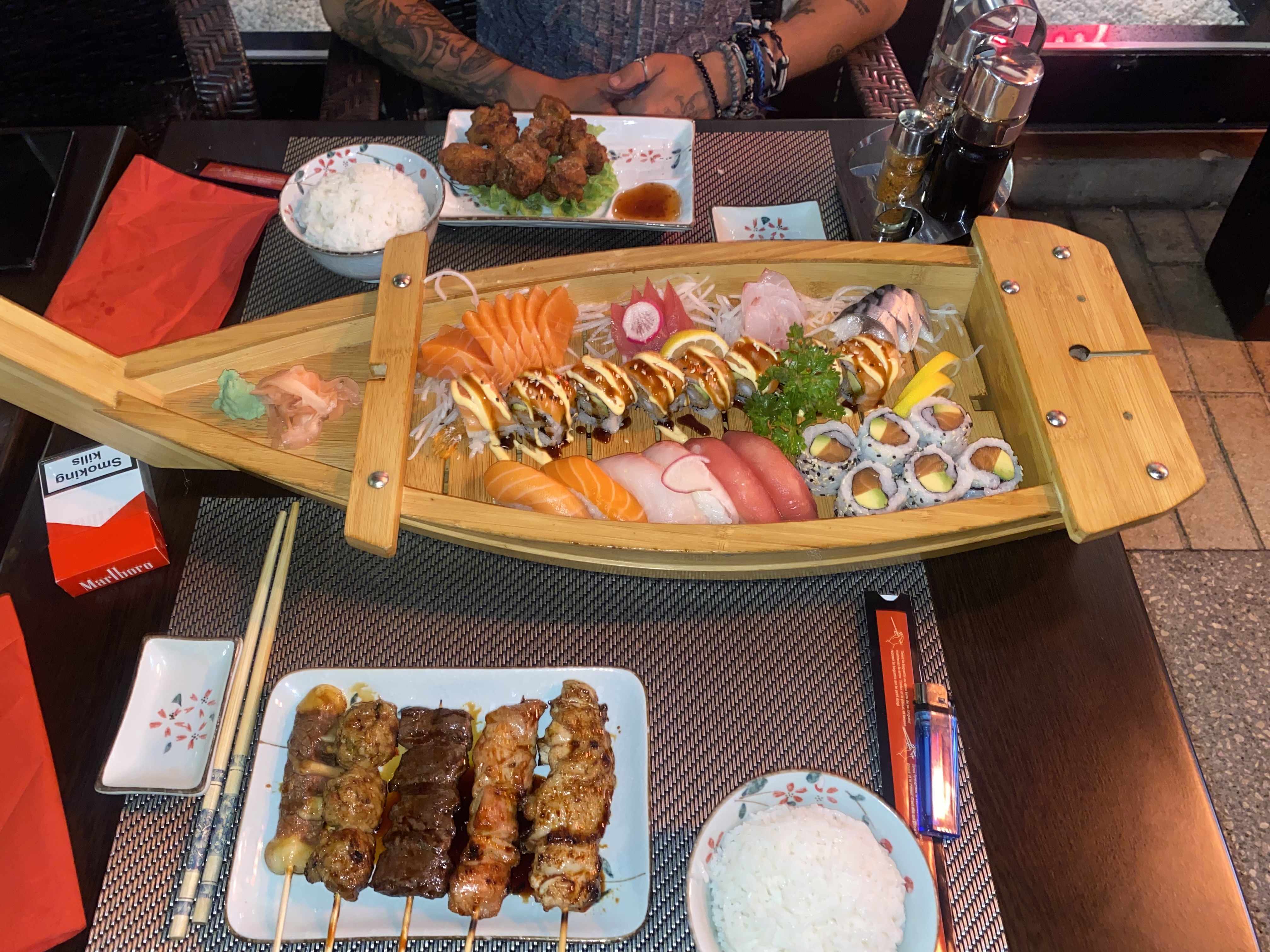 Très bon moment et très bons plats dégustés en amoureux. Serveur un peu trop a l'aise qui nous a pas dérangé sur le moment mais qui peut déplaire à certains. Petit bémol aussi sur le poulpe un peu trop caoutchouc . Sinon je recommande cela reste un très bon resto sur nimes pour les sushis.