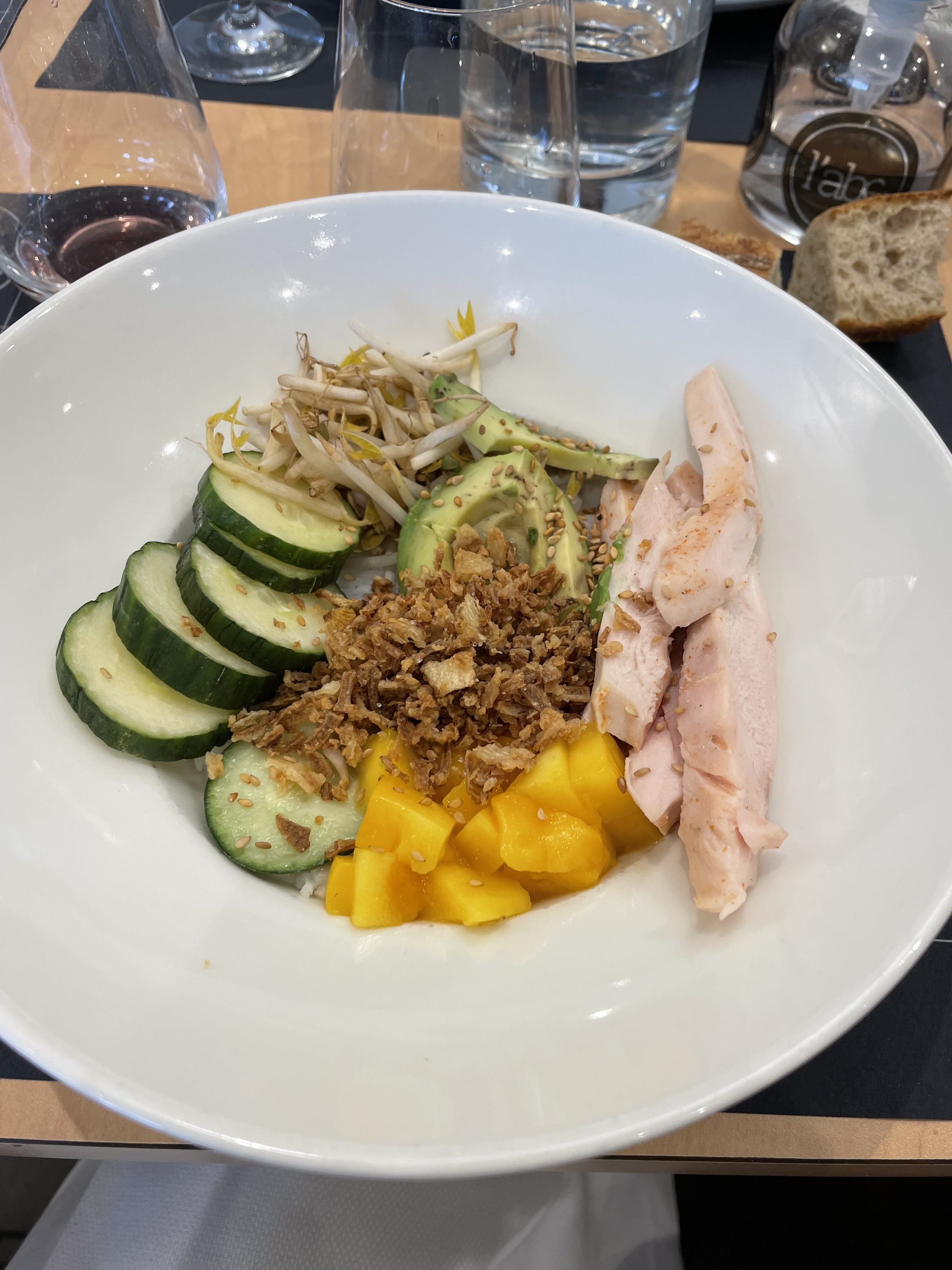 Nous avons bien apprécié le service ,personnel sympathique, le cadre très agréable moderne mais cosy j aime beaucoup Pour Monsieur un tartare excellent coupé aux couteaux bien assaisonner. Madame un poké-bol poulet excellent avec riz poulet avocat mangue concombre et sauce épices