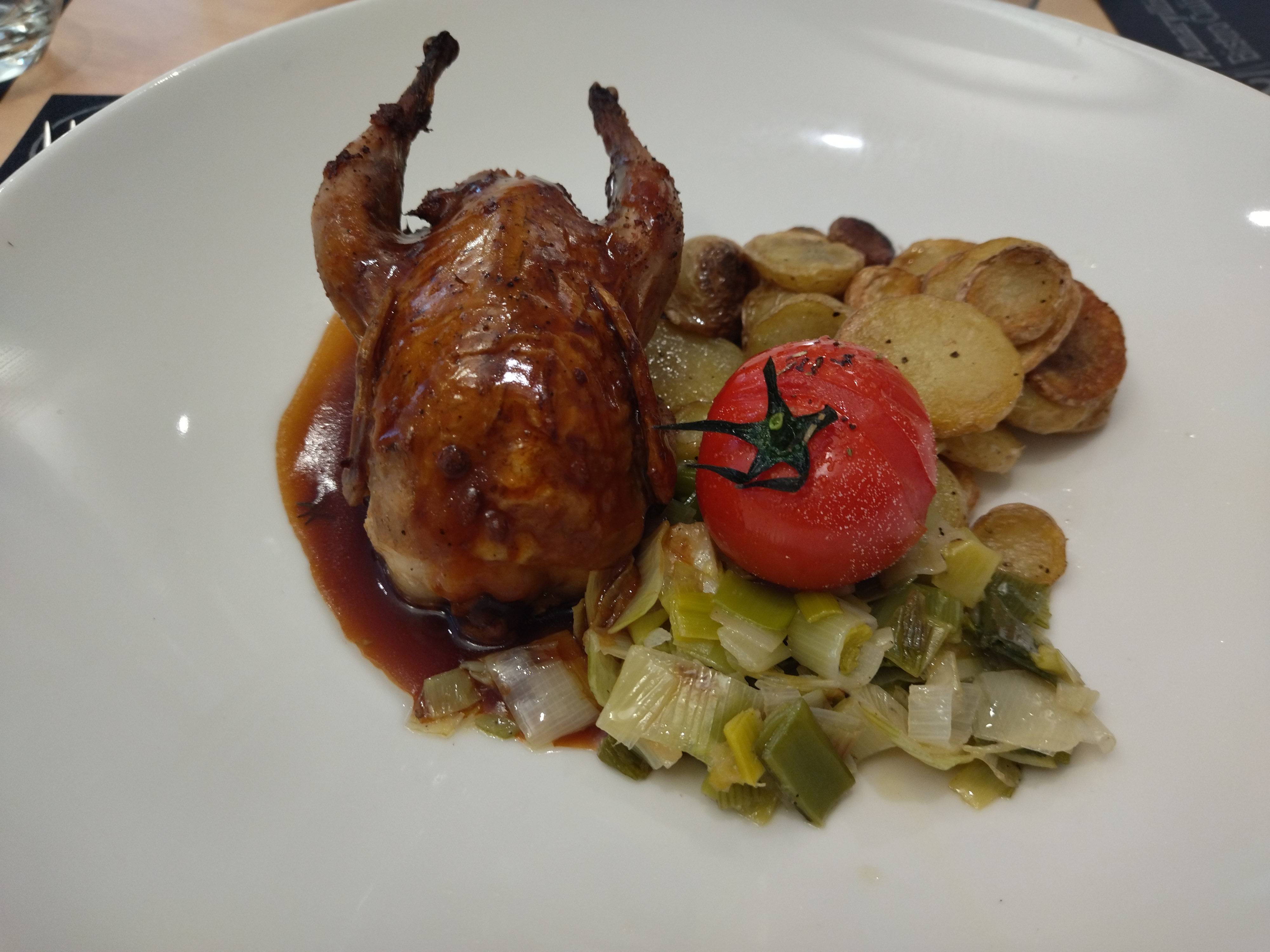 A l'apéritif nous étions 6, assiette tapenade avec 4 croutons toutes les convives n'ont pas pu goûter cette préparation, poulet basquaise, poulet saignant retour des assiettes pour une cuisson correcte mais malgré cela poulet rosé quand au dessert un peu spécial. Vraiment déçue, je crois n'avoir jamais aussi mal mangée