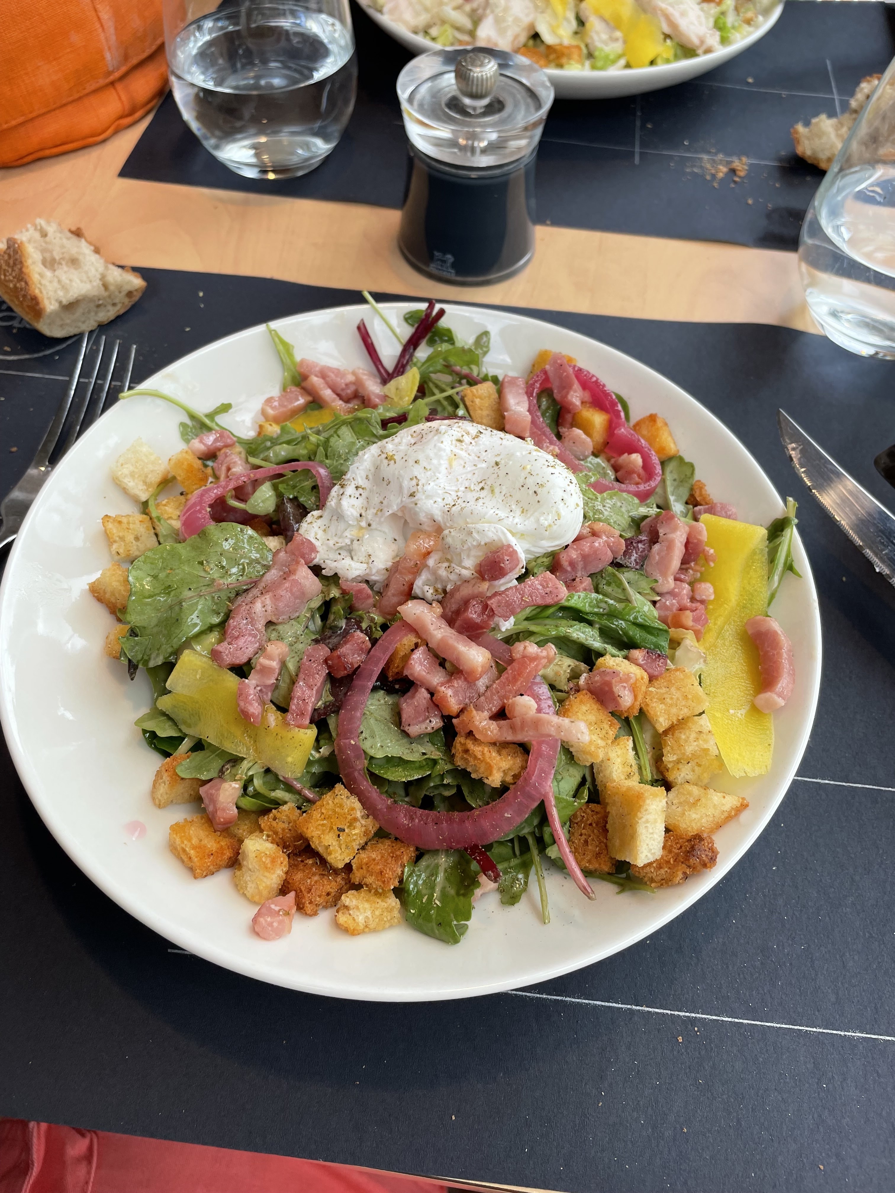 Décevant pour le prix du menu. Produits de qualité mais les œufs en meurette étaient très tièdes et le hamburger commandé sans oignons et cornichon est arrivé avec. Par contre accueil agréable