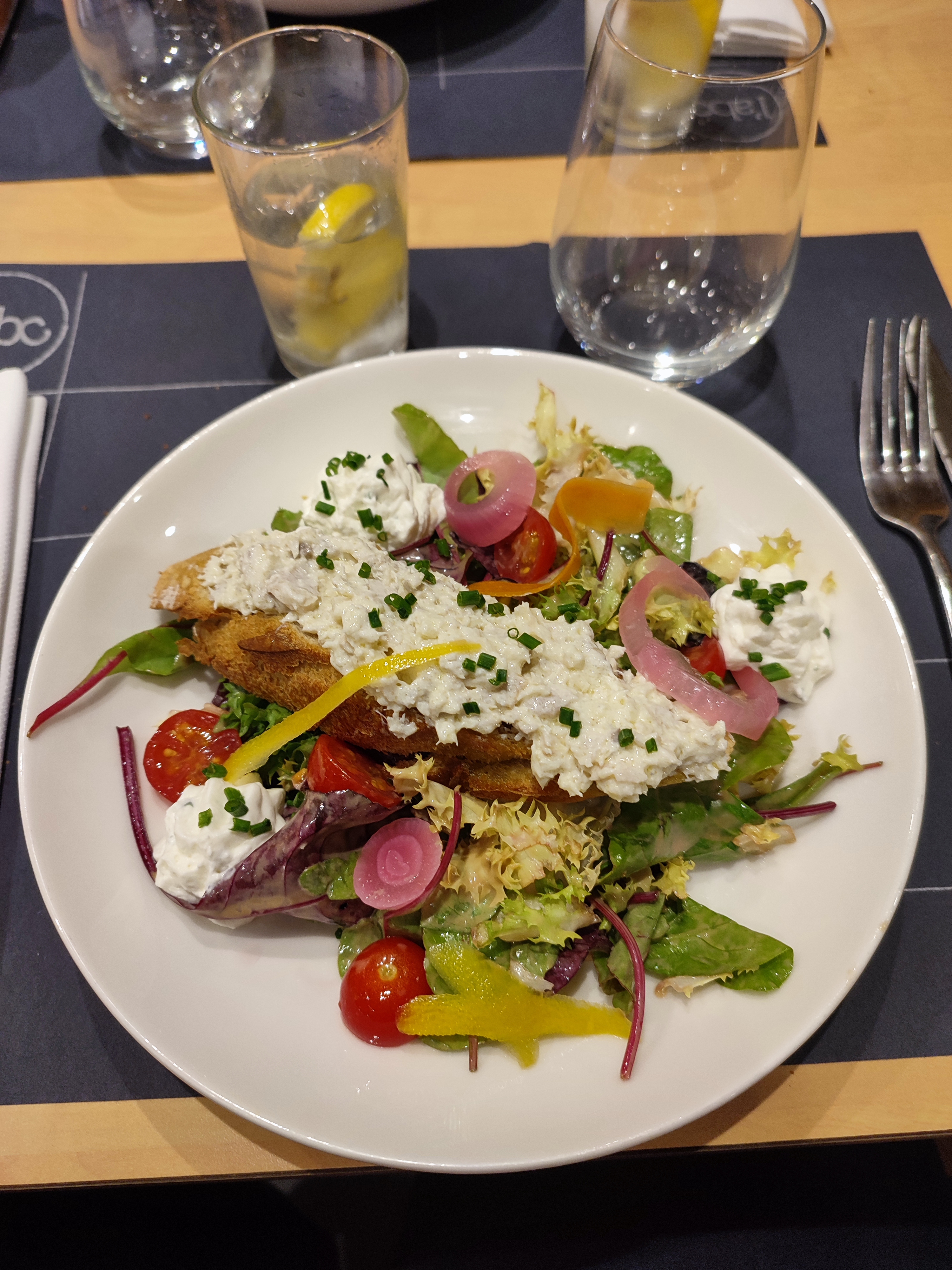 Très bien accueilli par le personnel. Jolie salle. Menu du jour à 21 € les trois plats ou choix à la carte. J'ai pris le burger de l'ABC vraiment très bon et le dessert autour de l'agrume que j'ai adoré. Je recommande mais attention pour les gros mangeurs cela peut être un peu juste.