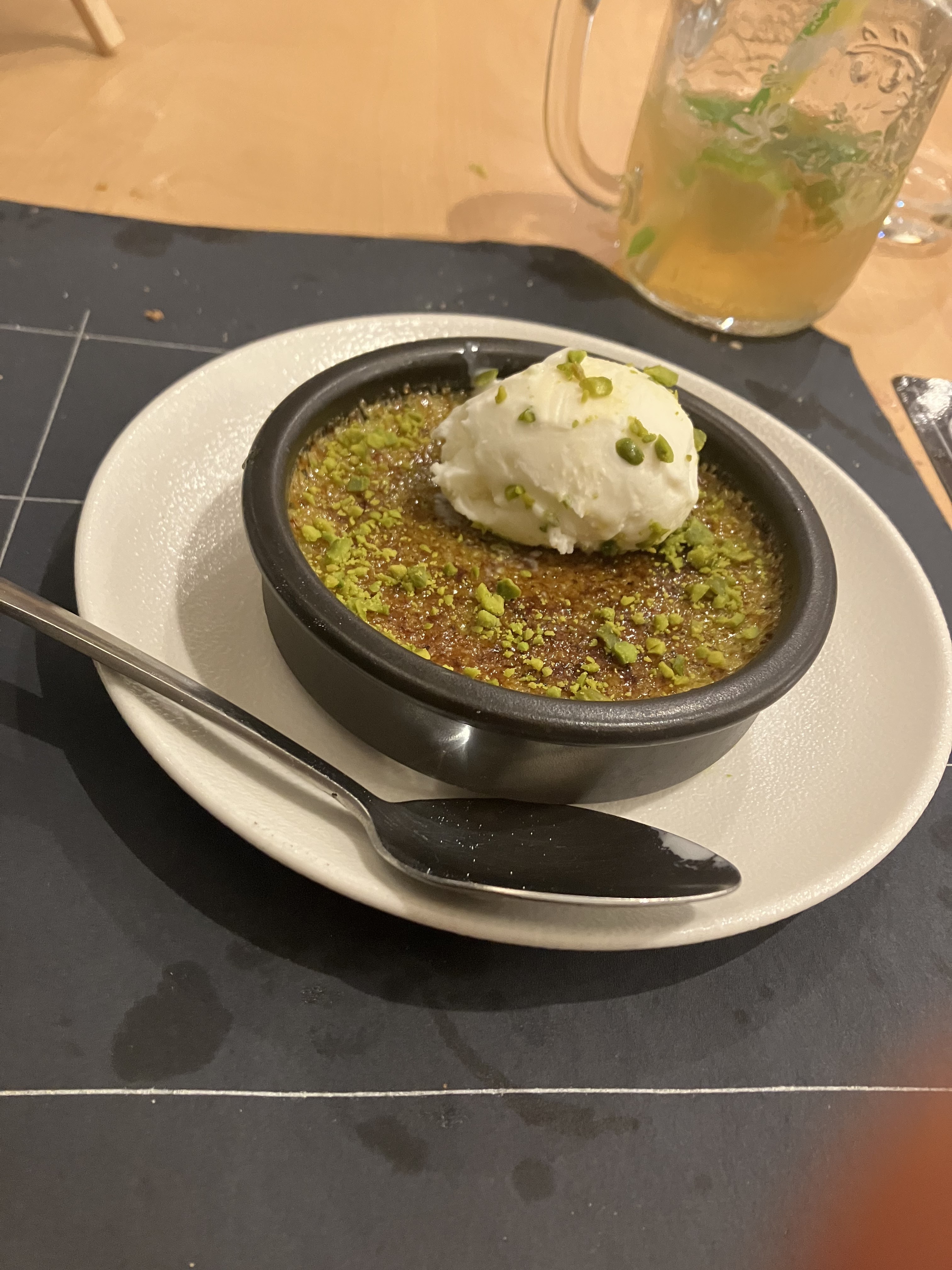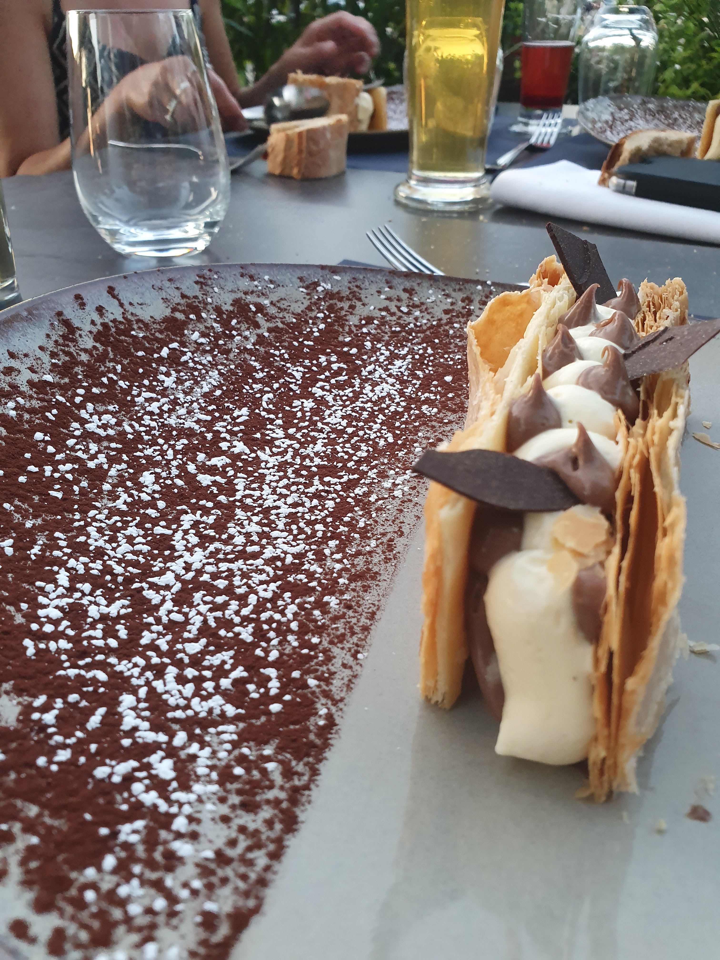 Cadre agréable. 15€ pour deux morceaux (pas tranche) de truite c'est trop cher. Panna cotta qui a graine. Service un peu long.