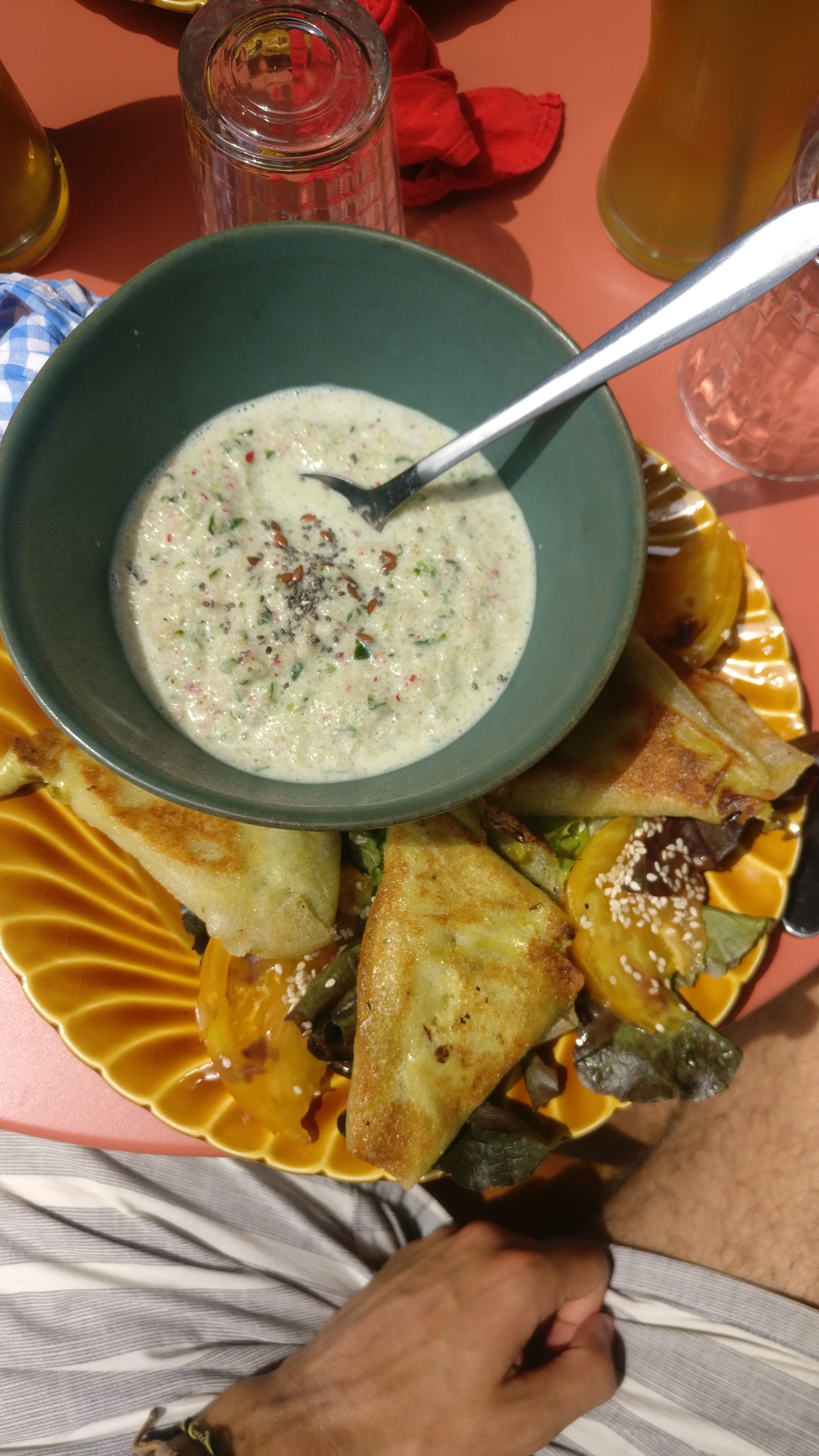 Frais, fait-maison, sain et zéro-déchet ! Le choix est restreint mais varié et tous les jours différents.J'y ai mangé aujourd'hui sous le soleil. C'était juste parfait. Et un super accueil =) j'y retournerai c'est sûr