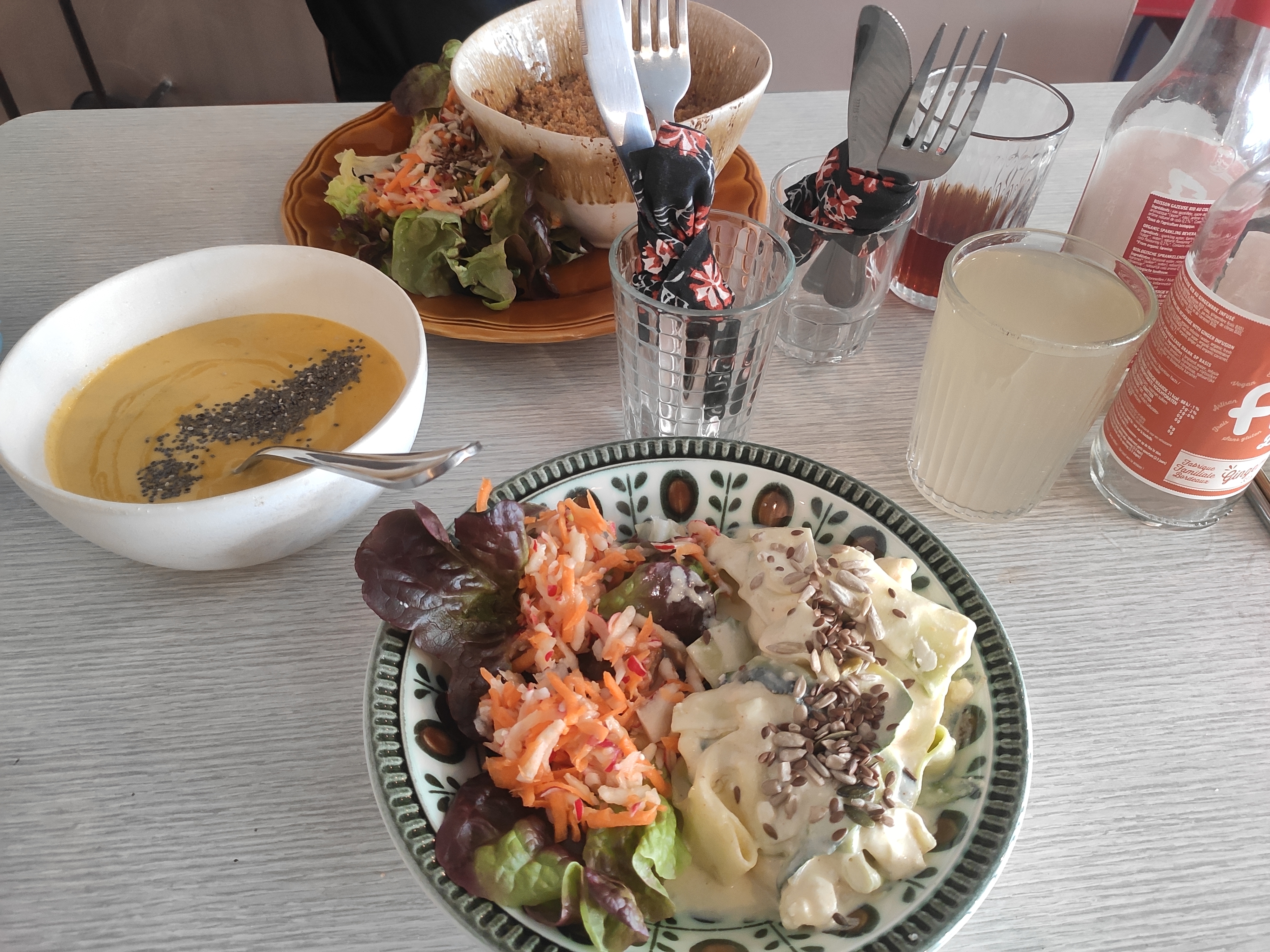 Un super lieu zero-déchets, végé-friendly (et bientot vegan friendly, selon la gérante, au vu de la demande grandissante). Nous sommes passés ce midi pour y boire un verre : l'accueil était top, les thés glacés maison étaient délicieux (et on y propose même du Kéfir de fruits, une boisson naturelle probiotique et pétillante). Je reviendrai avec grand plaisir dans ce resto convivial et éco-sensible pour goûter aux plats vegans :)