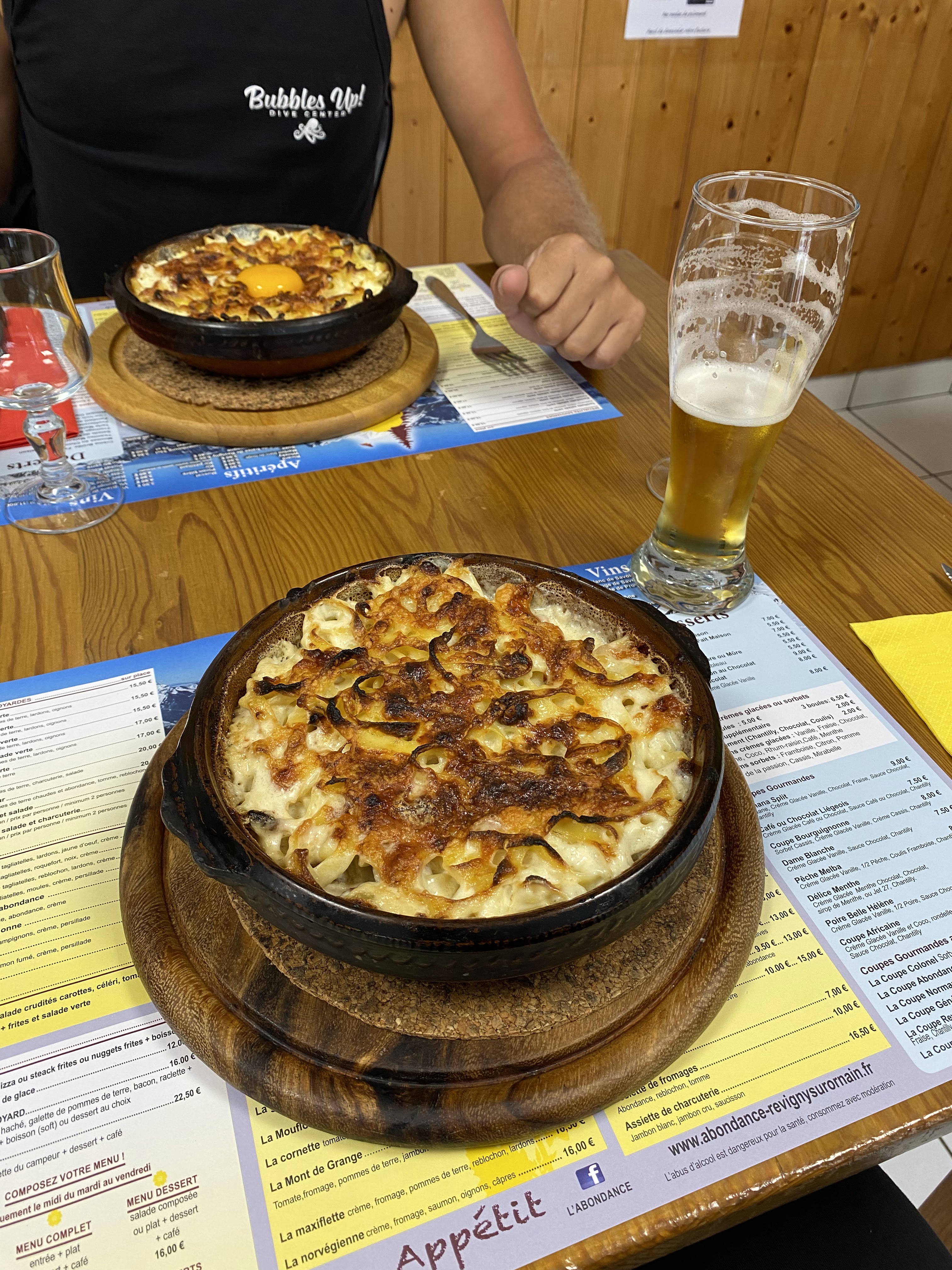 Tartiflette avec différents fromages Fondues Mais pas de raclette.... dommage Bonne bière régionale