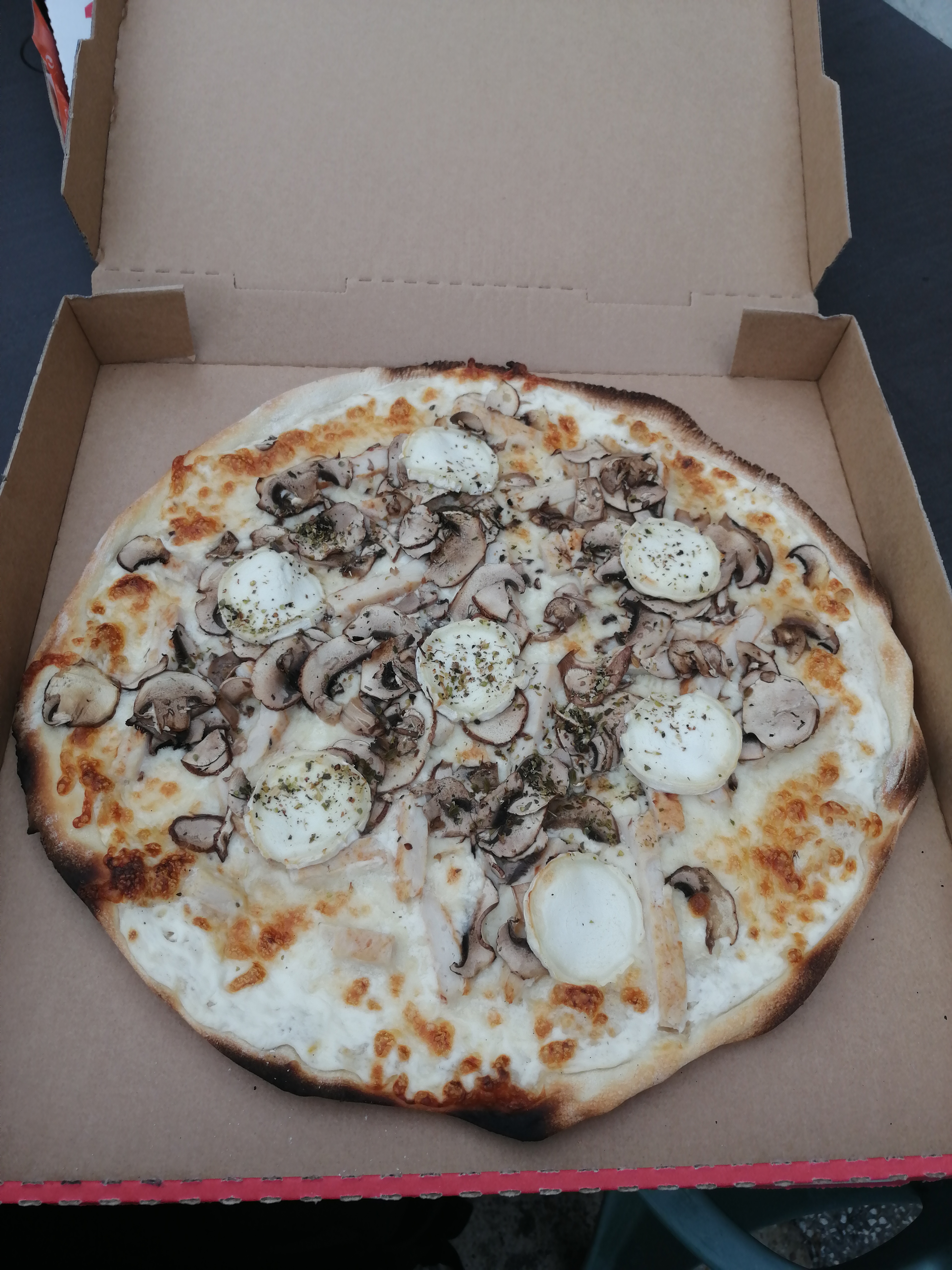Vu la crise sanitaire, nous avons mangé dehors pour le dîner. Malheureusement très près de la route, à hauteur des gaz d'échappement. Malgré tout nous avons bien mangé, les pizzas bien fournis, chaudes et bonnes. Bien accueilli par la patronne, souriante, agréable.