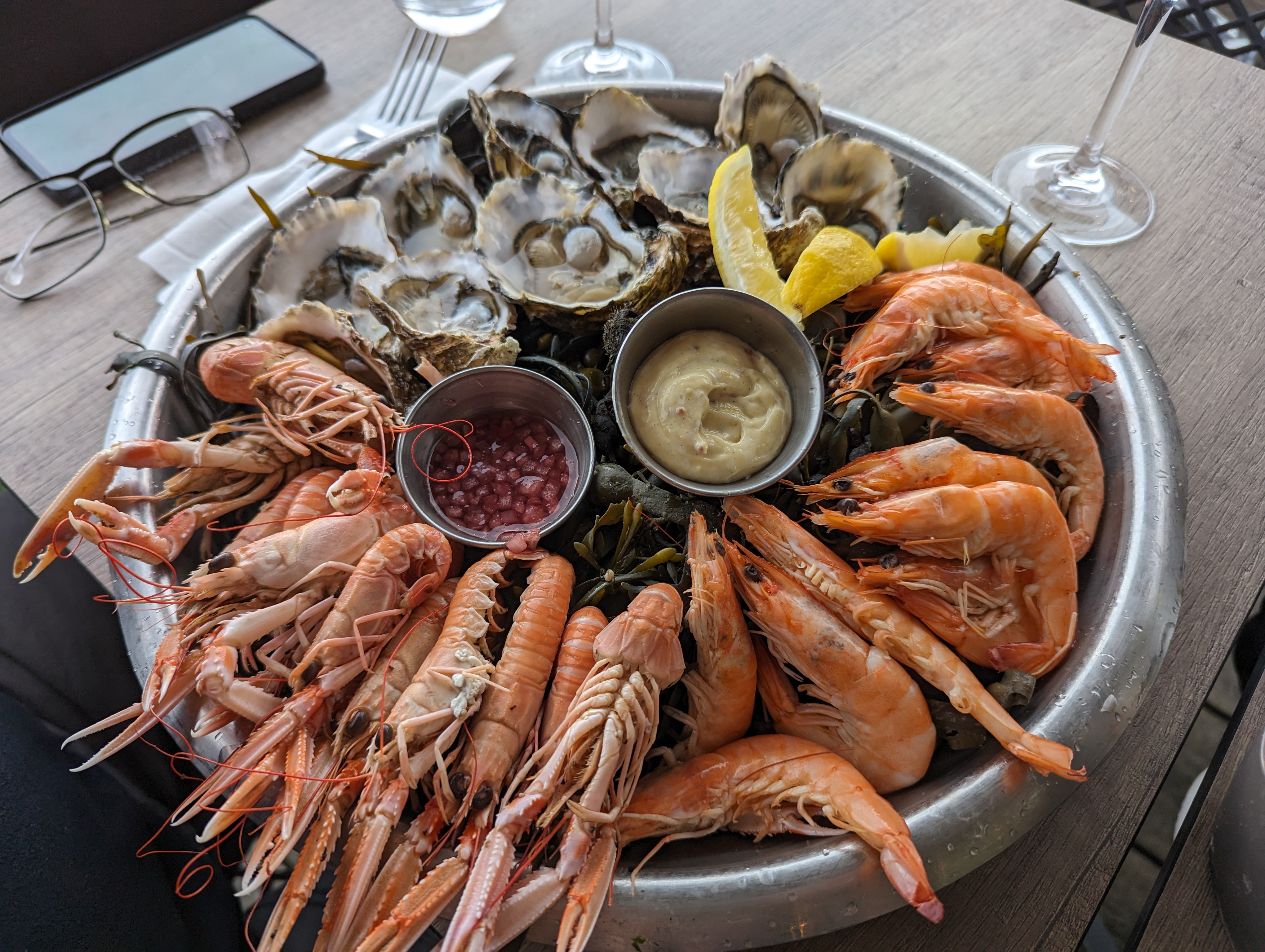 Dommage peu de choix, prix dans la normale, resto plus produits de la mer, pensez à réserver sinon attente, le service est rapide, perso, j'ai pris une salade césar , pas top, beaucoup de salade verte et peu d'autres ingrédients Privilégiez les produits de la mer Le cadre est plutôt sympathique