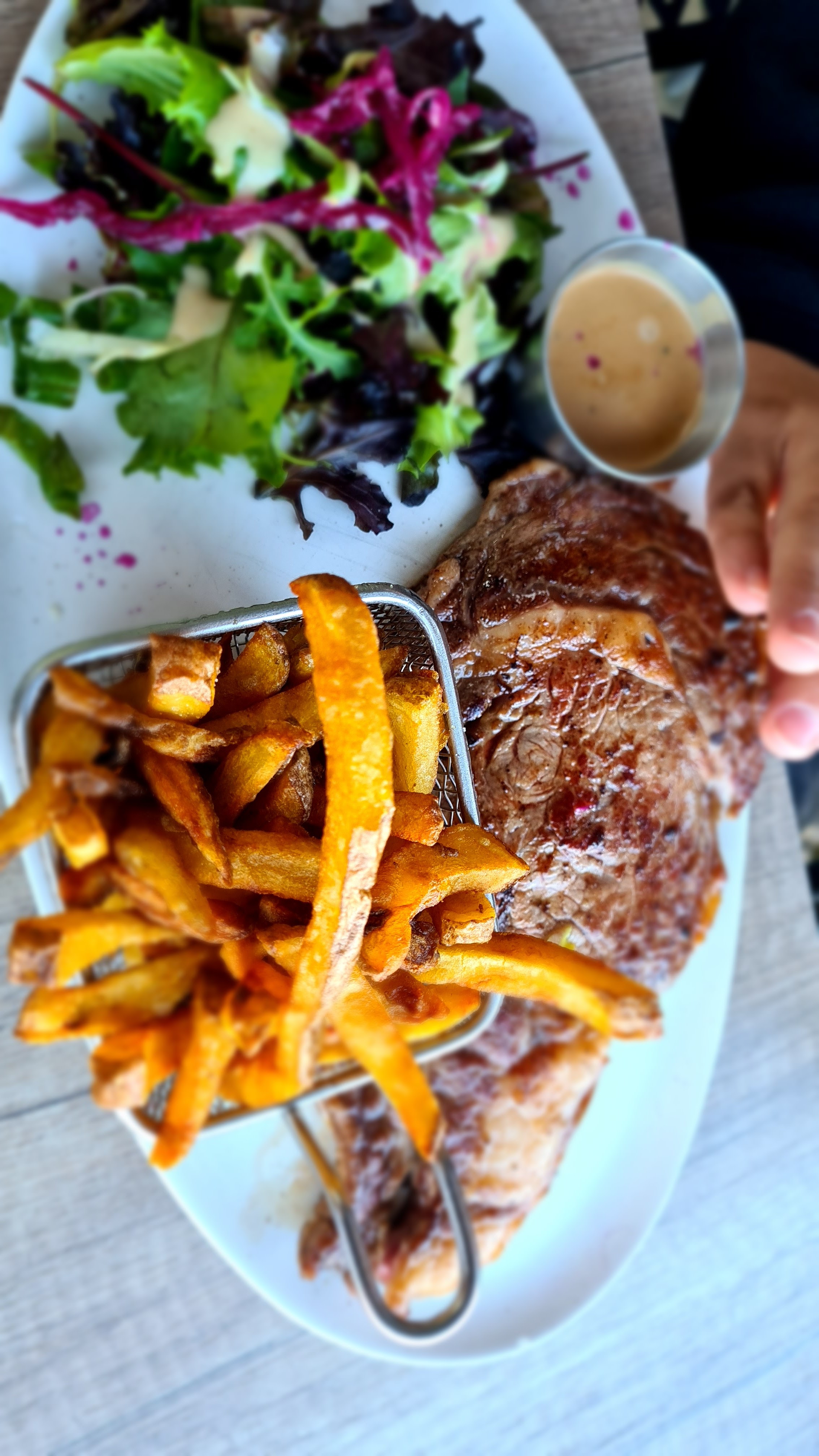 Cadre très joli et paisible, la météo en ce week end de 5 jours se prêtait vraiment à un repas en terrasse ! Néanmoins nous avons attendu 1h10 avant d’être servi car nous avons été oublié … puis le tataki a été servi en entrée (petite portion) au lieu d’un plat, l’entrecôte était très grasse et il fallait redemander une deuxième fois à un autre serveur pour avoir les sauces/ essuies mains … Cependant mon était Burger excellent ! Je recommande quand même … peut être qu’avec un autre serveur ce serait mieux