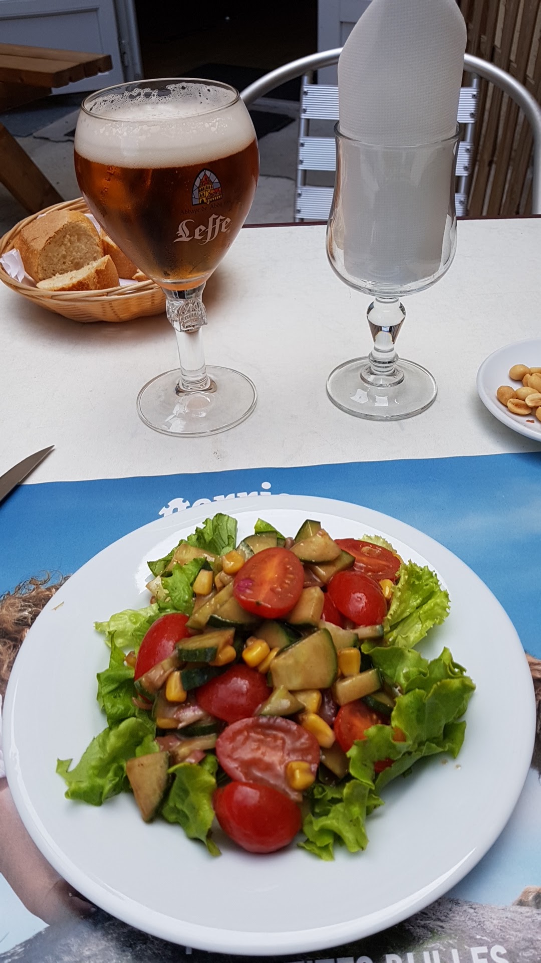 Salade gourmande complète et excellente, bravo au cuisinier. Mais, malgré une réservation pour 4 personnes en terrasse, peu de tables occupées,, 3/4h d'attente, sans rien de servi, malgré notre demande d'une bouteille de vin pour l'apéritif, qui arrive en même temps que le plat. C'est long.mais très positif.