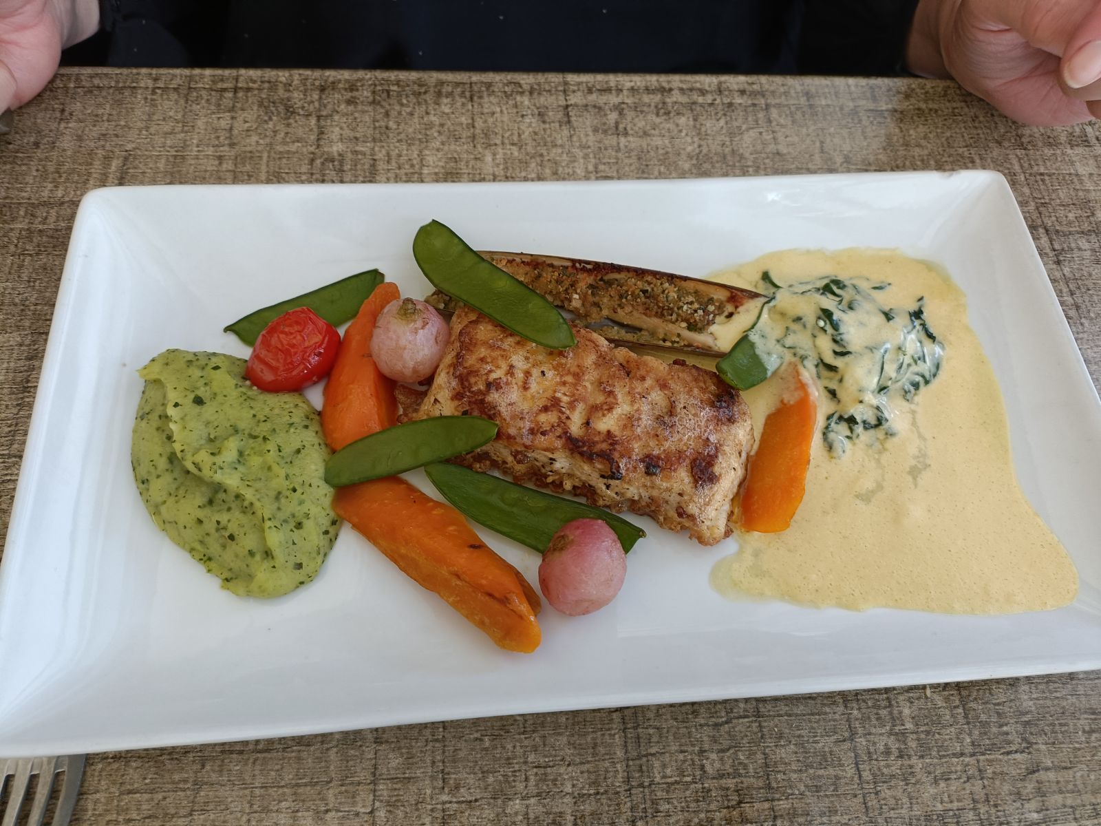 Excellent ! Étant végétariens avec mon conjoint, le chef nous a concocté un repas absolument délicieux, de l'entrée au dessert. L'accueil et le service étaient tout aussi excellent mais aussi très chaleureux et à l'écoute. Le cadre est magnifique. Bref je ne vois que du positif et j'y retournerais lors d'un prochain passage dans la région 😊