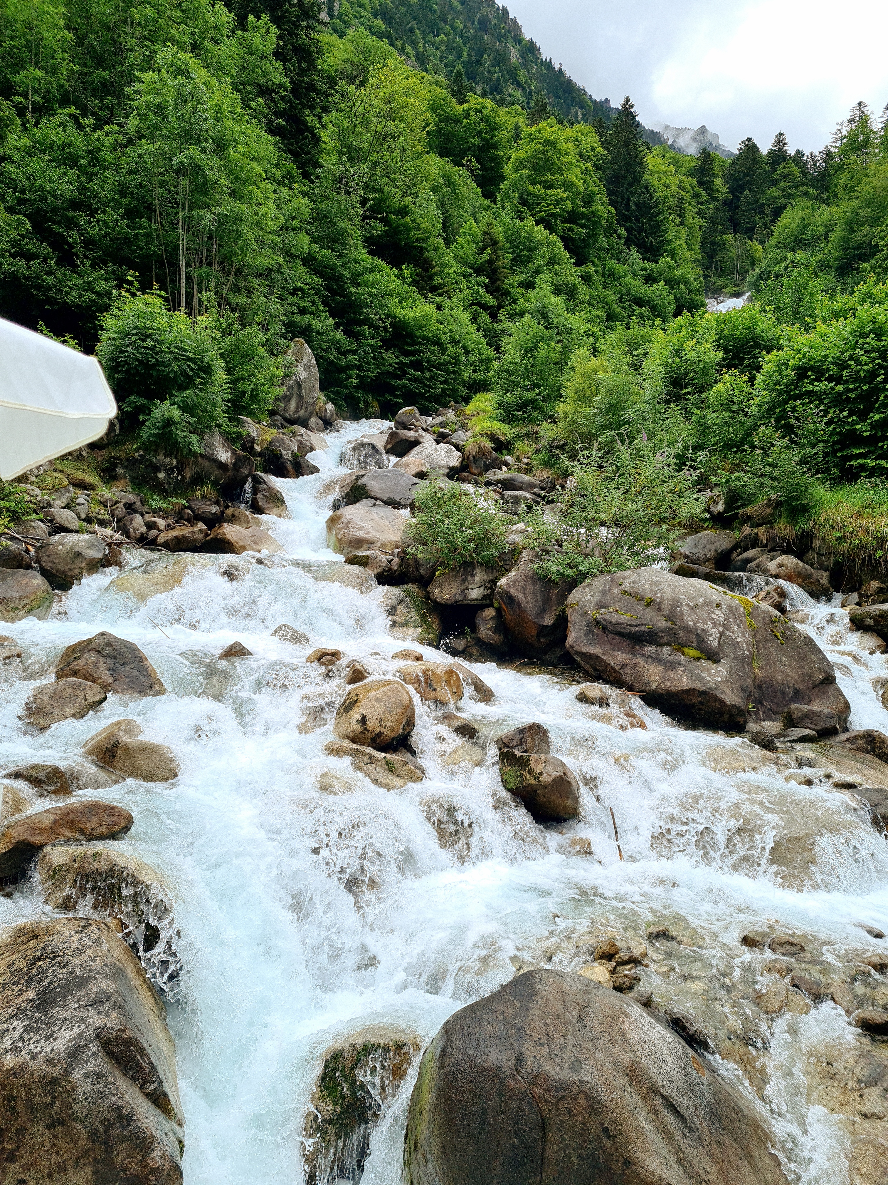 Déjeuner du 6 juillet parfaitement délicieux. Sans réservation, l’accueil était très chaleureux. Les pats copieux et divins. Le cadre est juste magnifique avec les cascades autour de nous ! A refaire !