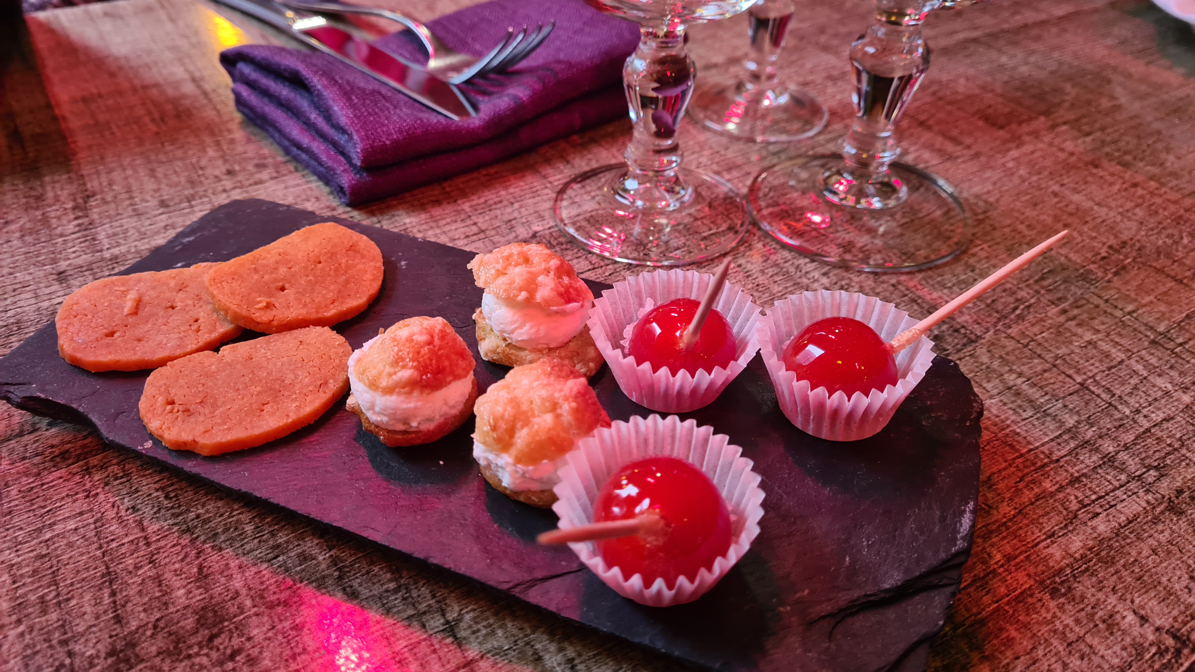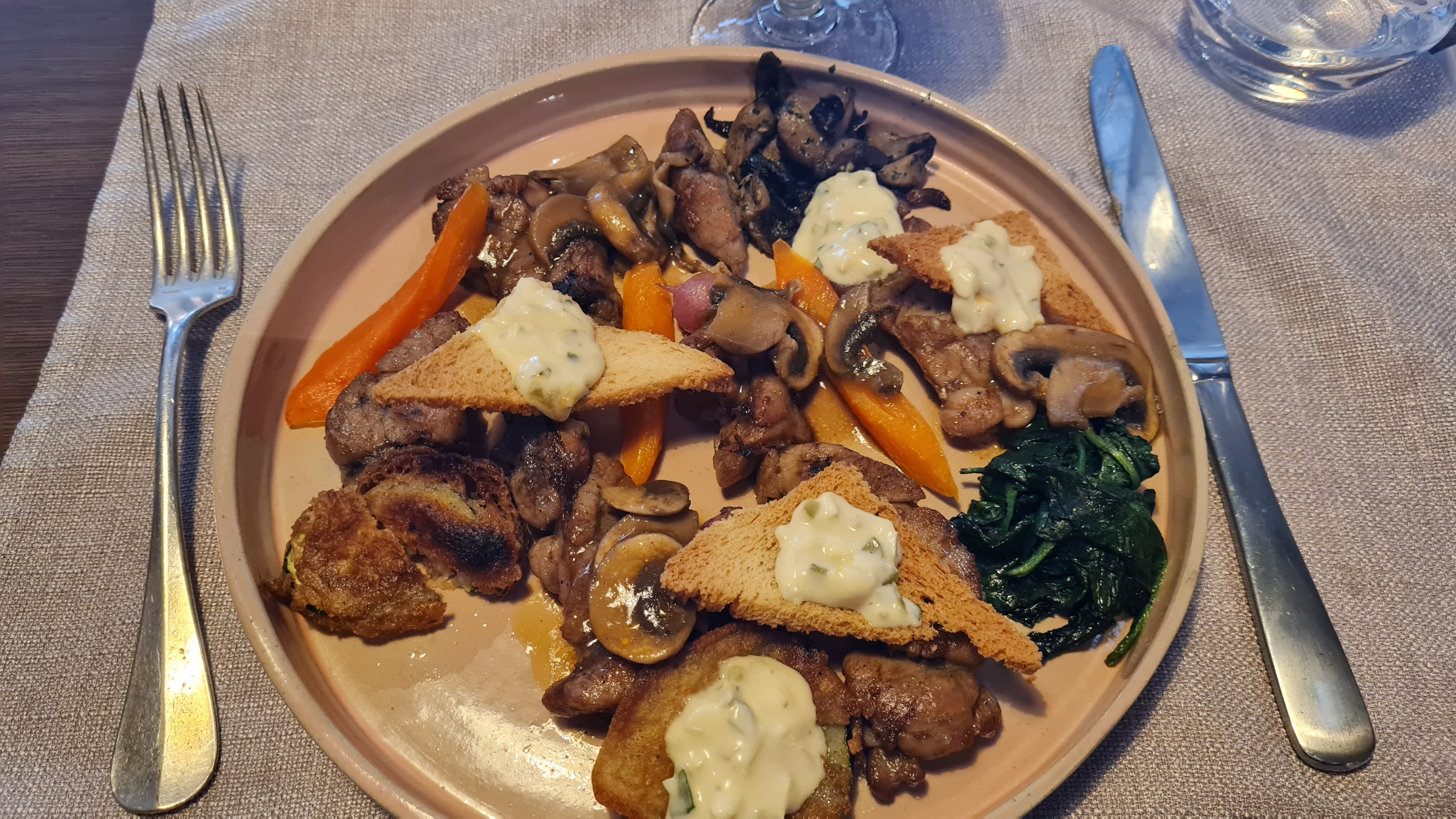 Nous y sommes allés pour marquer le coup, et c'était une belle aventure gustative entre deux randonnées, on s'est laissé tenter par le menu sensation à 48€, on a eu la place à côté du poêle à granulés en fonctionnement
