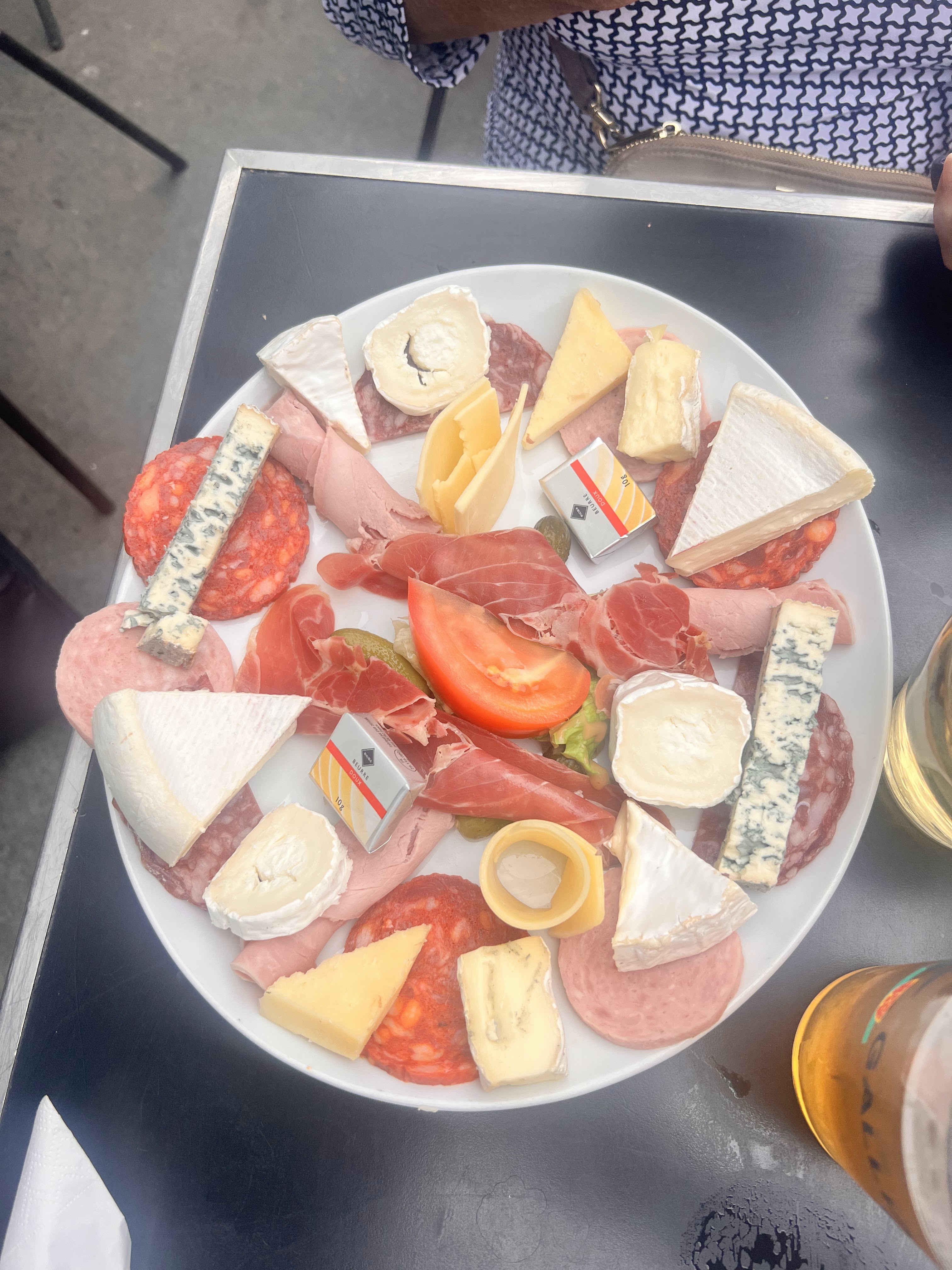Une pinte en terrasse avec un planche mixte charcuterie-fromage. Bonne bière Gallia pour un prix raisonnable. 6€ la pinte en Happy Hours