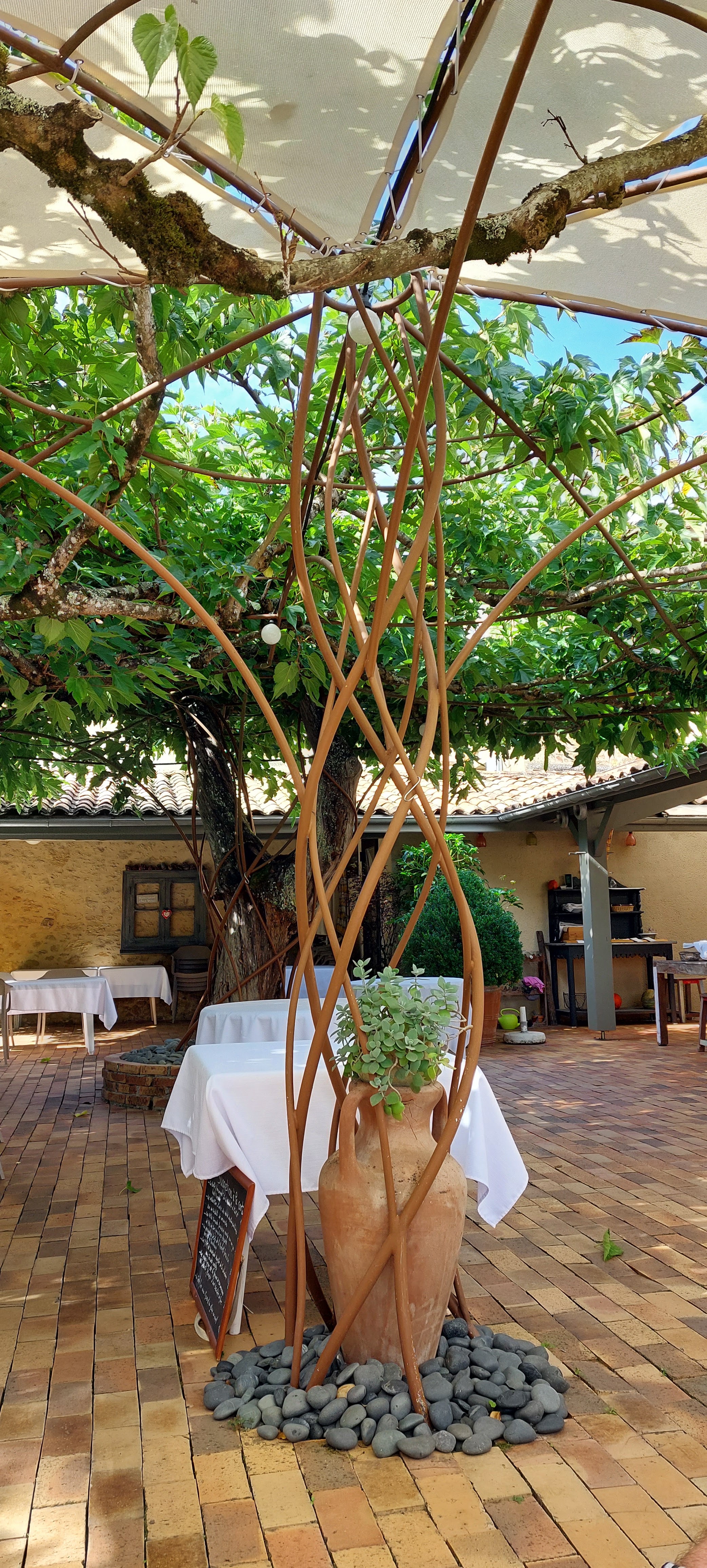 Restaurant en terrasse ombragée, magnifique arbres et Jardin. Restauration très bon rapport qualité prix, Excellent service, doublé de gentillesse et professionnel,