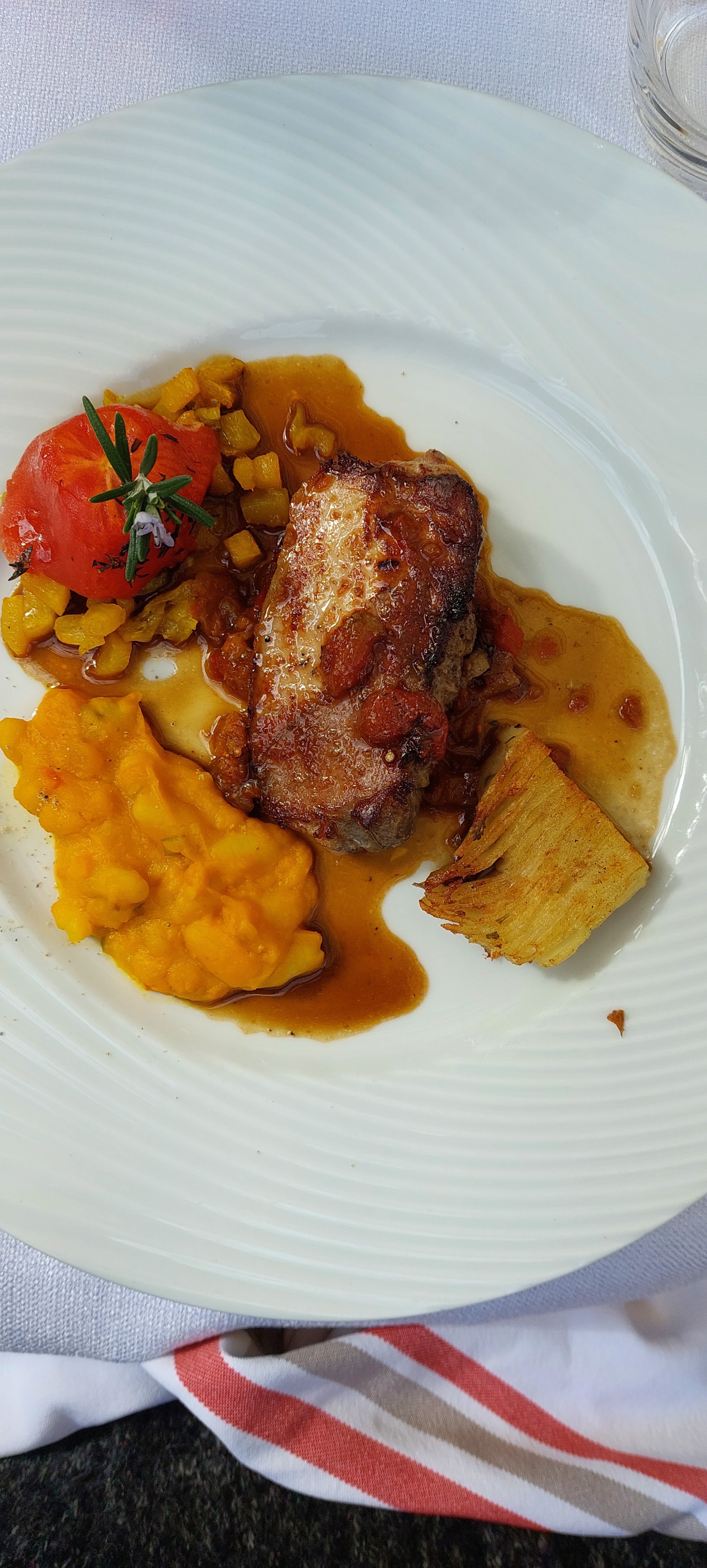 Déjeuner sur la magnifique terrasse très agréable ce dimanche avec la gourmandise de homard saveurs des îles, puis les filets de rouget sur tapenade d'olives noires à la cuisson parfaite. Pavlova aux pêches blanches et sorbet verveine pour un dessert rafraîchissant. Service attentionné et efficace et accueil souriant de madame Zanette.