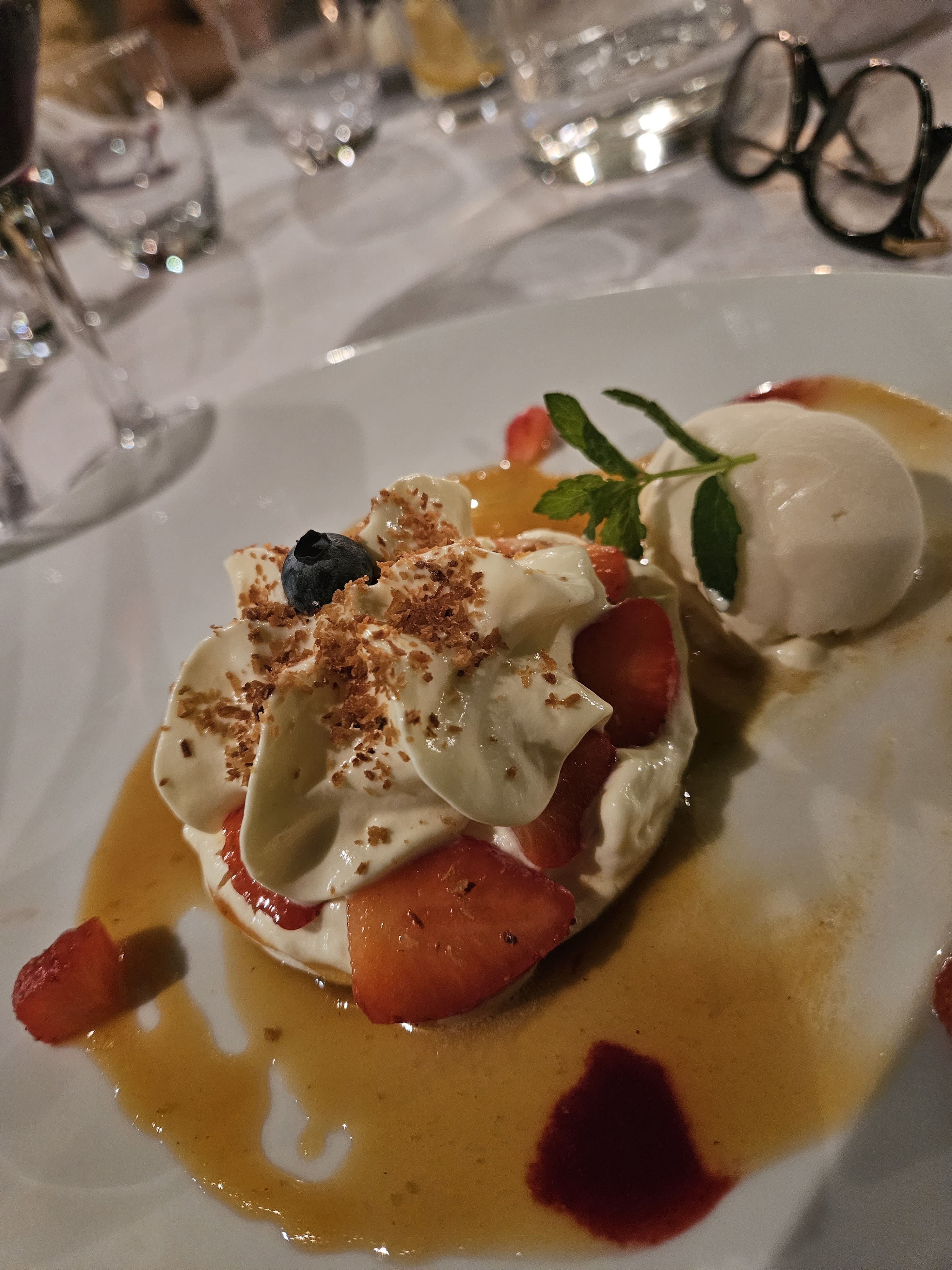 De très bons plats mais pas très copieux, peu de légumes en d'accompagnements. De nombreuses petites attentions (canapés et gourmandises) entre les plats. Un peu cher sur certains plats: coupe de fraises simple 10€