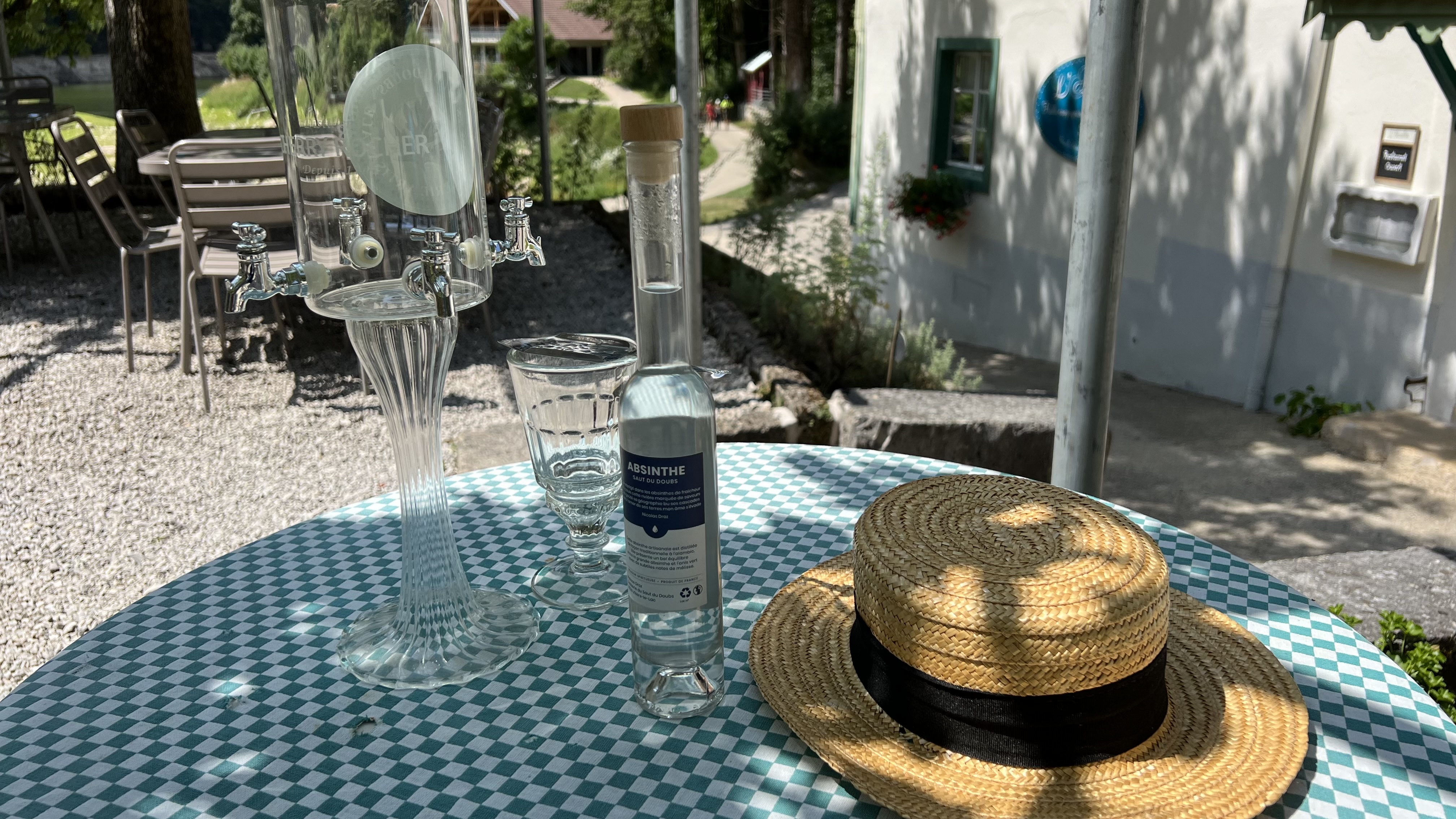 Un magnifique moment passé dans ce sympathique restaurant... La terrasse est superbe, et à l'intérieur une salle pleine de charme, avec des vitrine remplies d'objets anciens qui tournent autour du thème de l'absinthe. Le patron est très sympa et vous le reconnaîtrez à son petit canotier et à son large sourire. Sa fille, adorable et souriante, nous propose une dégustation d'absinthe et des produits de la région de belle qualité. Que du beau, du délicieux... Un incontournable pendant l'été. A ne manquer sous aucun prétexte! La chute du Saut-du-Doubs est à 5 minutes à pieds.