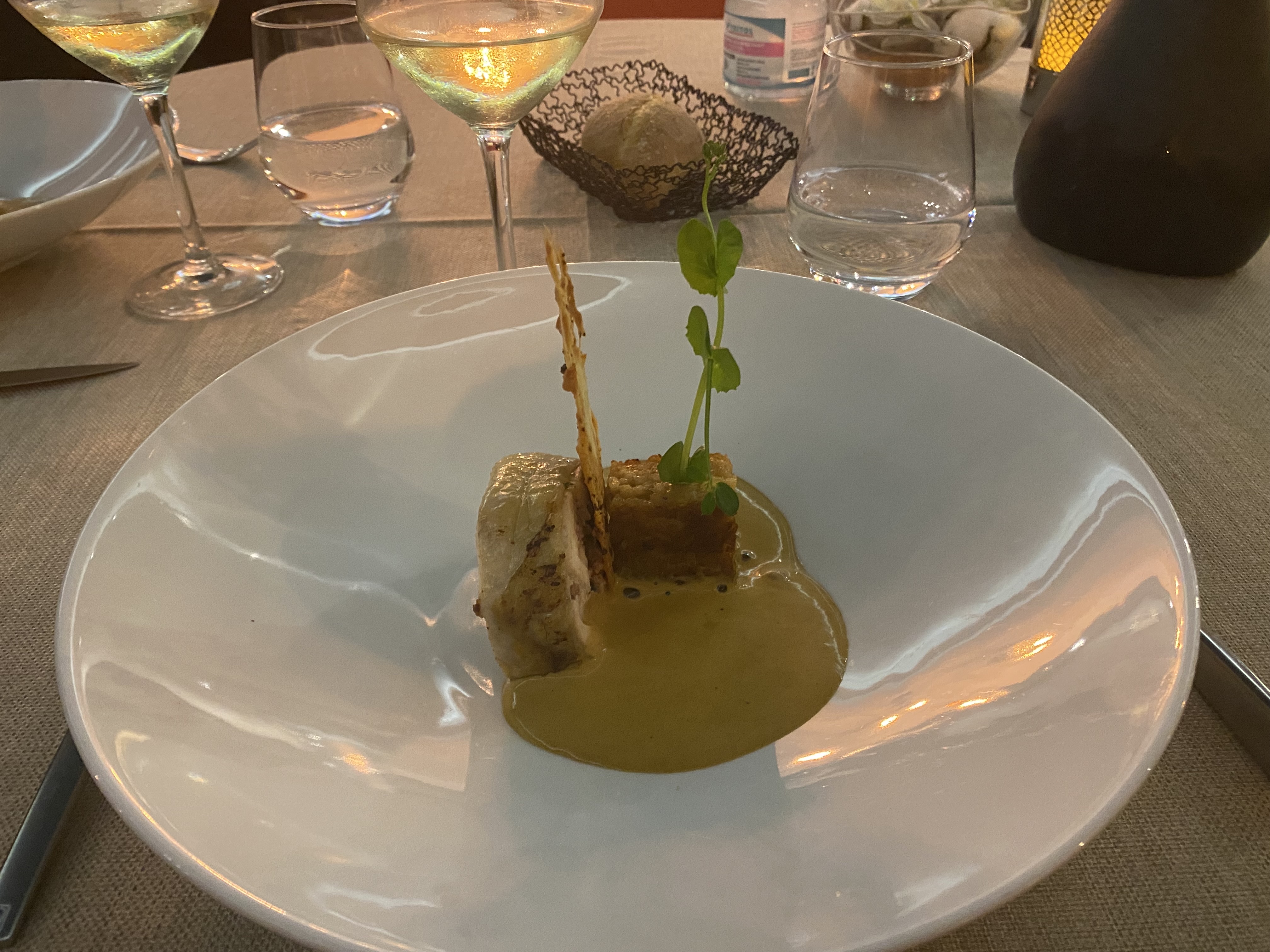 Très bon restaurant avec un serveur disponible et très agréable. La présentation des plats est très jolie et les saveurs sont au rendez vous. Seule la gestion des stocks de vins est à améliorer car le vin choisi n était pas disponible et celui suggéré en remplacement n était pas bon. Mais la qualité de l ensemble nous pousse à y revenir...