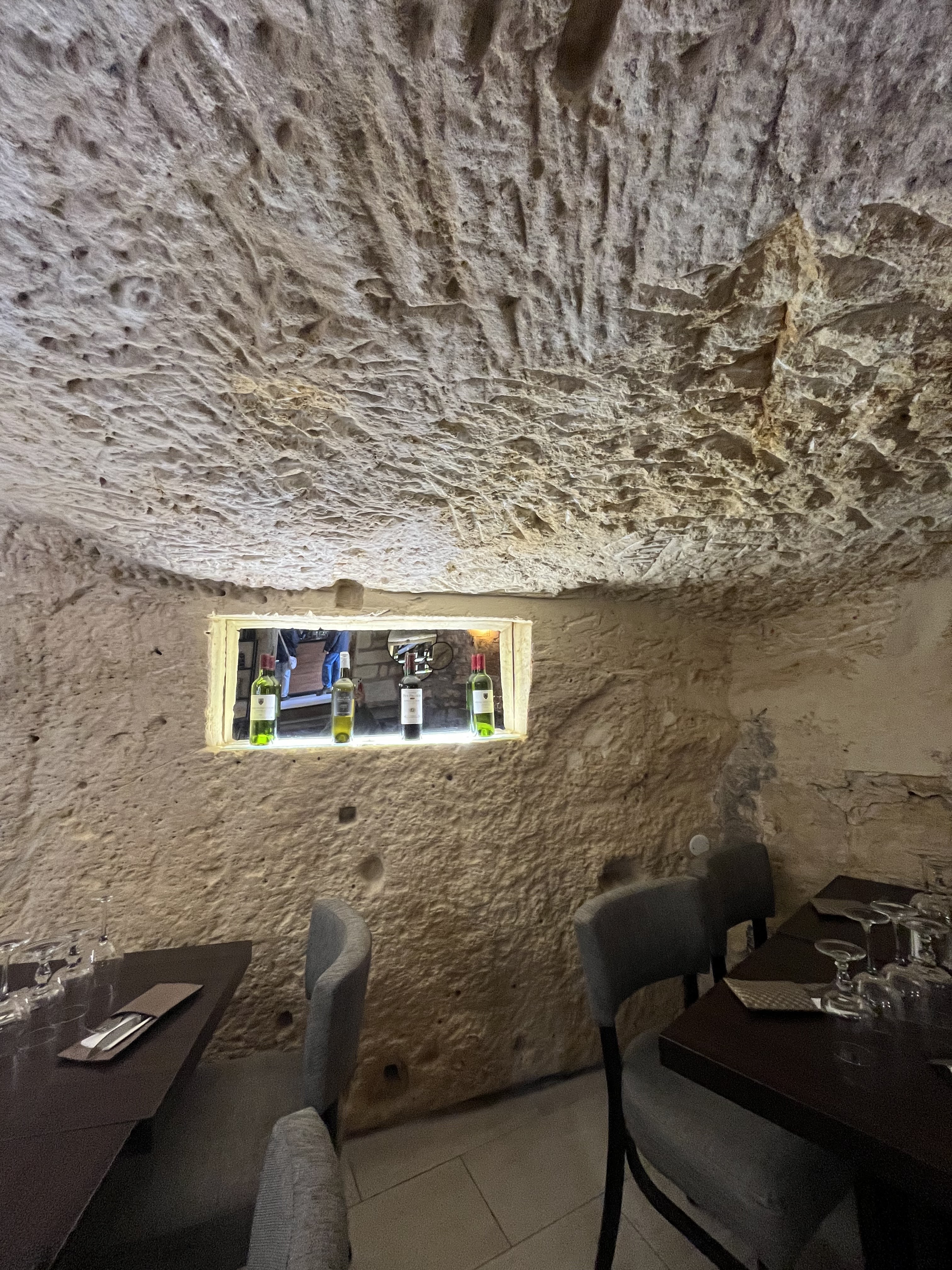 Salle de restaurant style troglodyte, très atypique, excellent vin et personnel au top. Je recommande.