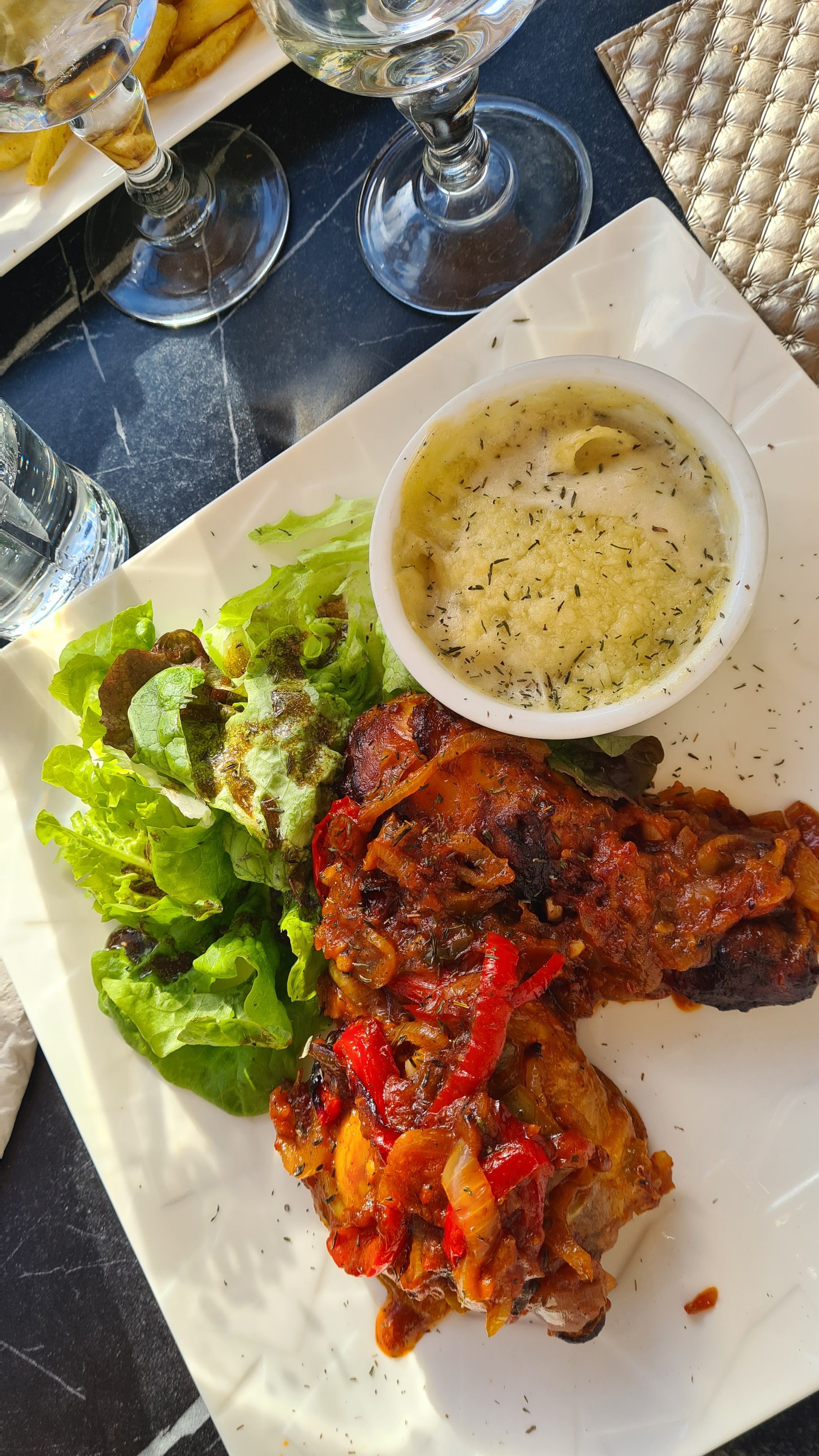 Nous avons eu le canard confit c'était vraiment bon ! Le côté pomme de terre était également très bon.