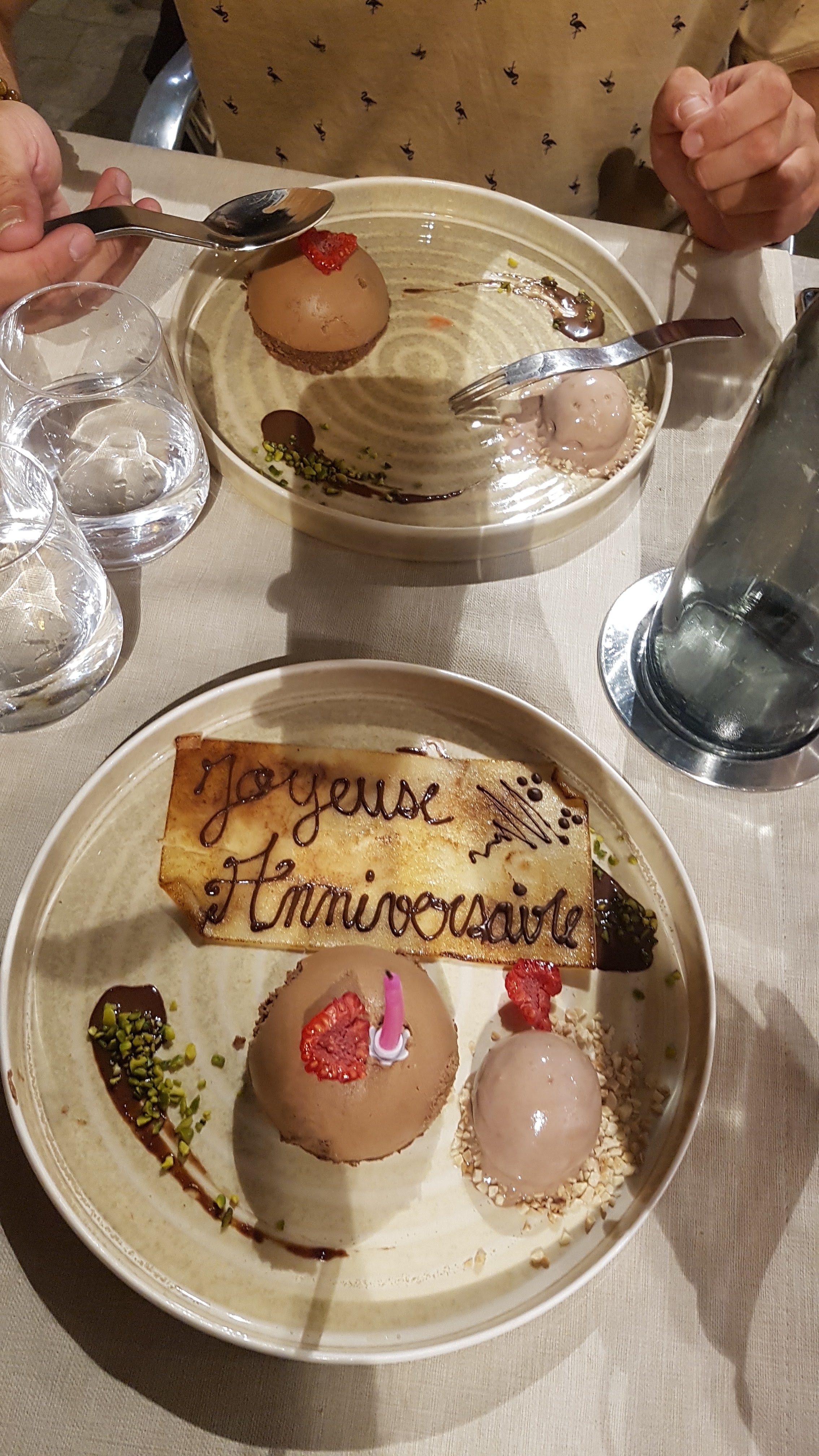 J'ai déjeuné aujourd'hui à L'accalmie pour mon anniversaire, c'était fabuleux. La cuisine était succulente. Les noix de Saint-Jacques était délicieuse. Les riz de veau était magistral. Pour le gâteau un macaron au framboises avec une boule de glace. J'ai eu droit à une bougie sur le gâteau. Tout le personnel de service m'a souhaité mon anniversaire. C'était très gentil. Il faut réserver car il y avait beaucoup de monde. Ce n'est pas l'accalmie des papilles tellement c'est savoureux