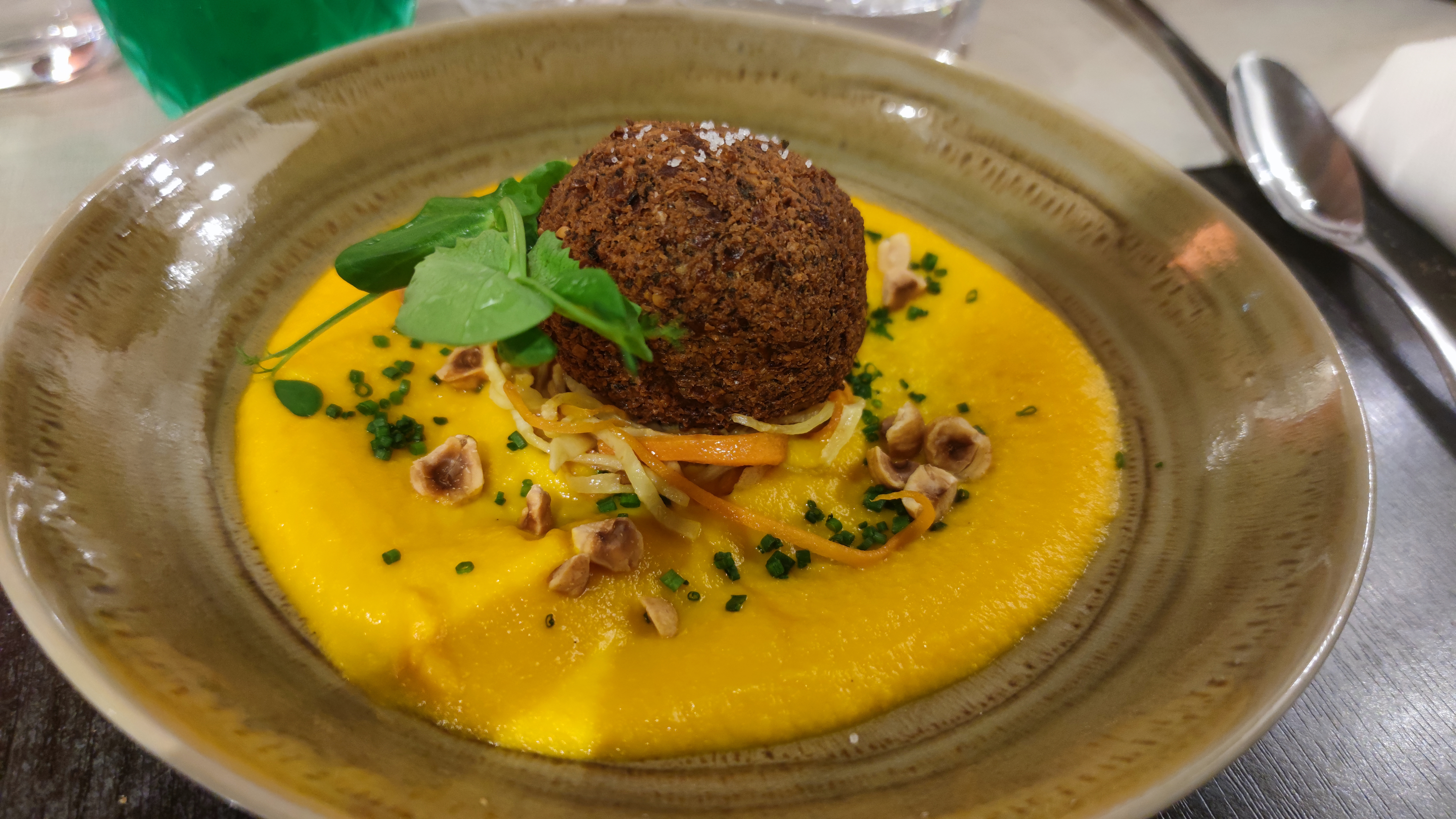 Ravie qu'un restaurant gastronomique puisse proposer des menus pour les végétariens aussi gourmands et savoureux. L'esthétique est parfaite dans l'assiette et j'ai découvert des mélanges de saveurs riches. Je recommande vivement d'y aller, c'est abordable pour la qualité des plats tant que la quantité.