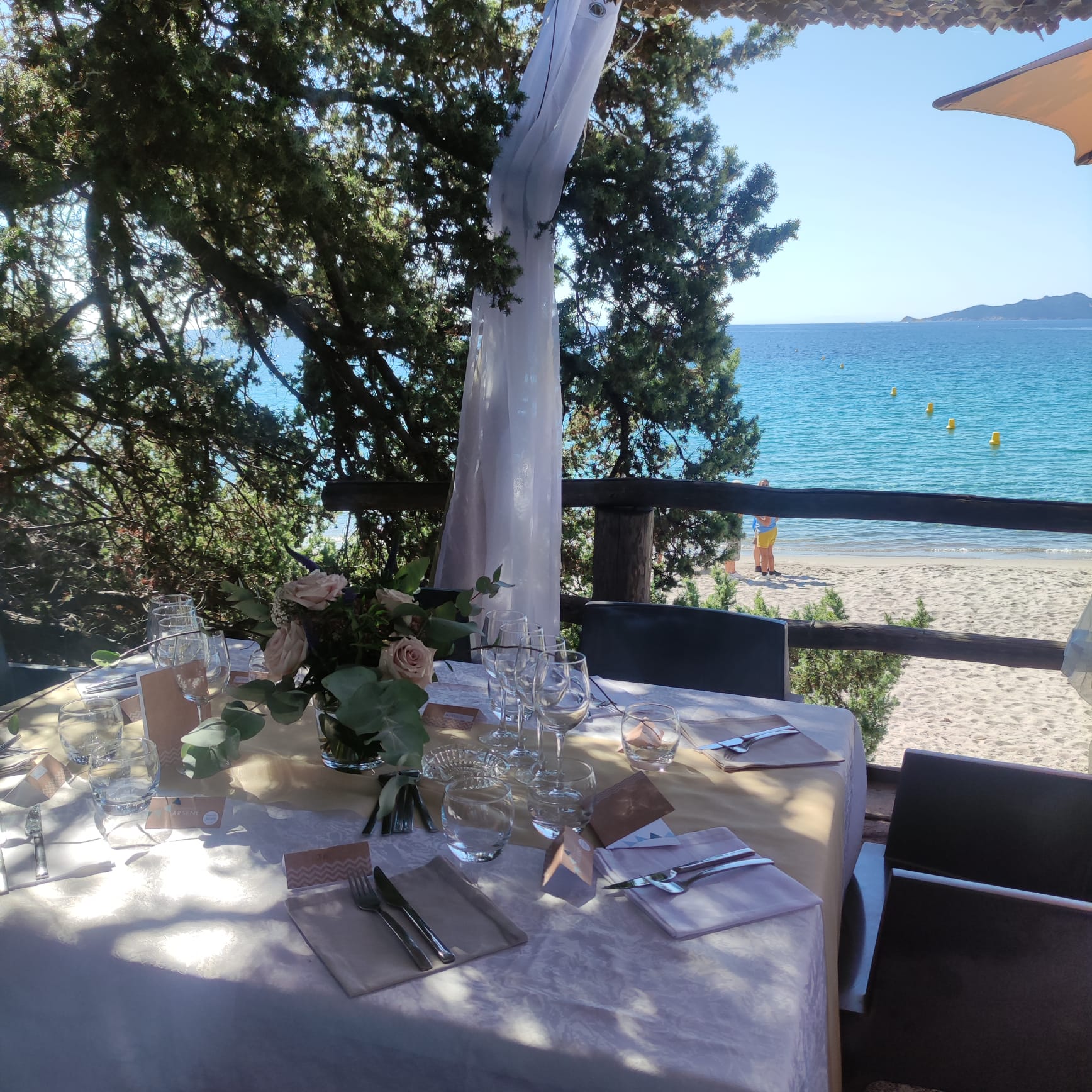 Cadre splendide les pieds dans l'eau avec une vue magnifique sur la plage de Palombaggia ! Équipe de serveurs très dynamique et accueillante, service très bien et bonne cuisine !