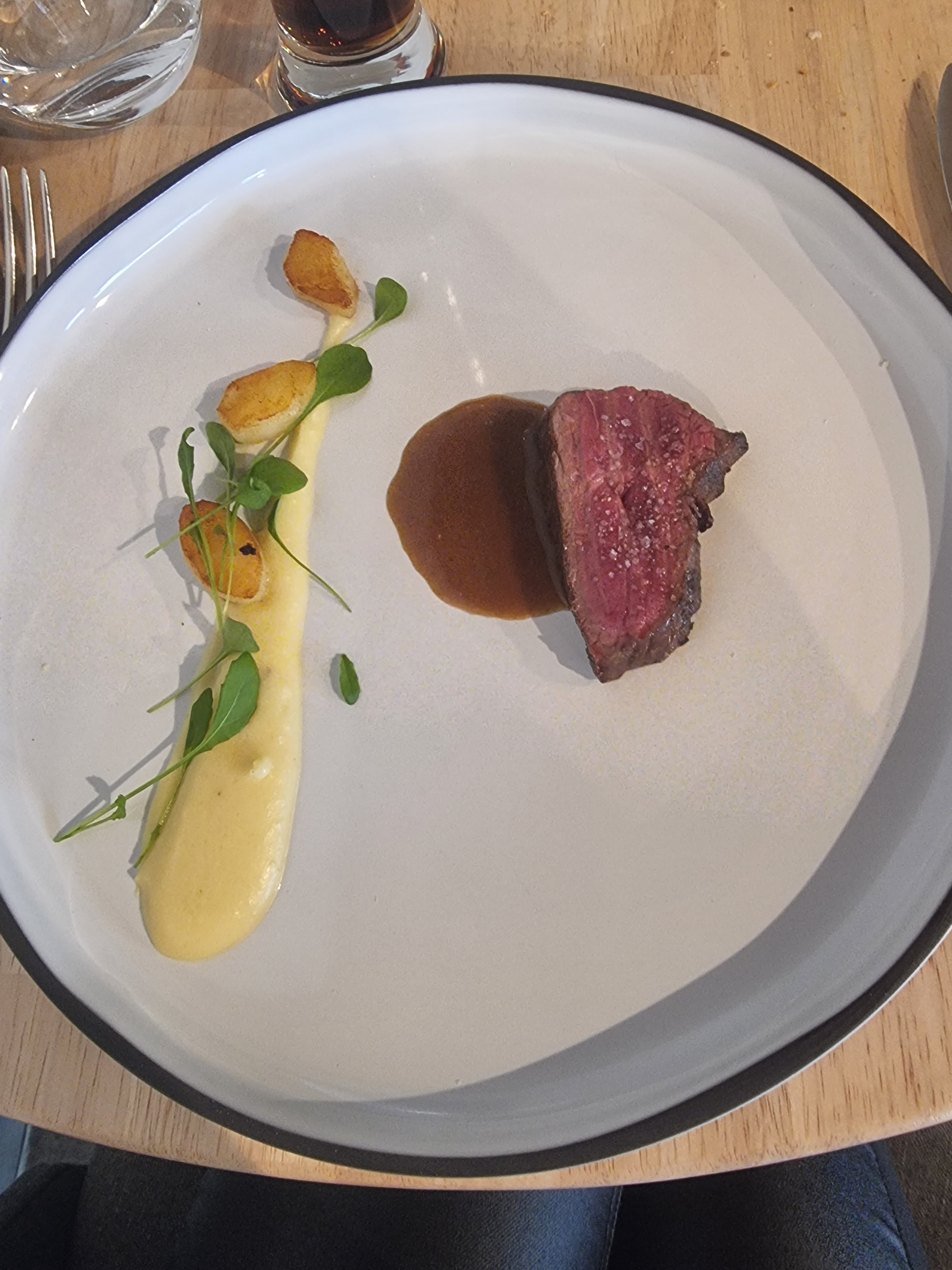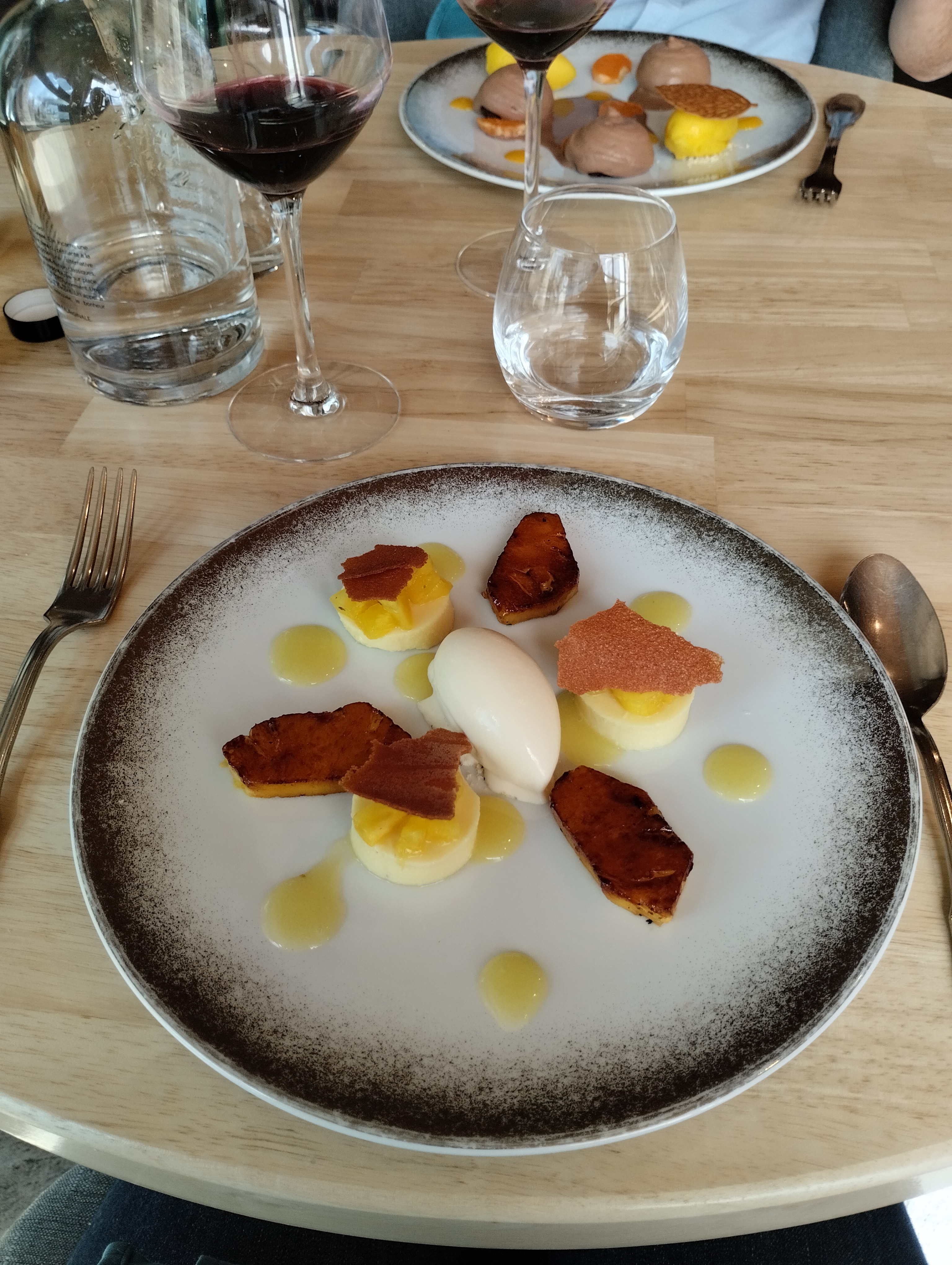 Tres belle table. Un regal pour les yeux et les papilles. De l entree au dessert un pur délice. Félicitations à ce jeune couple. On a passé un très bon moment.