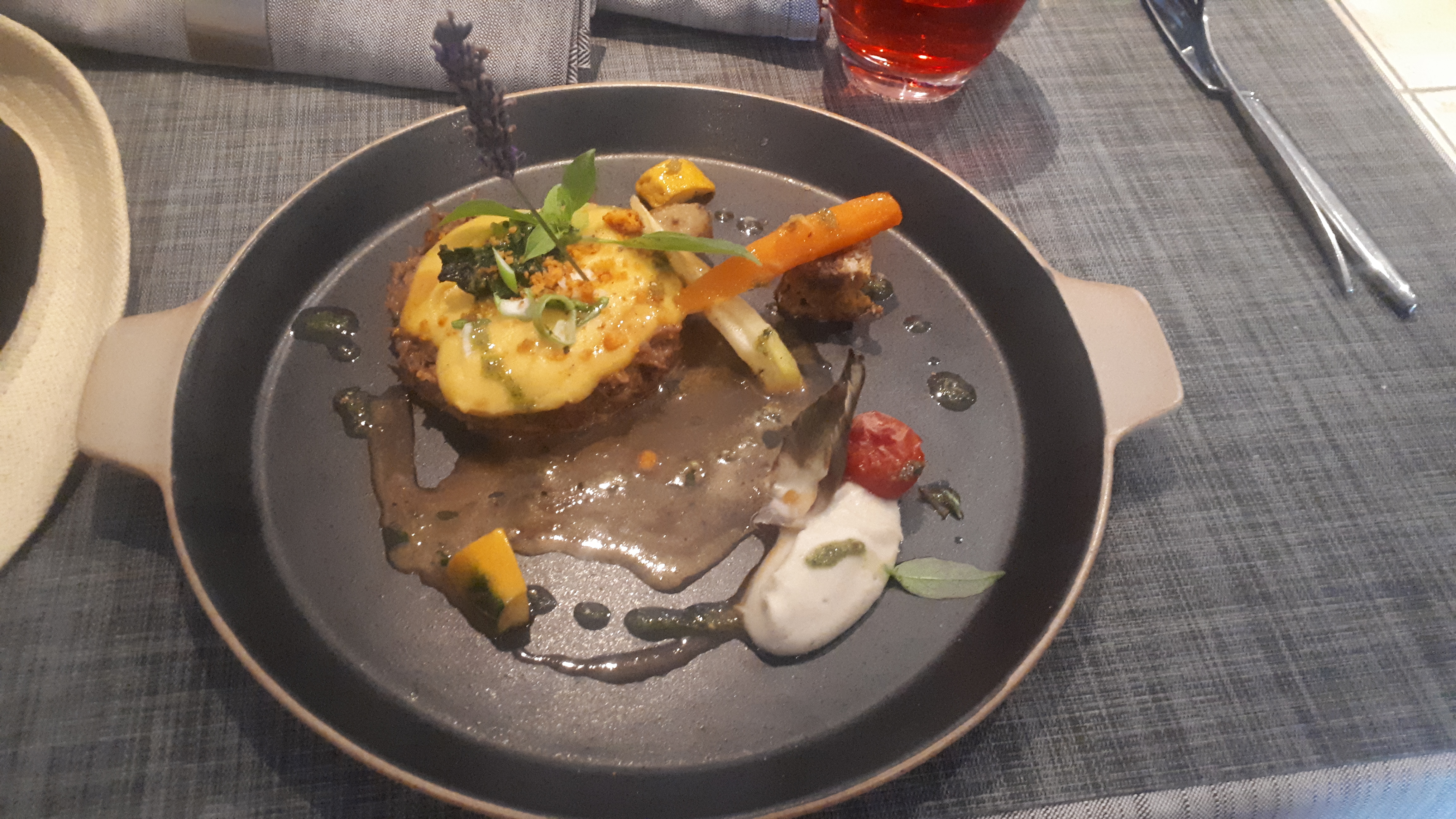 Installé sûr la terrasse donnant vu sur le lac de sainte Croix, nous nous sommes régalés avec un excellent repas, aussi beau que bon. Félicitations à toute l'équipe. 👍👏