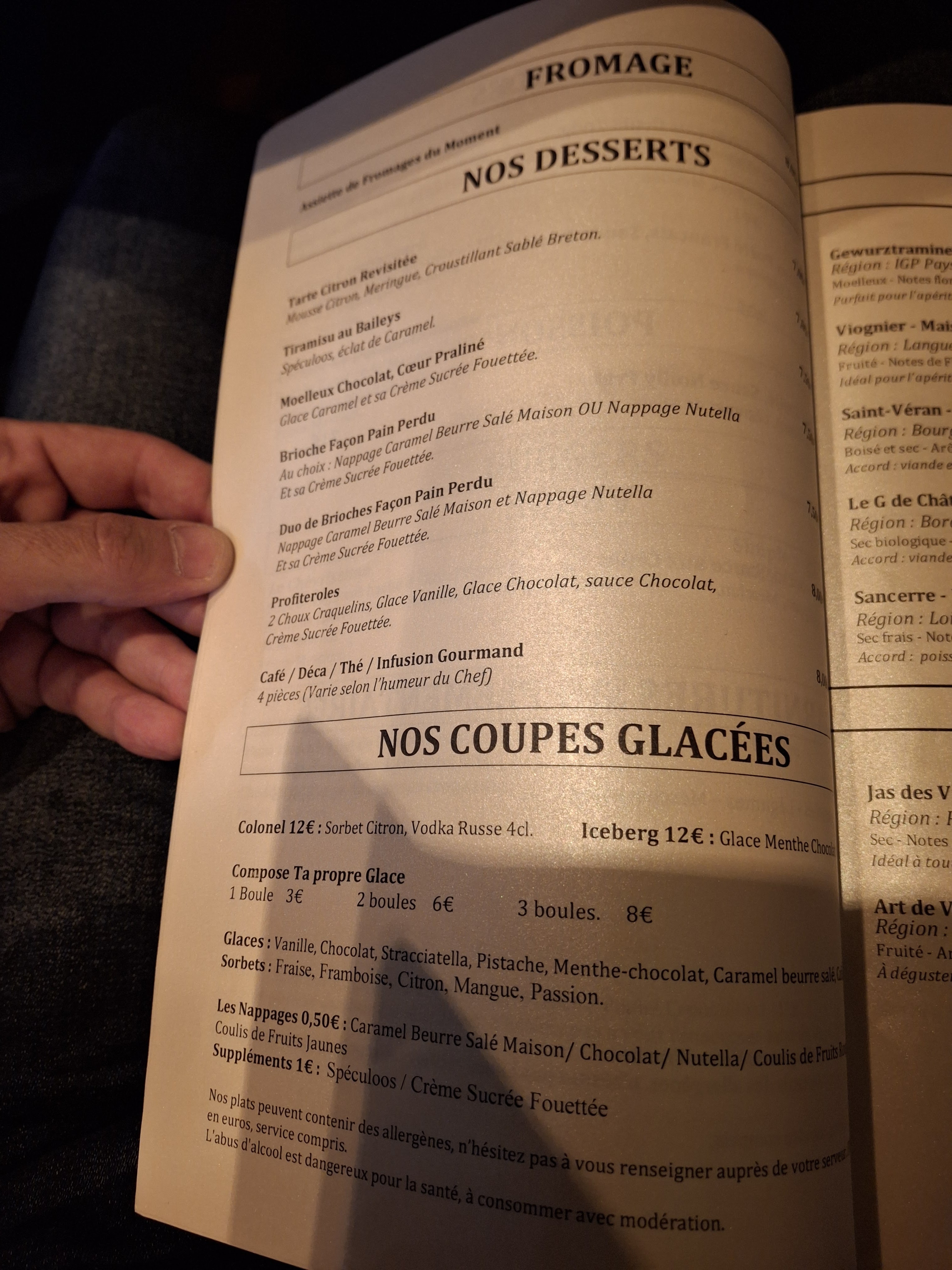 La nourriture était bonne, la serveuse très pressente, on n’a pas eu l’impression de profiter du repas. Dans les courants d’air, je me suis réveillée le lendemain avec un gros mal aux cervicales…
