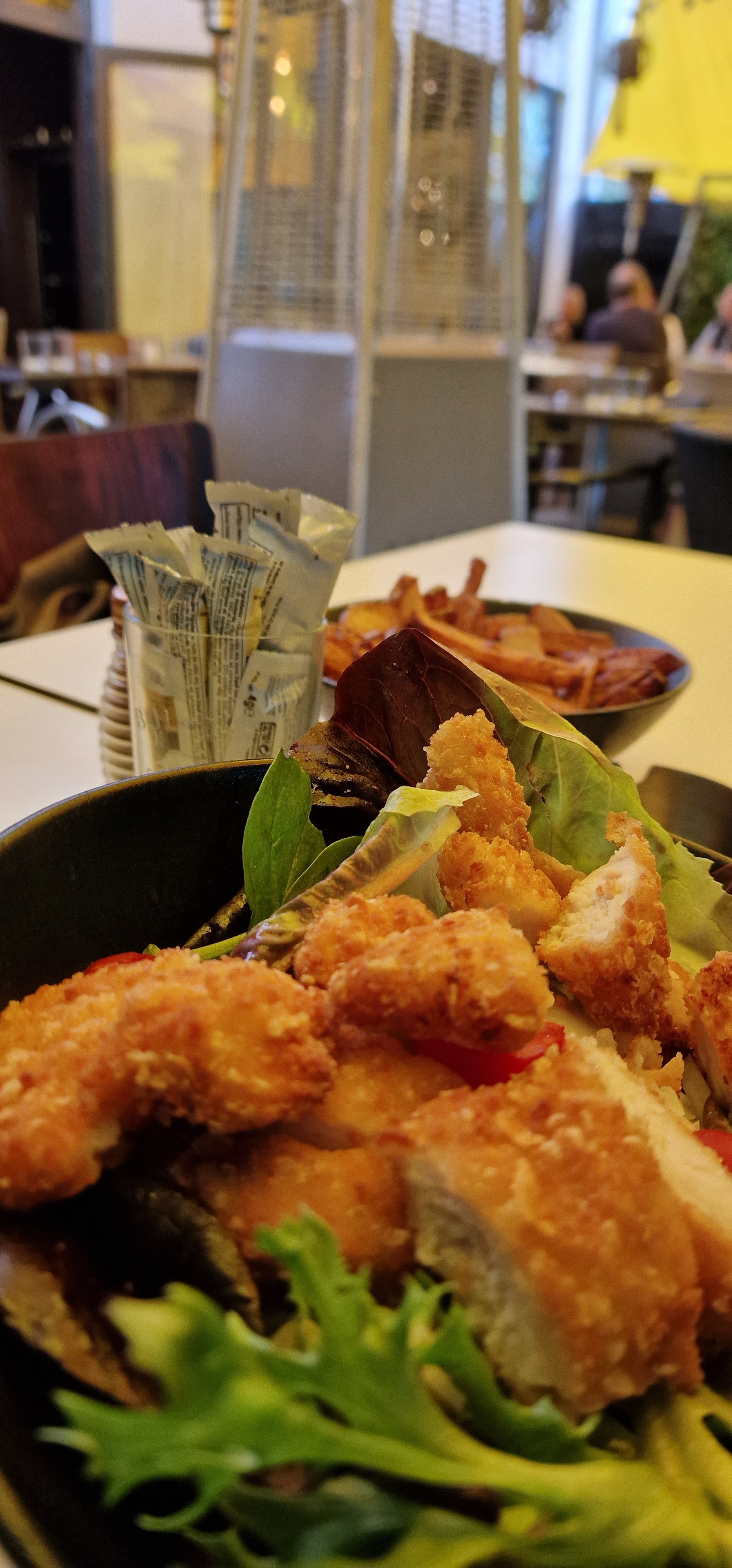 BELLE SURPRISE- C'est une belle surprise gustative, une grosse salade César avec du poulet tendre et très bien assaisonné....franchement j'ai adoré, les frites maison également...belle ambiance, cosy et le service impeccable... la pièce du boucher...à ne pas en laisser une bouchée 🙂...même le café ristretto est bon, par contre pour le café gourmand, peut mieux faire...j'ai un doute, c'est pas du fait maison et c'est dommage ...je rehausse néanmoins mon appréciation par rapport au dernier passage...ou j'avais à l'époque regretté qu'il n'y est pas de grosse salade...top!! D'octobre 2020 ce qui suit. Le plat du jour est souvent réussi, endroit sympa et dessert au rdv. J'ai vu sur 1 table voisine le double Hamburger, la taille est incroyable...avis aux amateurs, l'addition est correct. Dommage qu'il ne propose pas de grosse salade à midi.