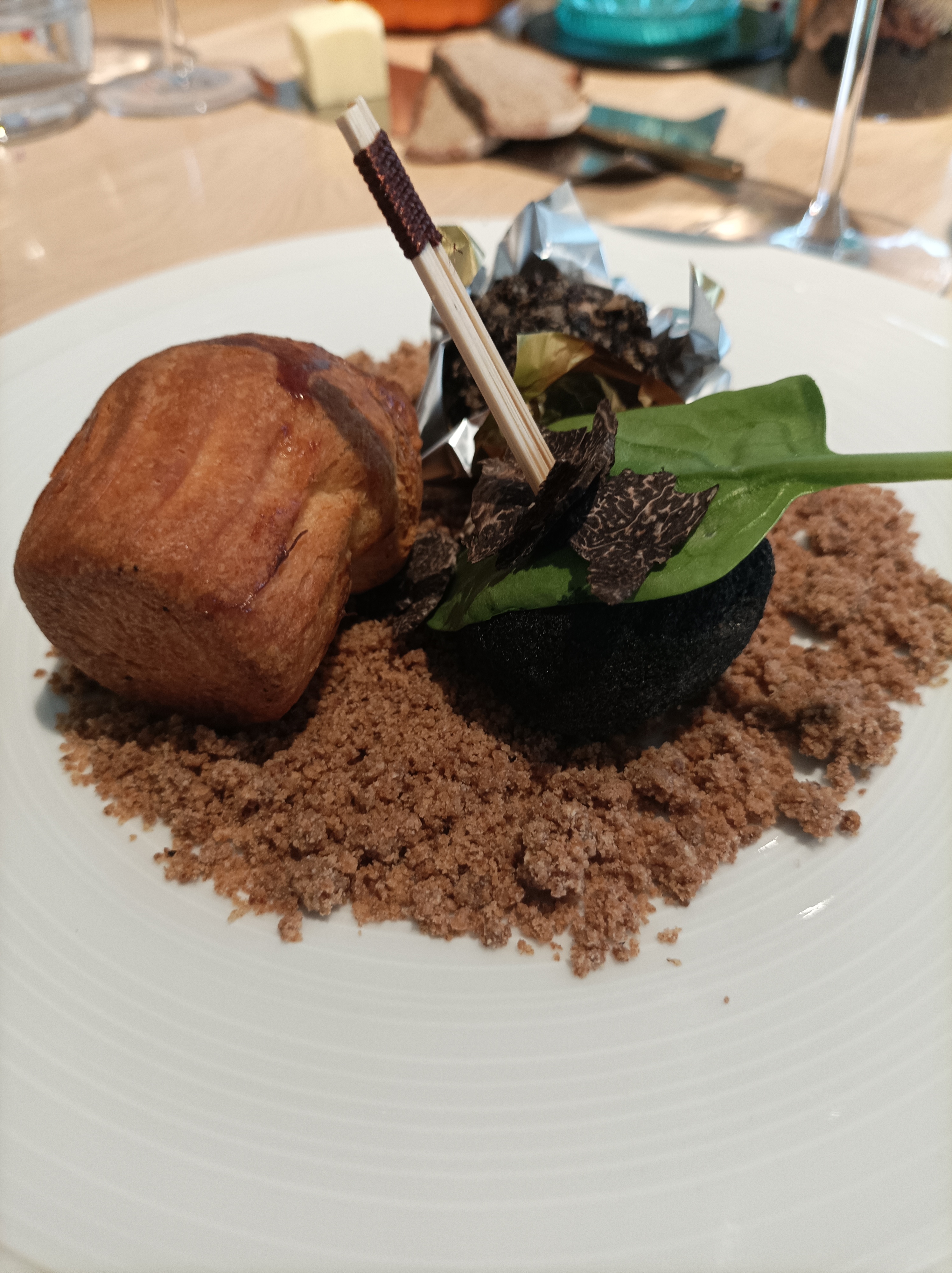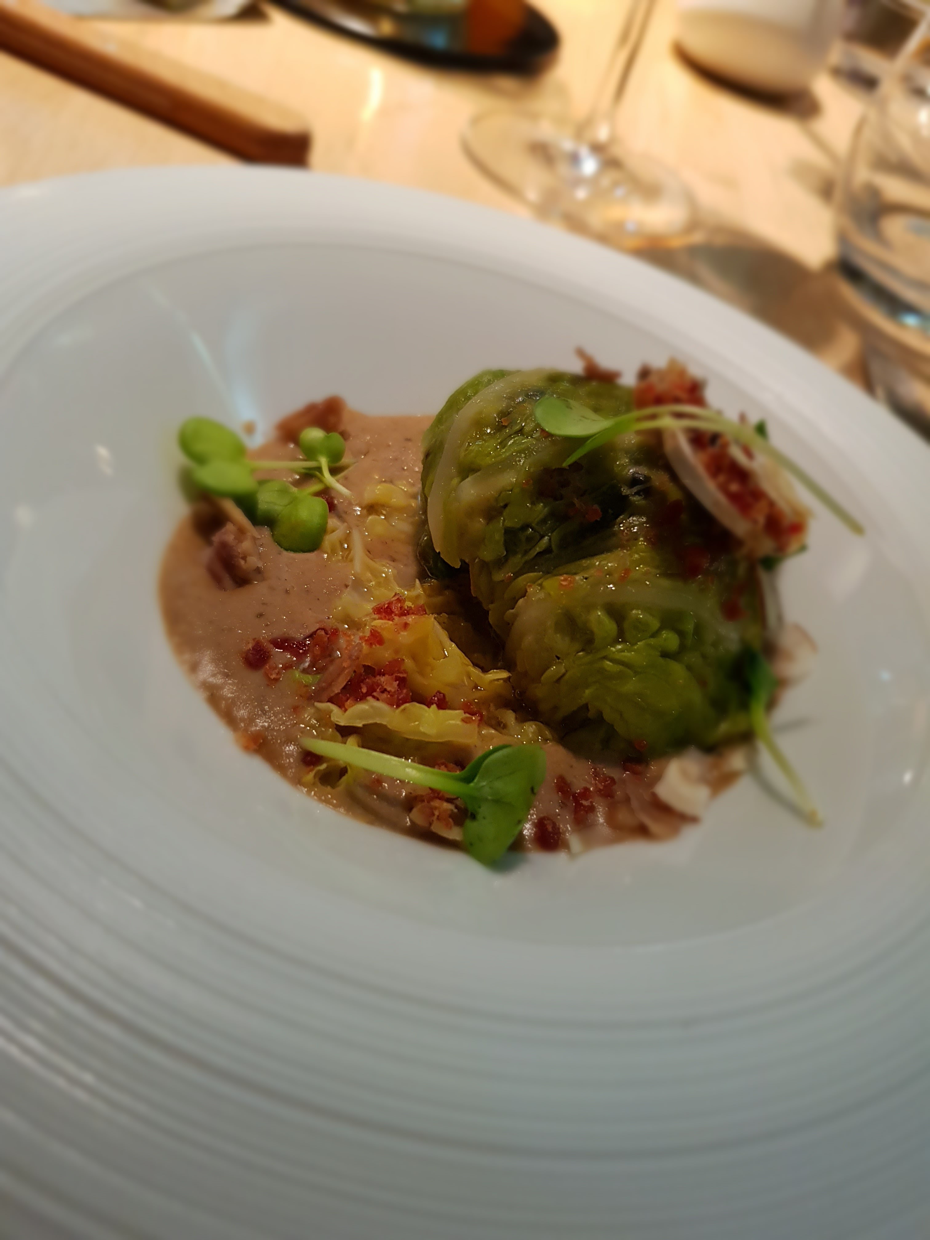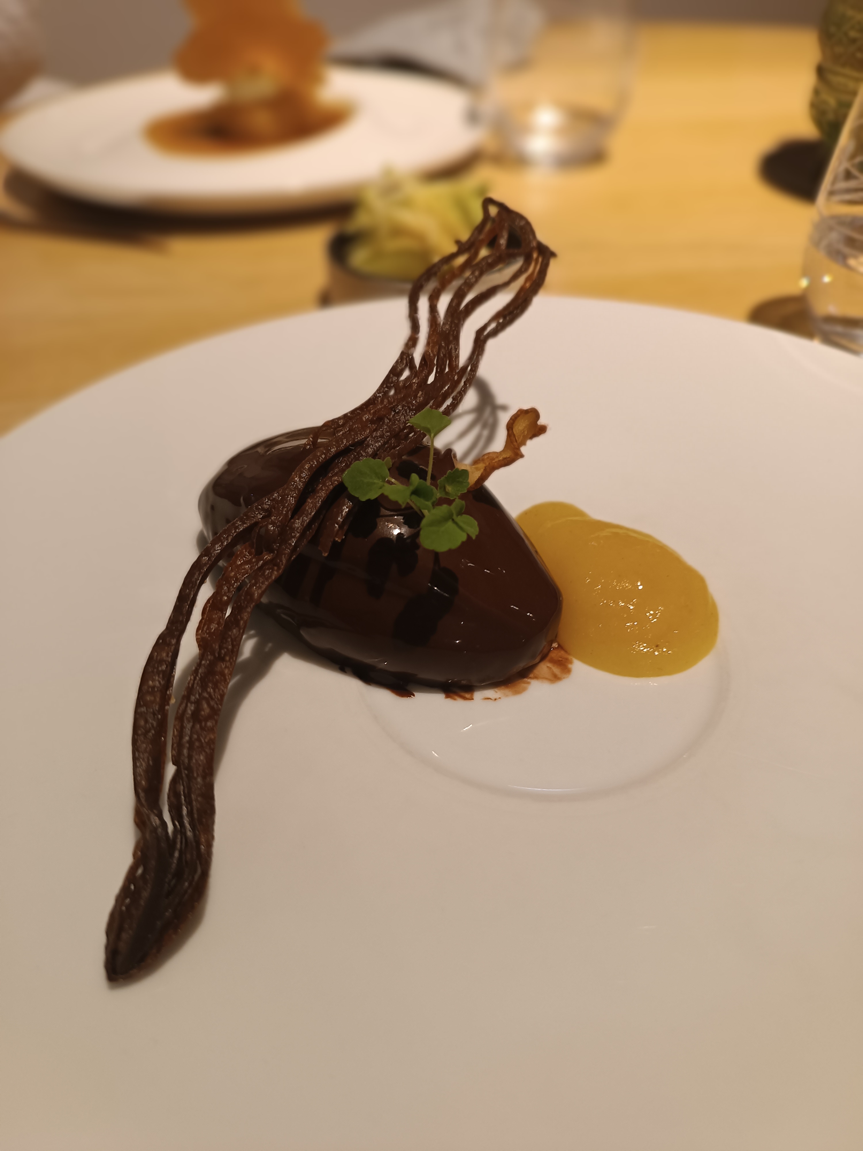 Très copieux, mais pas forcément bon ! C’est le sentiment général avec lequel nous sommes sortis de table. Beaucoup de mignardises à picorer, mais principalement sans saveur. Pour l’entrée, le plat, idem. En fait, nous avons surtout retenu le bouillon de légumes, soit une bouchée entre deux plats… Nous avons l’impression que tout est fait dans obtenir une étoile, mais le service était parfois oppressant (retirer le verre sans demander si nous l’avions terminé, par exemple). Je ne pense pas revenir. Misez sur des saveurs plus simples mais mieux représentées, sera toujours plus avantageux que des titres à rallonges pour des plats décevants.