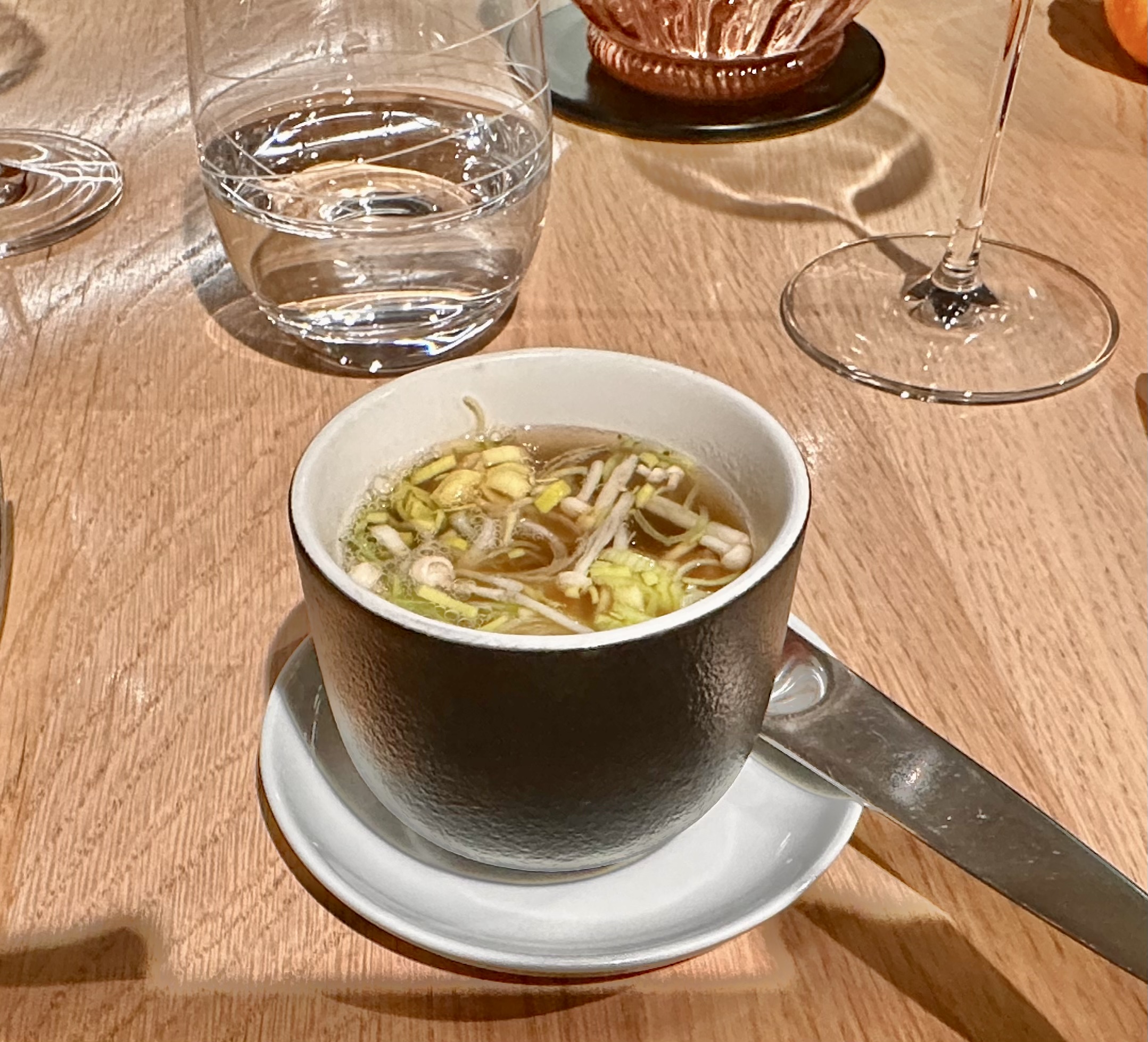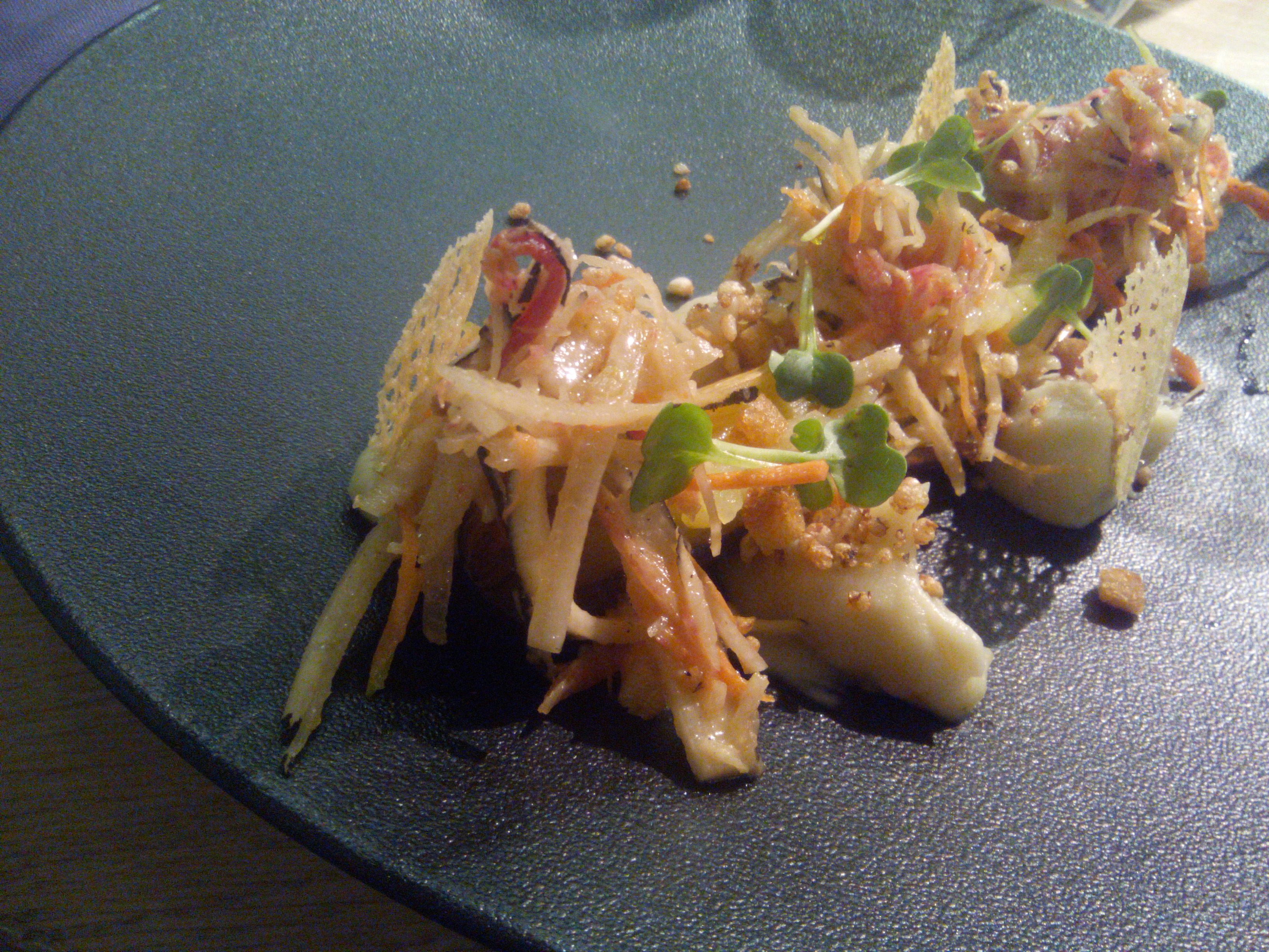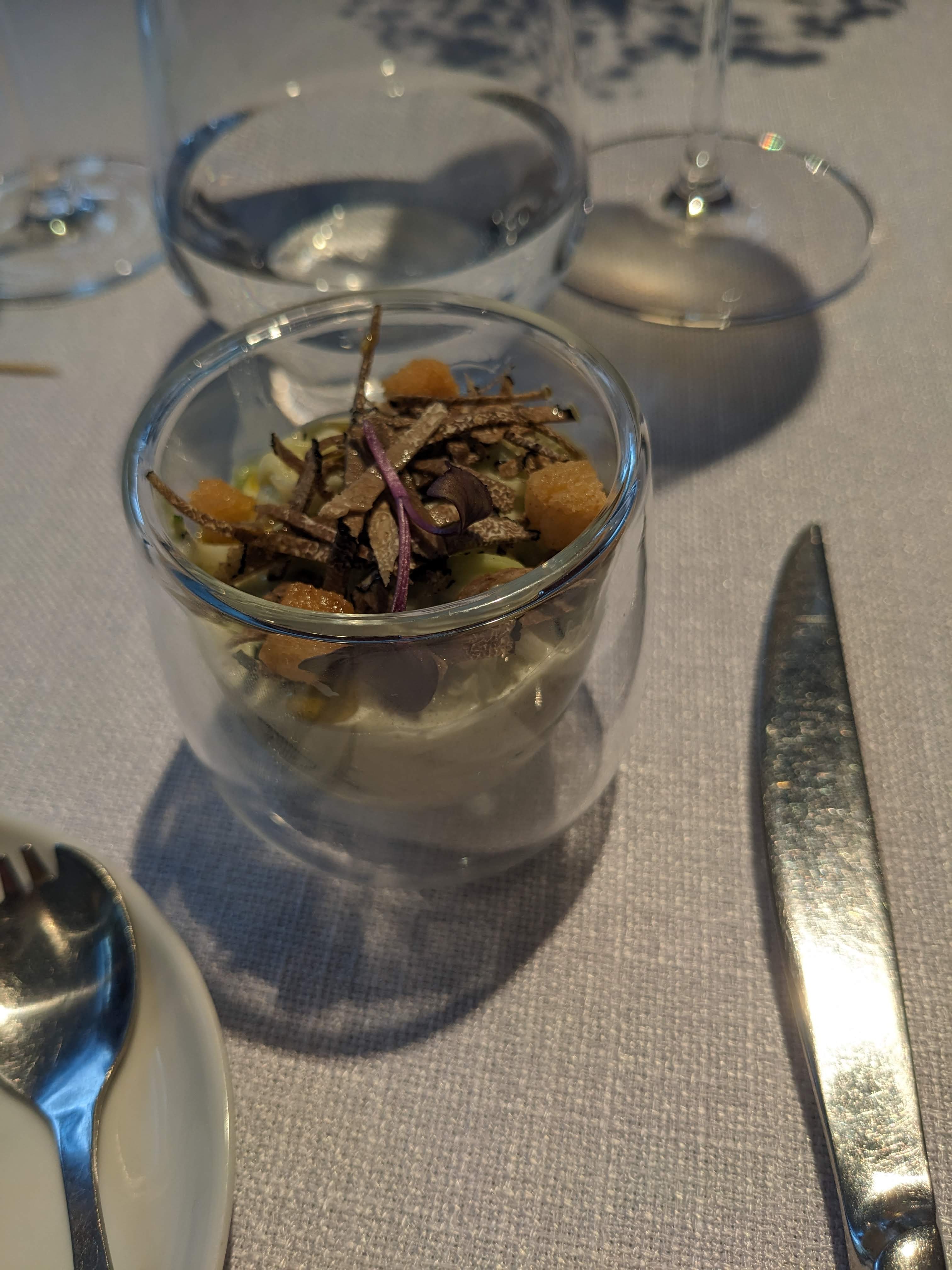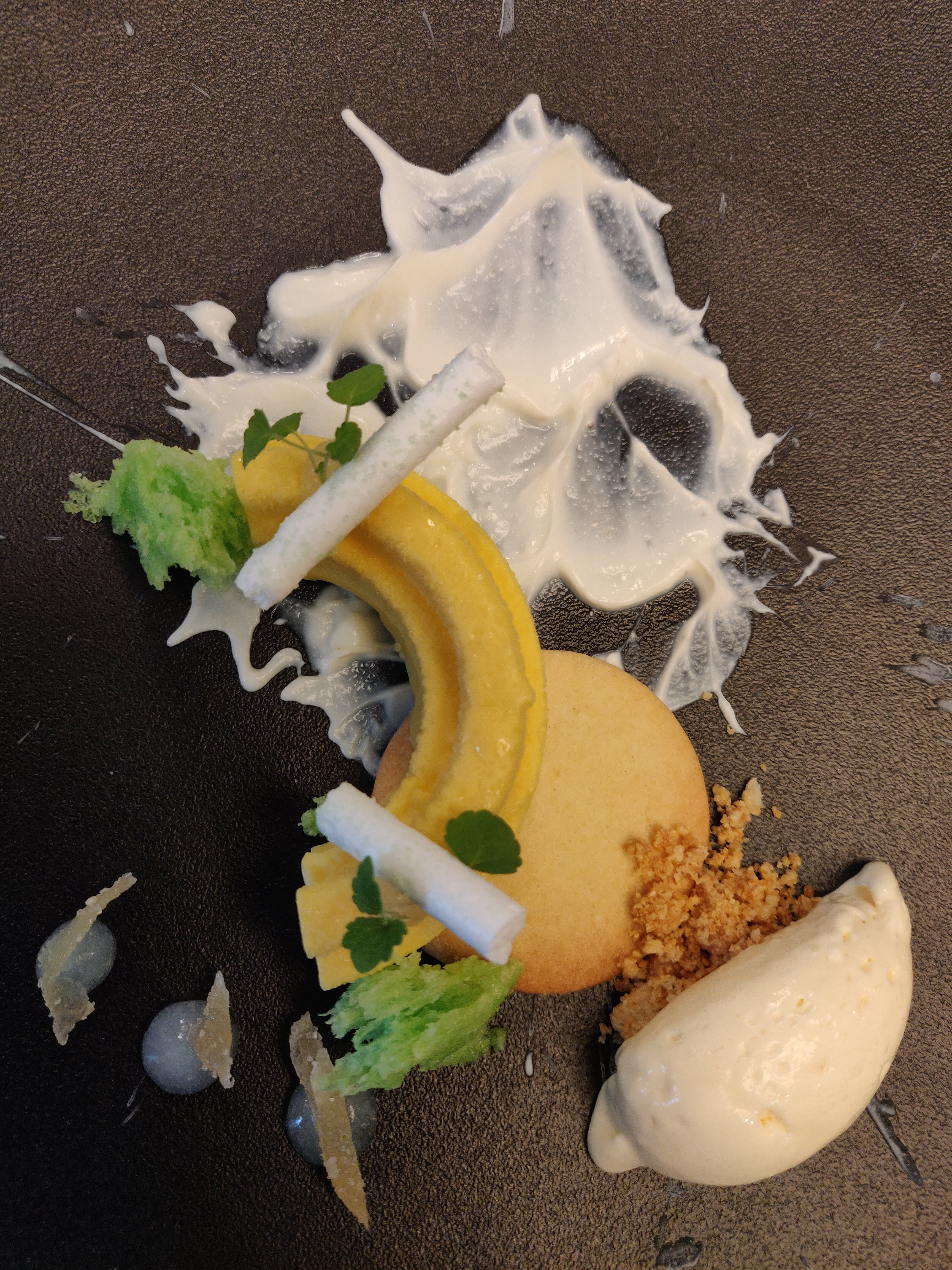 Très copieux, mais pas forcément bon ! C’est le sentiment général avec lequel nous sommes sortis de table. Beaucoup de mignardises à picorer, mais principalement sans saveur. Pour l’entrée, le plat, idem. En fait, nous avons surtout retenu le bouillon de légumes, soit une bouchée entre deux plats… Nous avons l’impression que tout est fait dans obtenir une étoile, mais le service était parfois oppressant (retirer le verre sans demander si nous l’avions terminé, par exemple). Je ne pense pas revenir. Misez sur des saveurs plus simples mais mieux représentées, sera toujours plus avantageux que des titres à rallonges pour des plats décevants.