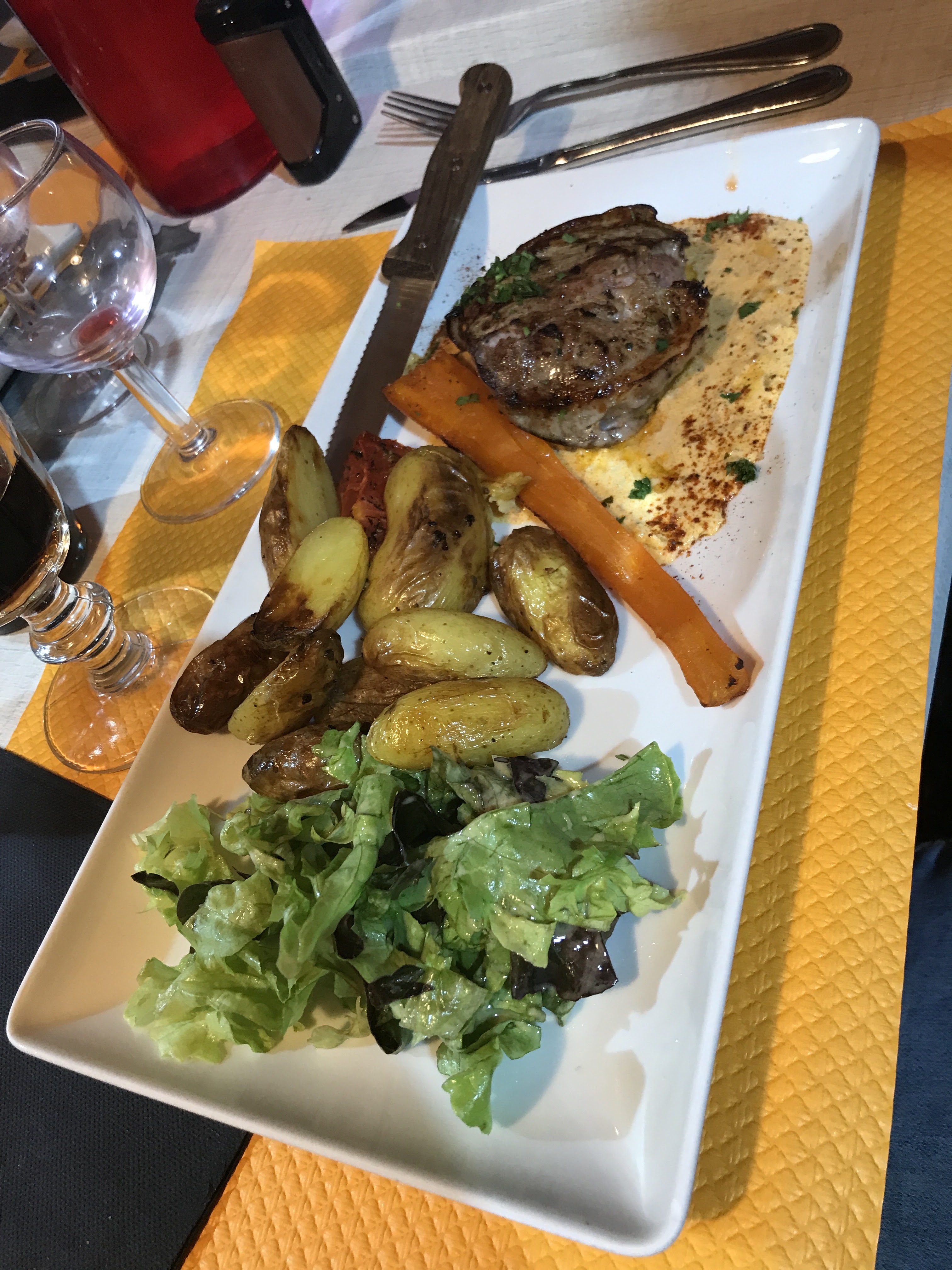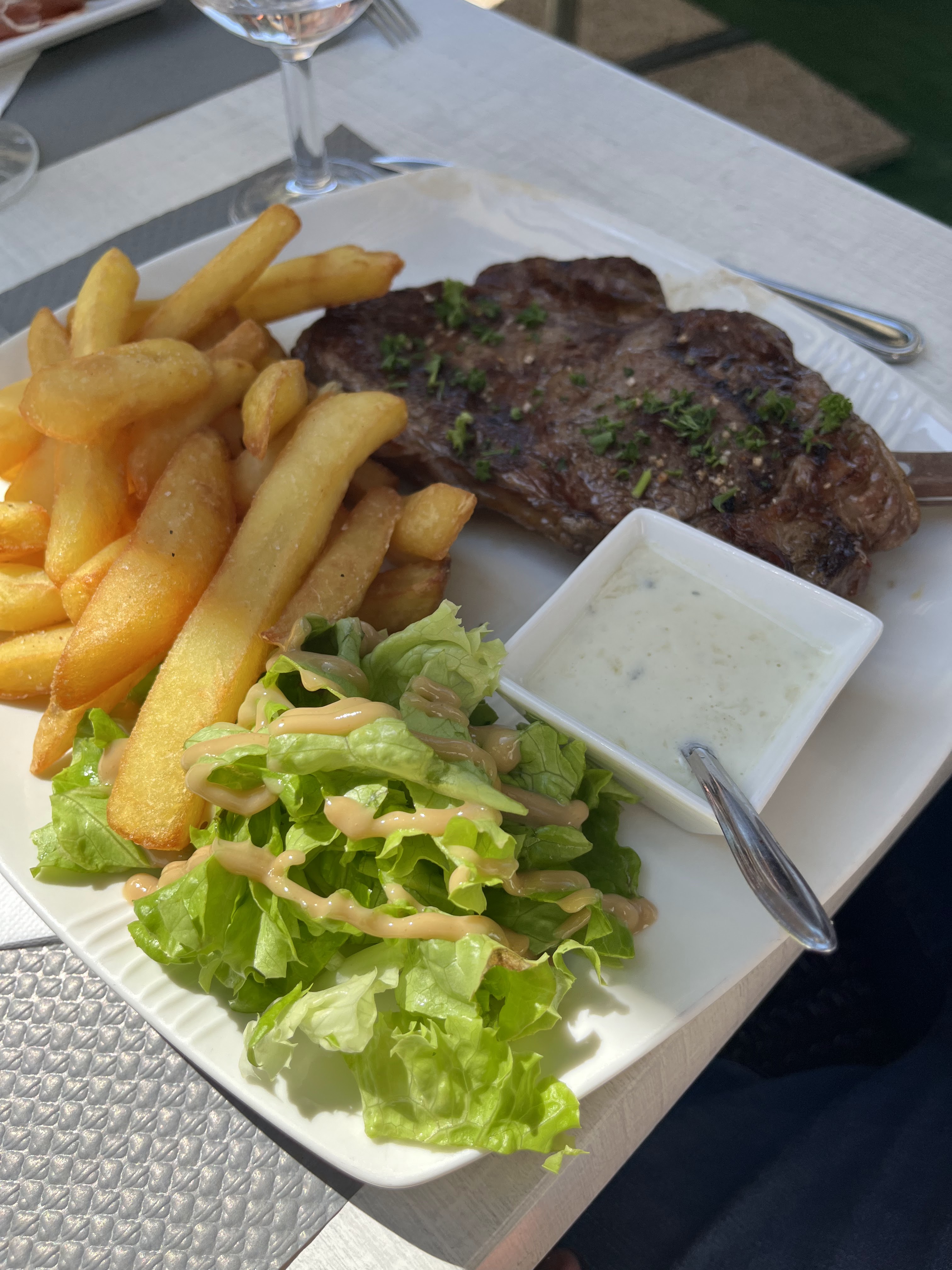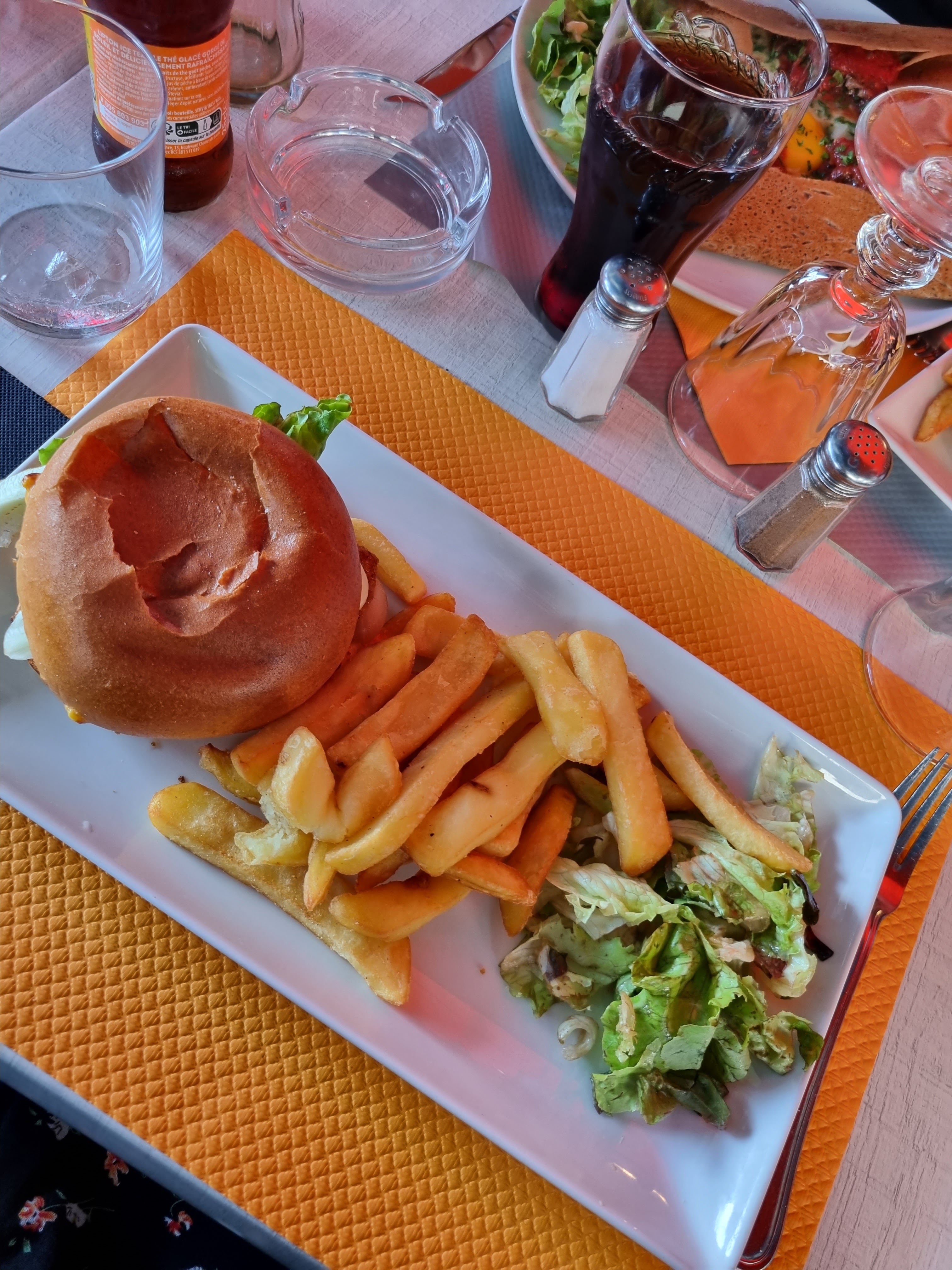 Une belle découverte ! En plein centre, petit restaurant et petite terrasse qui nous accueille avec plaisir. Installés, cartes en main, commande prise … nous n’attendons pas. Ce sera une galette salée Hawaï, copieuse et délicieuse (allez j’aurais peut être apprécié que les poivrons et le poulet aient plus de saveur), une entrecôte frite (parfaite) et une assiette de charcuterie avec salade et le beurre qu’on apprécie d’avoir sans le demander. Mais vous trouverez des burgers, des grosses salades, du poisson … Une patronne accueillante et souriante et des serveurs agréables. Je conseille cette adresse !