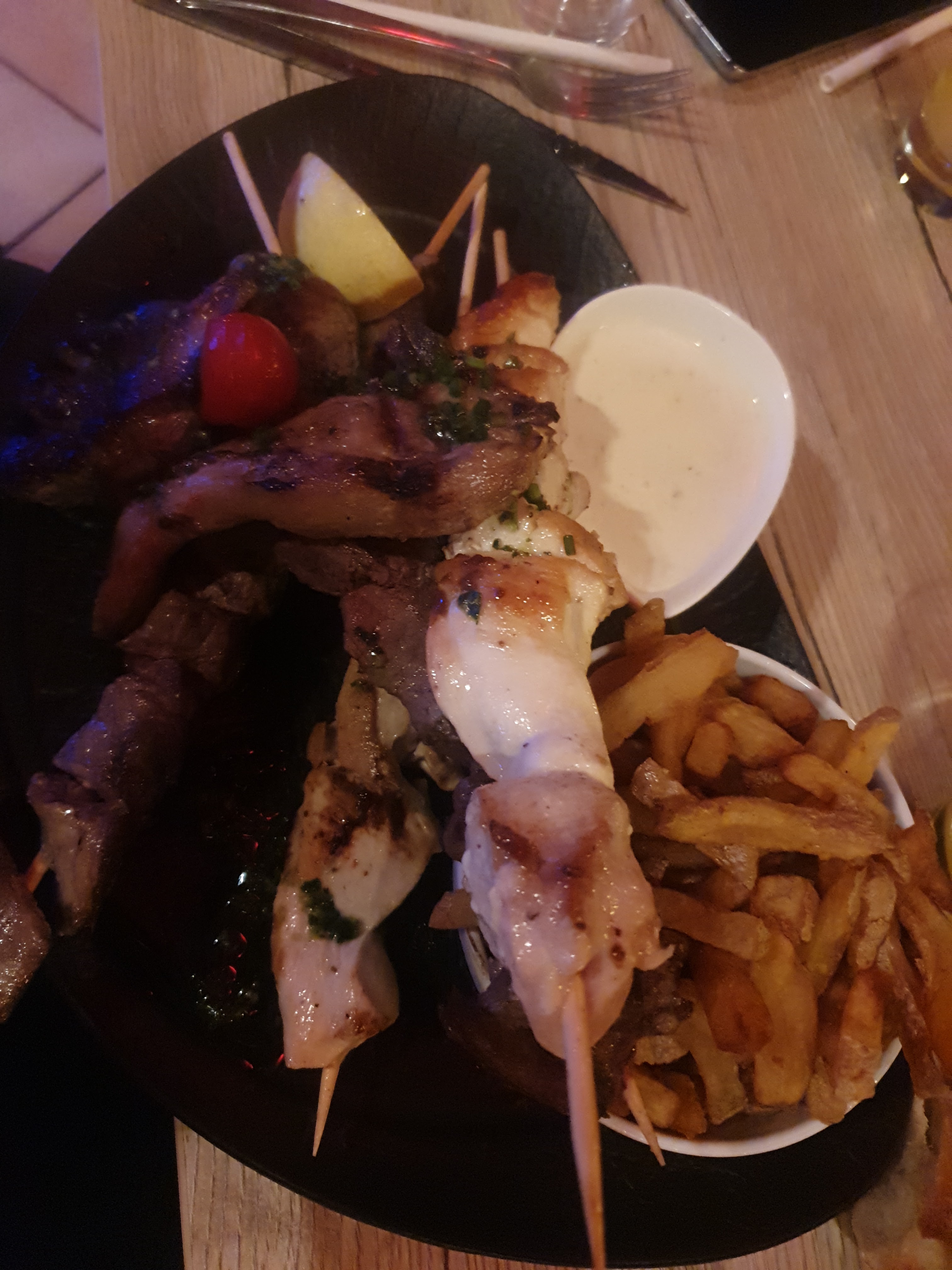 On a mangé pour un dîner. La décoration et l’ambiance est au top. Le service également c’était rapide et le serveur très sympa. En entrée on a pris chèvre-miel très bon ! En revanche le plat principal si vous prenez souris d’agneau c’est bon mais je ne vous conseille pas le burger car il n’est vraiment pas exceptionnel … le steak n’a pas de goût. On nous a proposé des desserts de la marque Perlette et c’était pas frais et pas délicieux non plus.