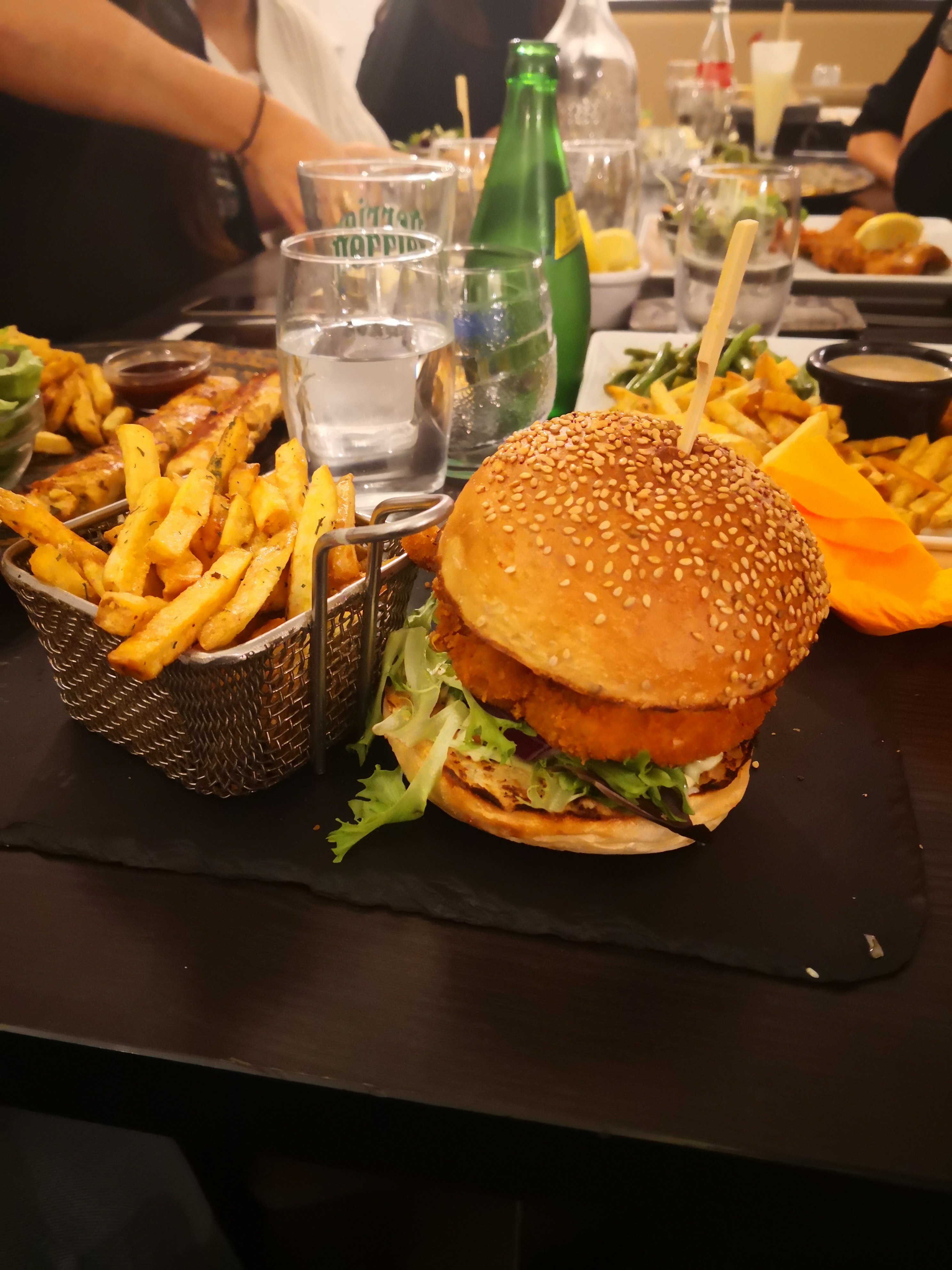Poisson congelé, burger pas trop mauvais. Service long à mourir, 45 min pour une entrée, le pain n’arrivera jamais… Bref de l’argent gaspillé…