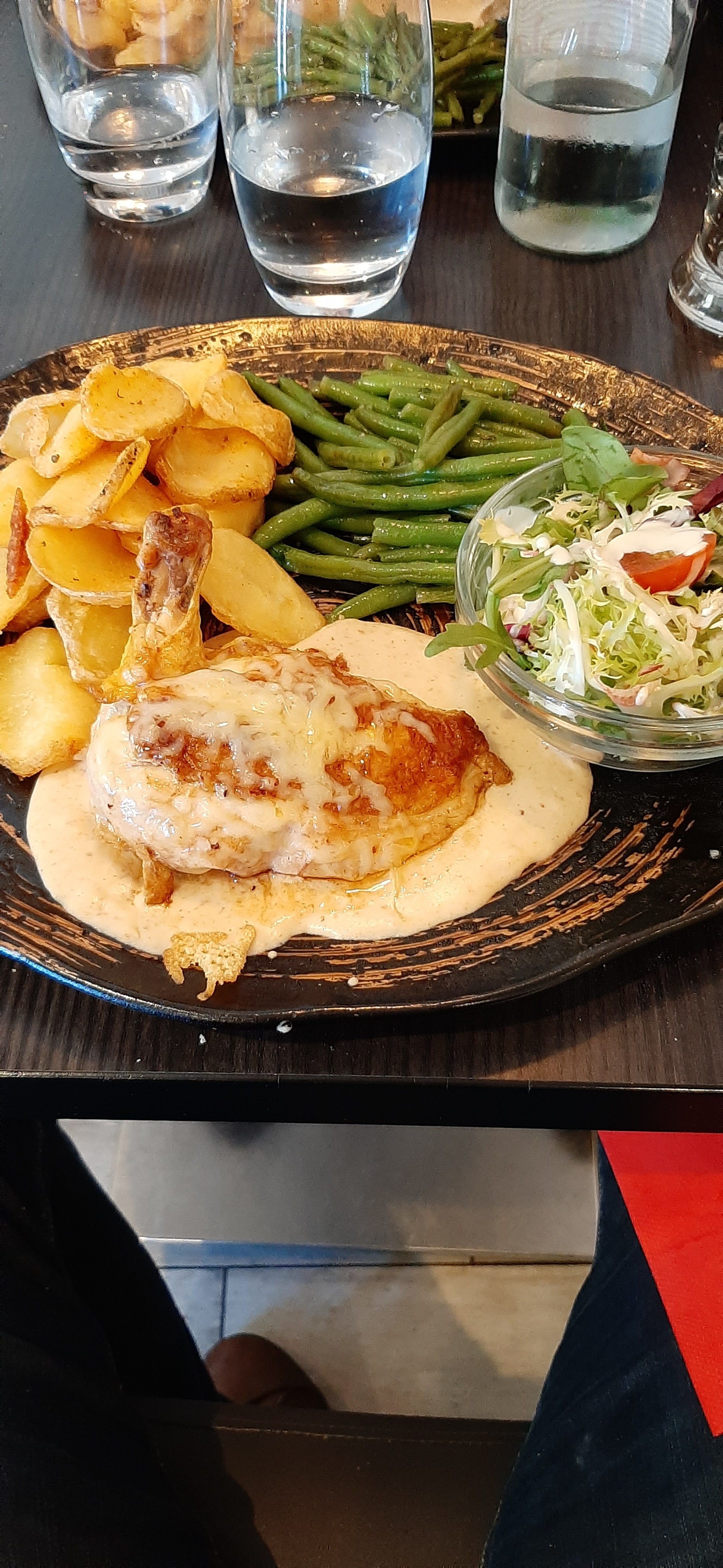 Très très bonne cuisine (poulet onctueux sauce parmesan excellente) Très bon dessert Nous nous sommes régalé pour un prix correct on recommande vivement