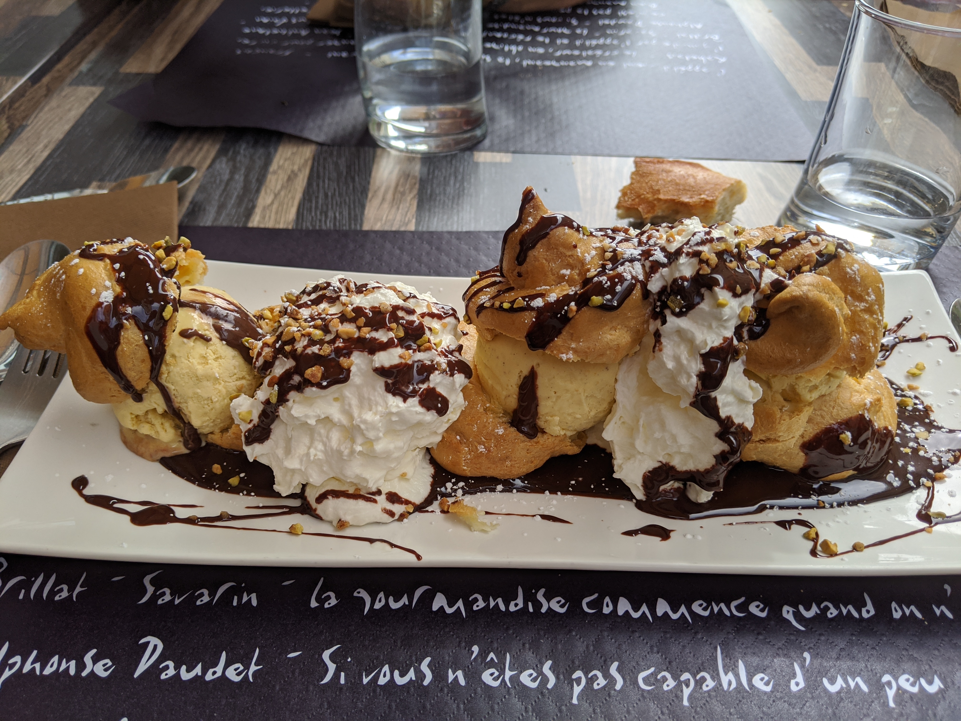 Service lent malgré 14 couverts seulement. Menu à 27 € (hors boisson) : entrée une courte tartine jambon-brie de Meaux, plat : salade pas fraîche, profiterolles : 2 petits choux (où sont les 3 gros choux de la Boucherie ?). Déjà mangé bien mieux pour moins cher ailleurs !!!