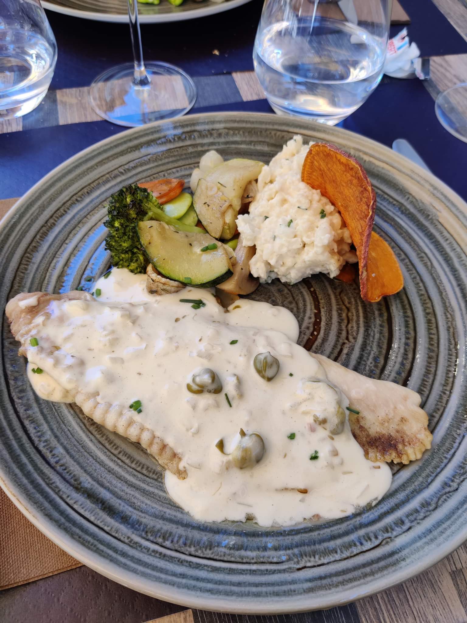 Les plats étaient très bons (risotto végétarien et poisson du jour), le cadre est agréable, et le service très sympathique.