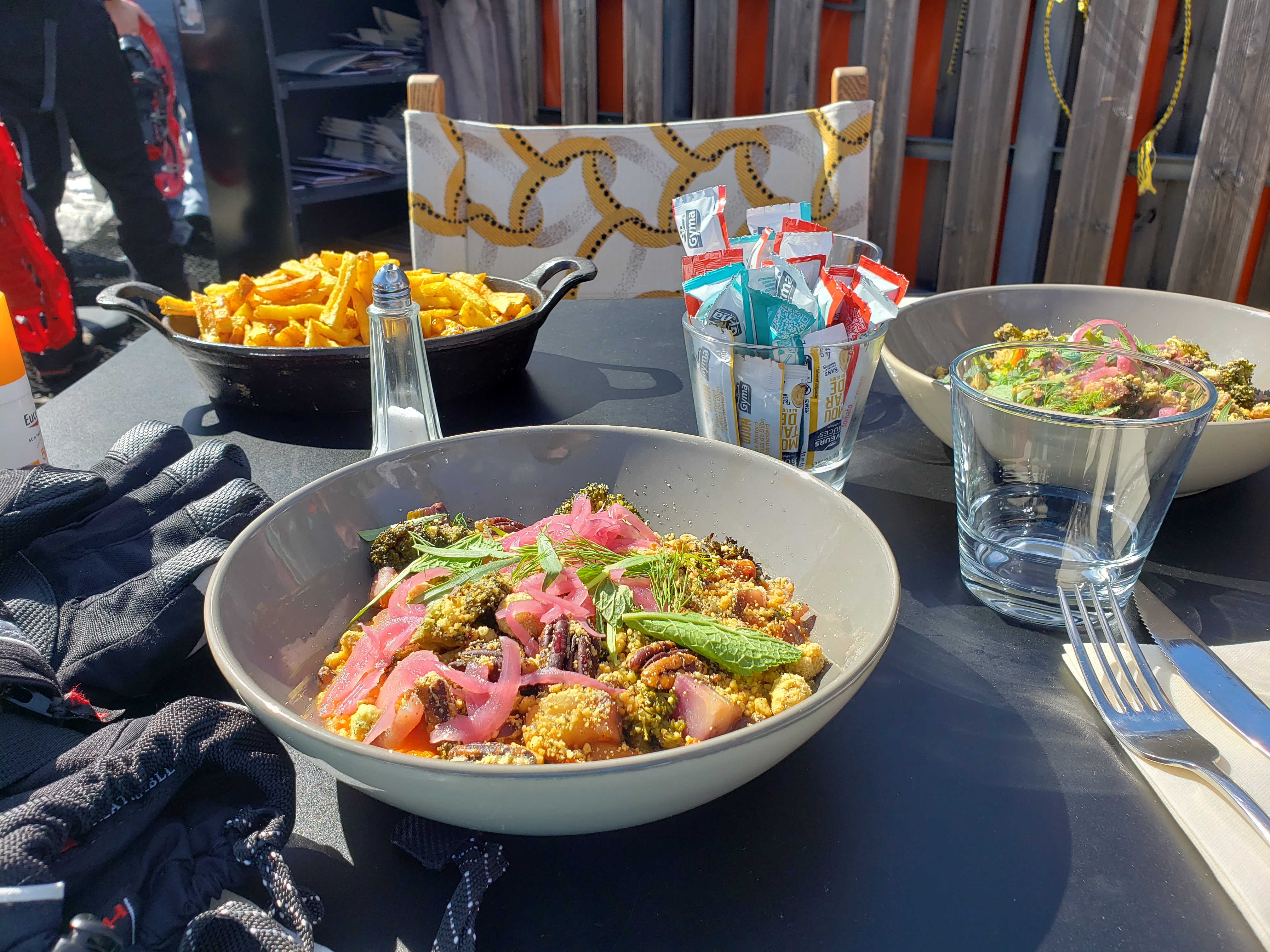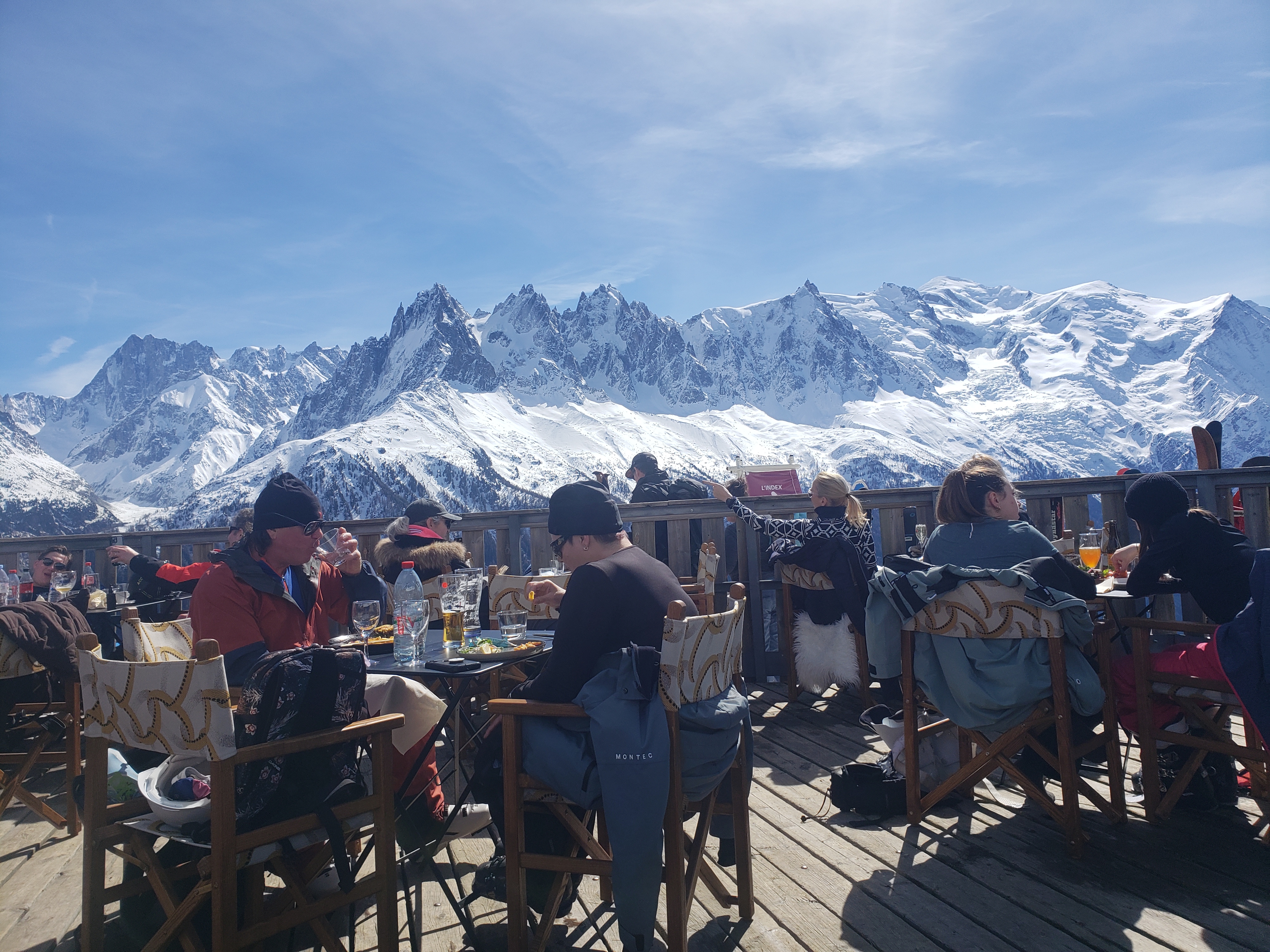 Terrasse évidemment bienvenue après une matinée de ski. Les places pour ce restaurant sont chères. L'accueil est bon, le repas est correct.