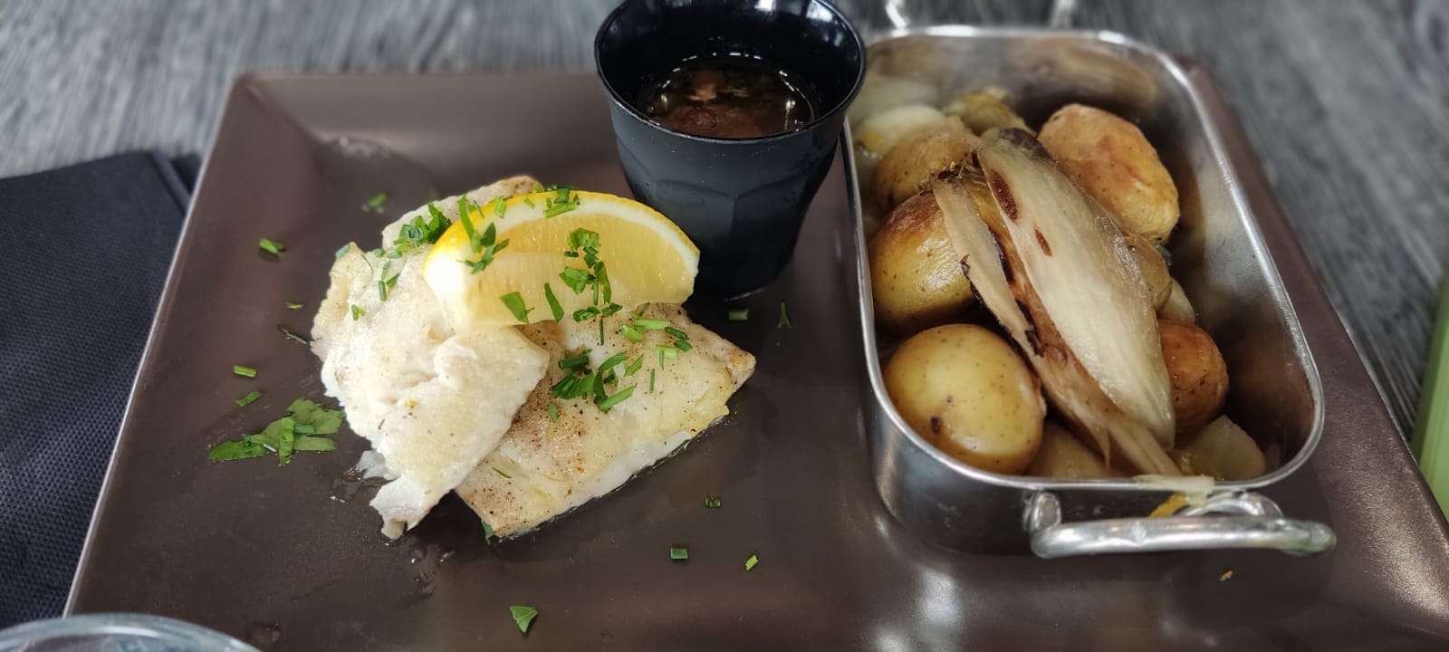 Super bon, velouté de choux fleur excellent et le saumon très bien cuit. C'est la deuxième fois que je viens et c'est toujours aussi délicieux.La salle est très lumineuse et spacieuse endroit agréable. Bravo à la cuisine, la serveuse est très sympa. Je reviendrai.