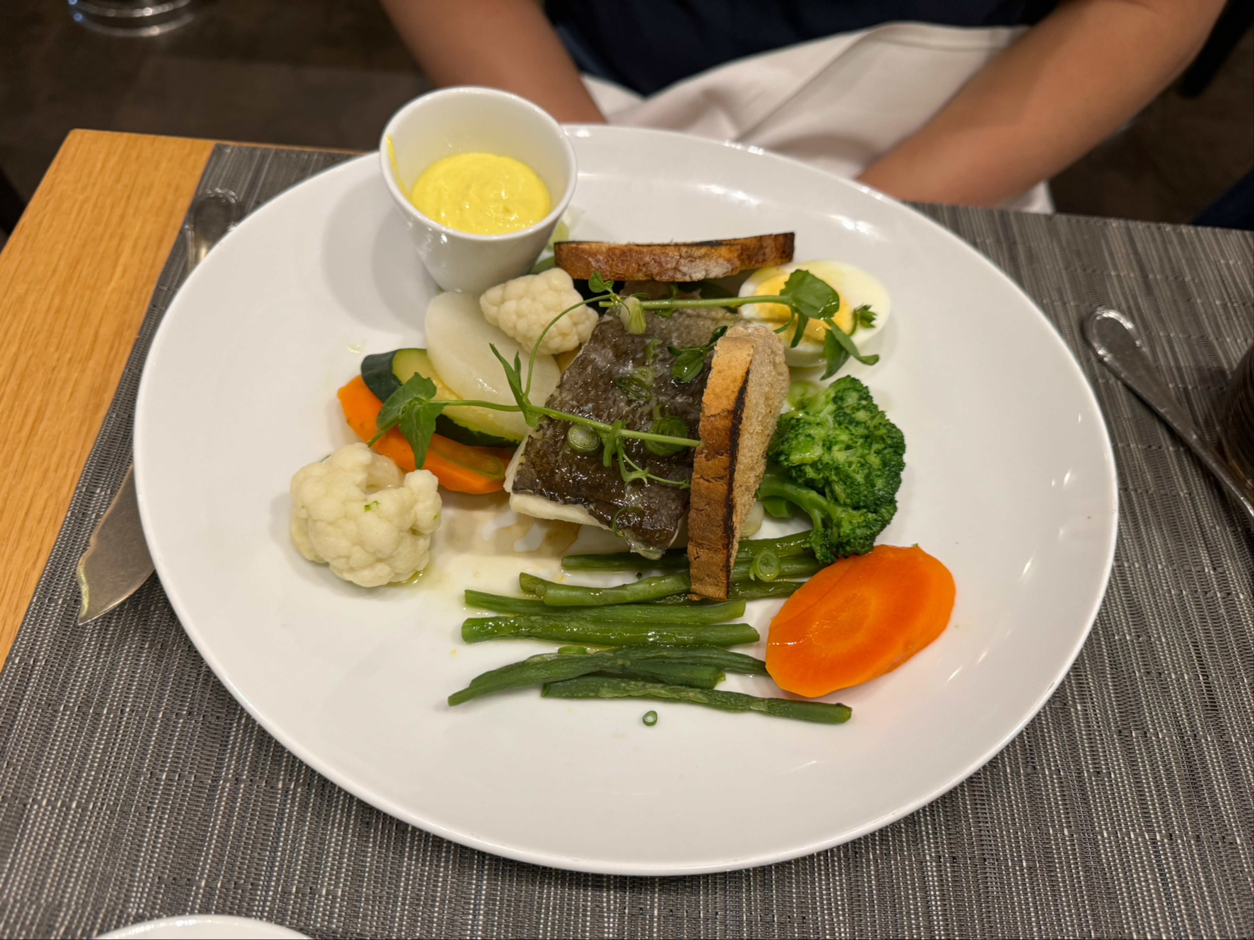 Accueil charmant. Repas très convenable L'aïoli manquait un peu d'ail, pour mon goût. En dessert, le soufflé au grand marnier était époustouflant !! Un vrai délice 🤗