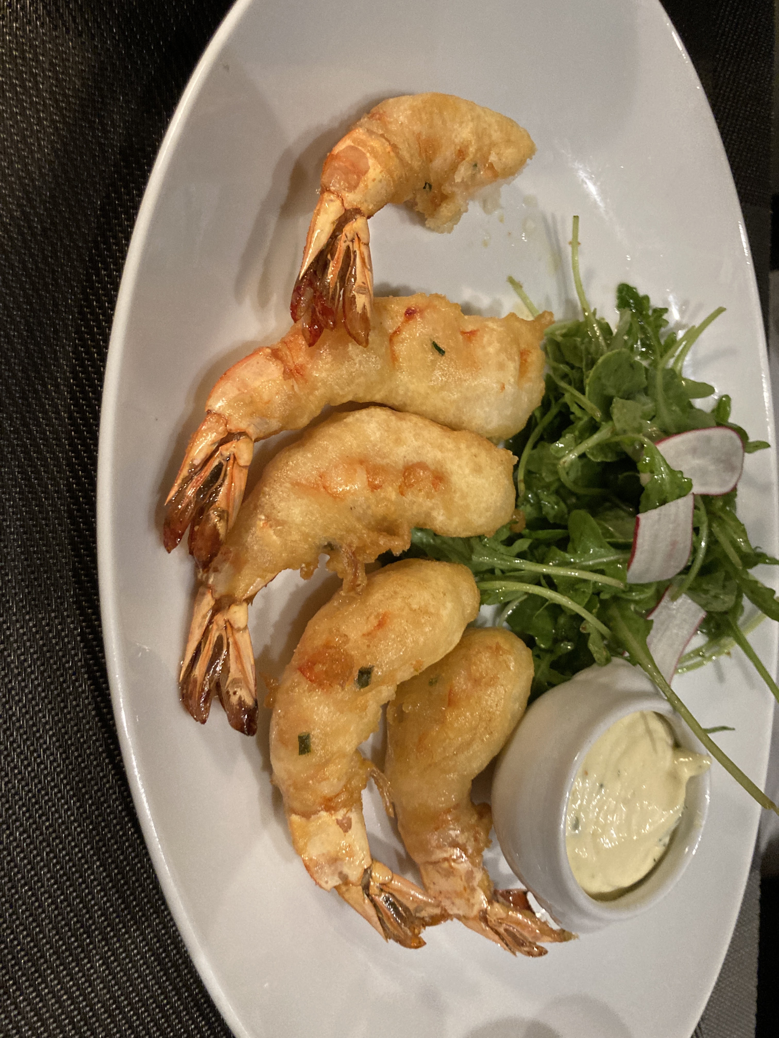 Nous sommes arrivés à 20h15 sans réservation. Le lieu etait calme avec une dizaine de convives. Nous avons été bien accueillis avec nos deux toutous. Nous avons pris le menu à 46€. Crevettes en tempura et tartar de thon avec guacamole suivi de loup sur plancha et de Crevettes curry et riz. En dessert le soufflé au grand Marnier (fameux) et le croquant de chocolat. Le tout arrosé de petit chablis. L'établissement ne pousse pas à la consummation de boissons ( vins) ce qui est appreciable. L'ensemble de bonne qualité et préparé par le chef sur place. Très bon rapport qualité/prix.