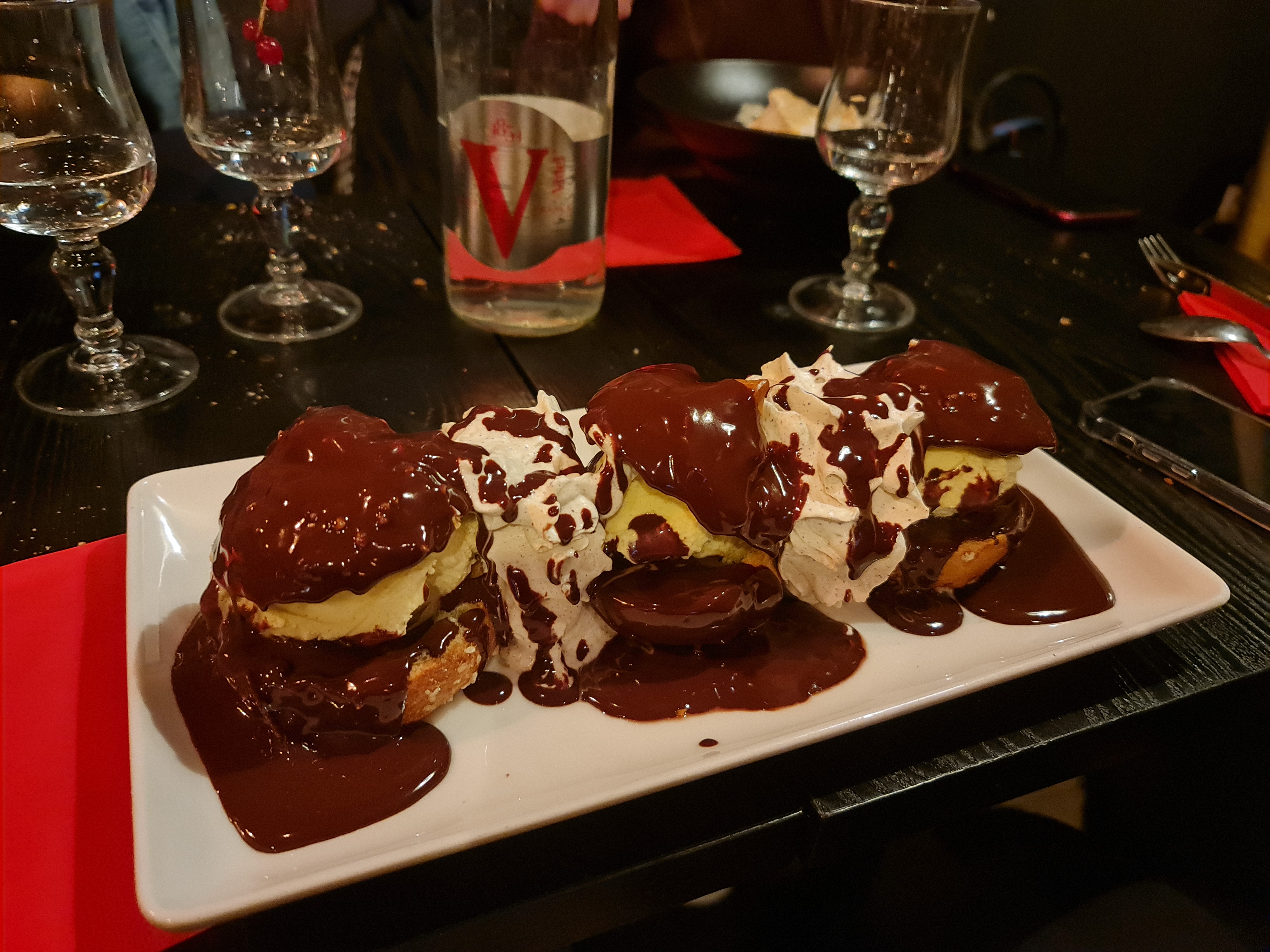 J’y suis venu car on m’avait parlé des profiteroles, et la réputation de ce dessert est réelle. Les choux sont croquants, la glace et le chocolat fondu un délice. Hors mis ça, on a passé un super moment, le personnel est agréable et attentif, et le patron est très sympa. Pour une première visite elle était réussie, et ça ne sera certainement pas la dernière. Merci pour cette belle soirée